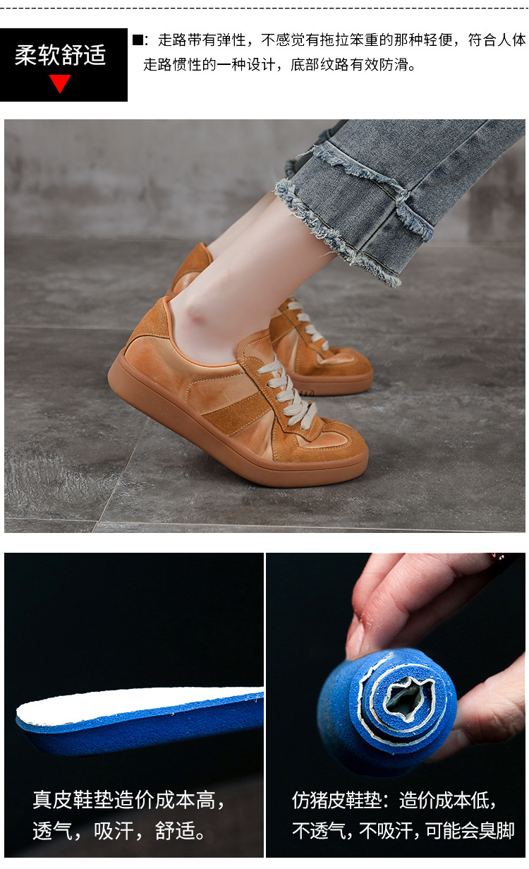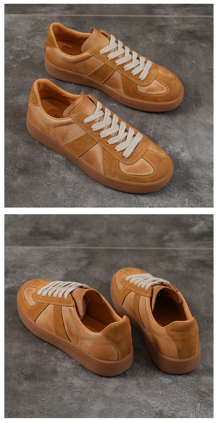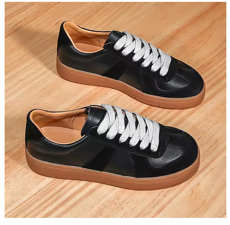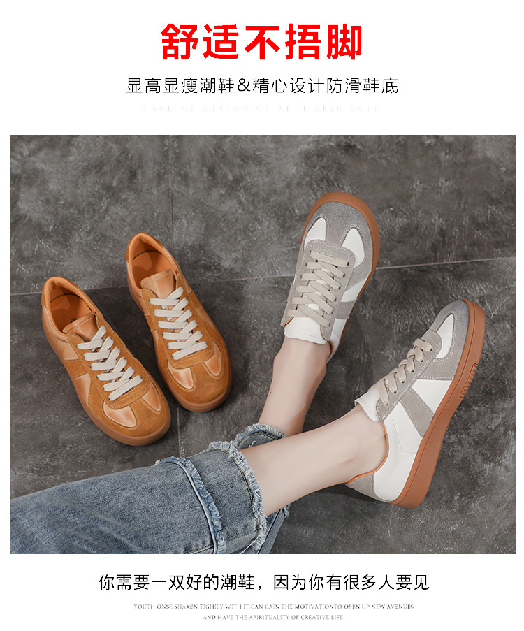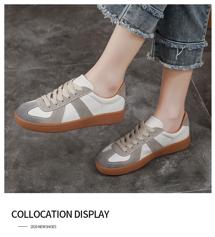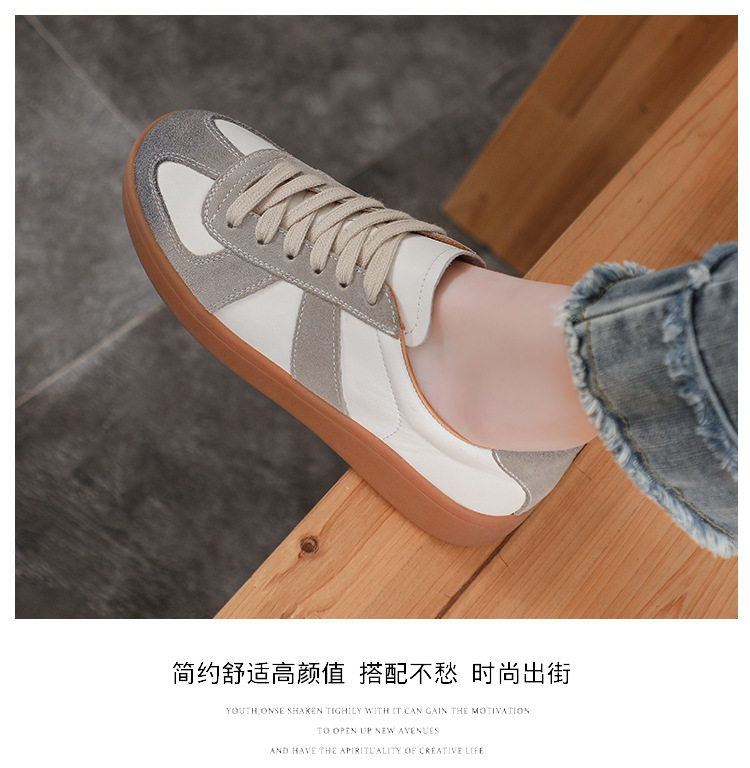 [내외부 모두 소가죽] 레트로 데순 슈즈 여성 캐주얼 런닝 운동화, 다용도 플랫 화이트 슈즈 여성용스토어 가기