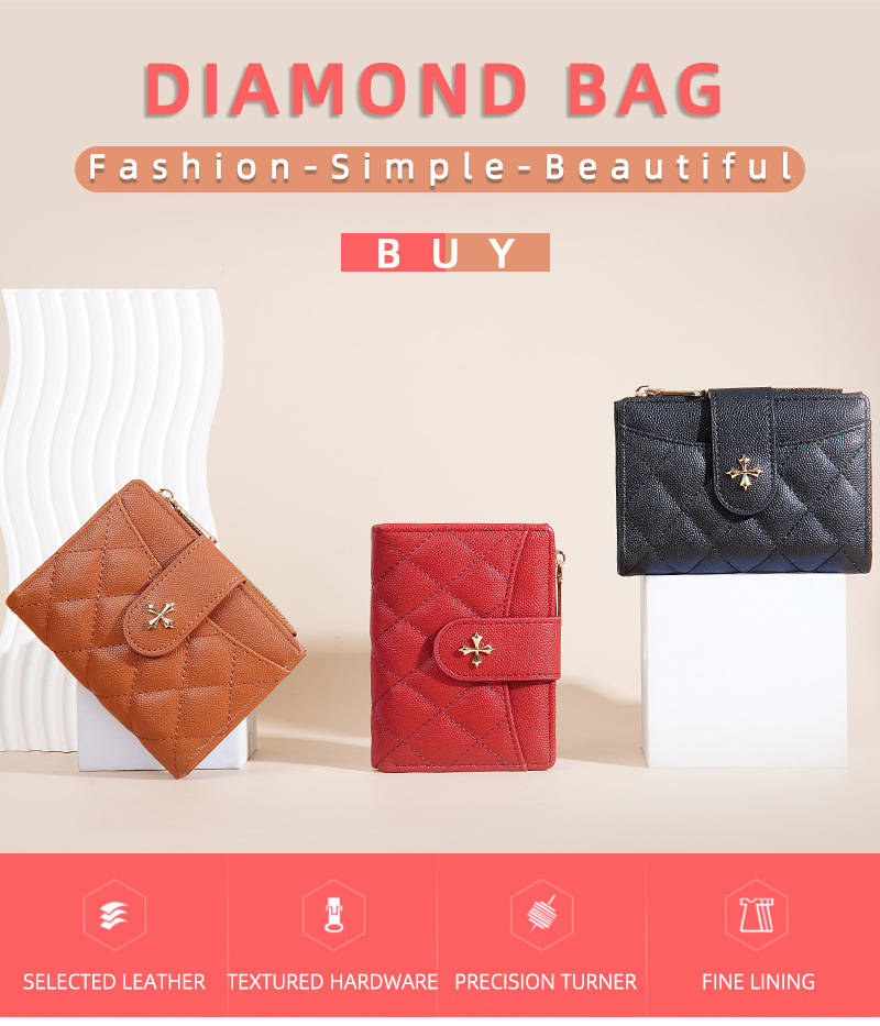 새로운 숙녀 짧은 지갑 여성 고급 감각 국경 간 퀼트 지퍼 동전 지갑 패션 80% off 작은 지갑 여성스토어 가기