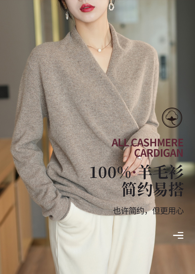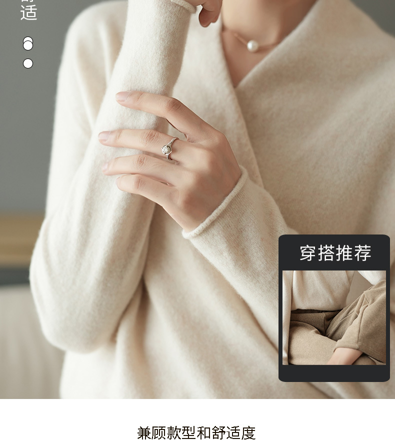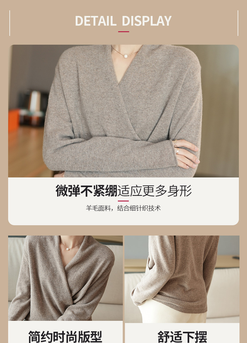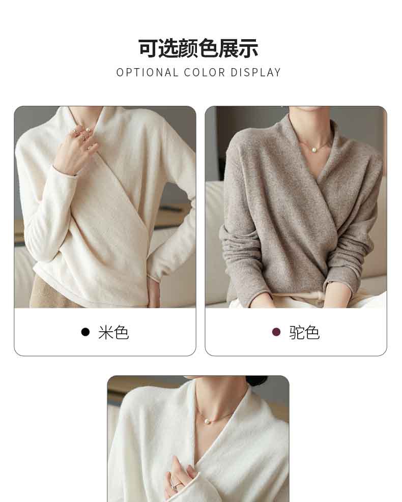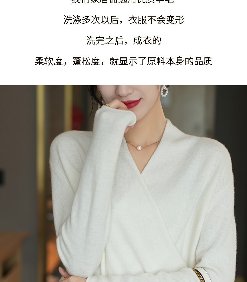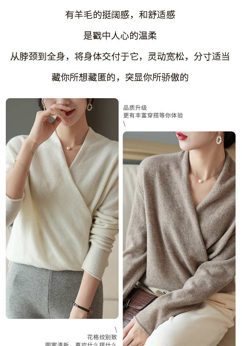 크로스 V 넥 모직 스웨터 가을과 겨울 디자인 세련된 캐주얼 슬리밍 긴팔 느슨한 모직 스웨터 여성스토어 가기