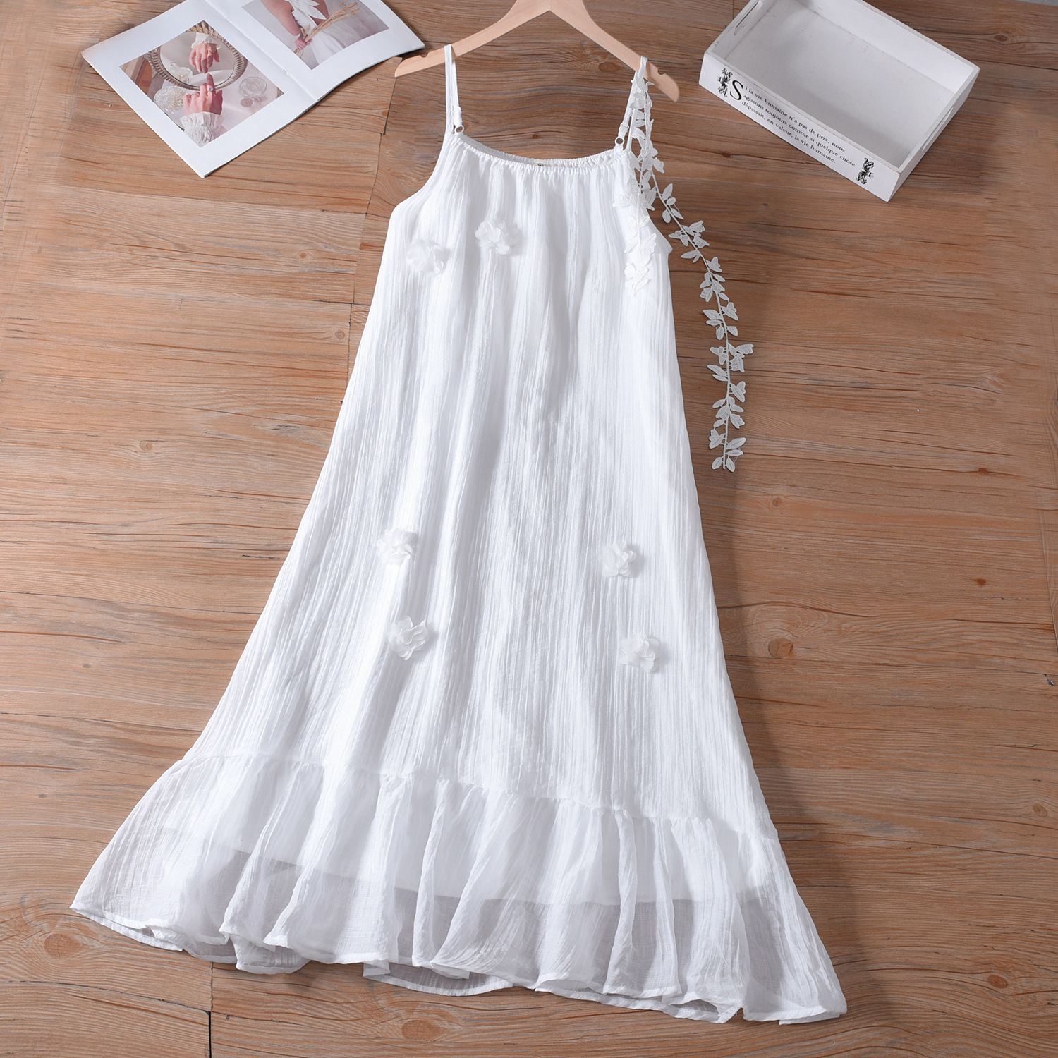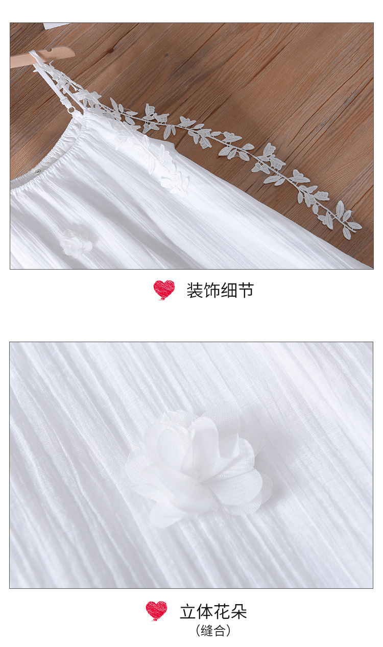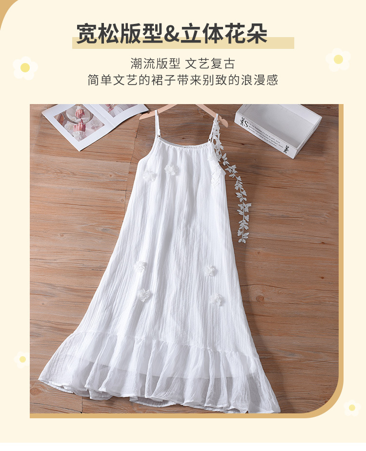 프랑스 스타일 3 차원 꽃 원피스 여성의 여름 화이트 슬링 타이-염료 해변 휴일 스타일 무릎-무릎 긴 원피스스토어 가기