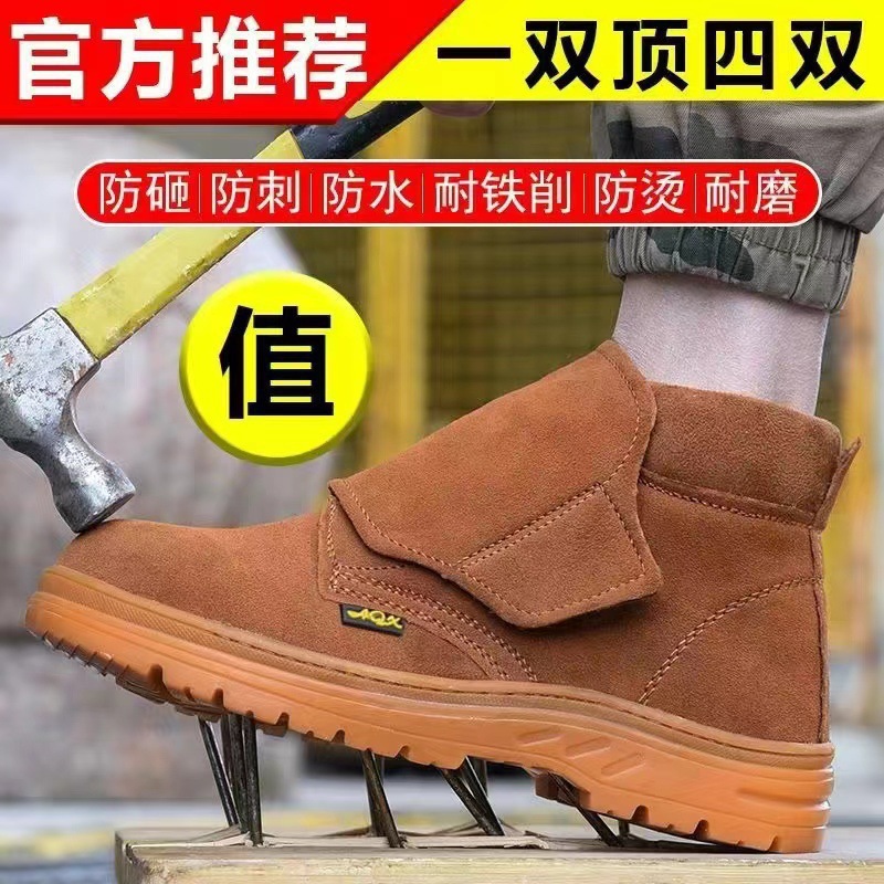 용접기의 노동 보호 신발 남성용 안티 스케일 스틸 발가락 경량 소프트 바닥 안티 스매싱 안티 스매싱 안티 펑크 Cowhide 통기성 냄새 고온 신발스토어 가기