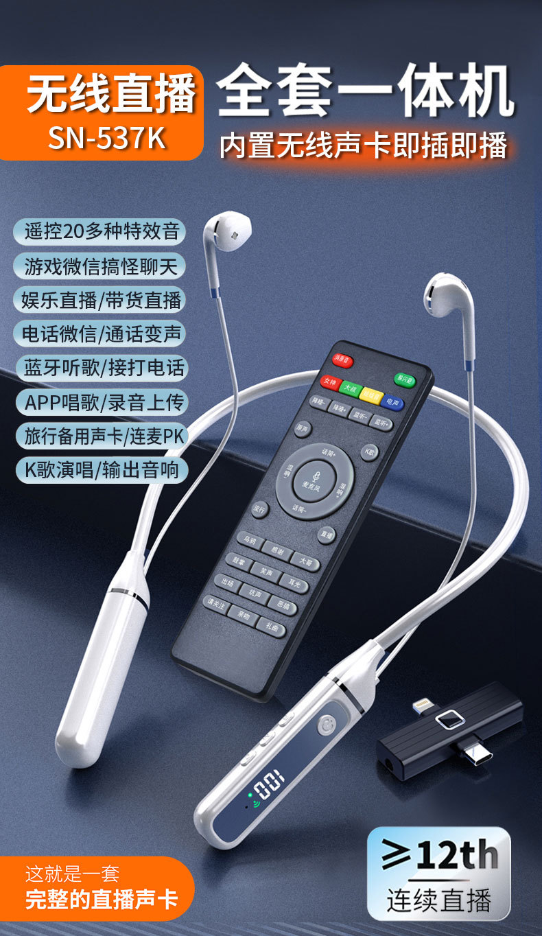 새로운 라이브 K 송 5.3 블루투스 헤드셋 내장 사운드 카드 무선 수신기 휴대 전화 범용 헤드셋 올인원스토어 가기