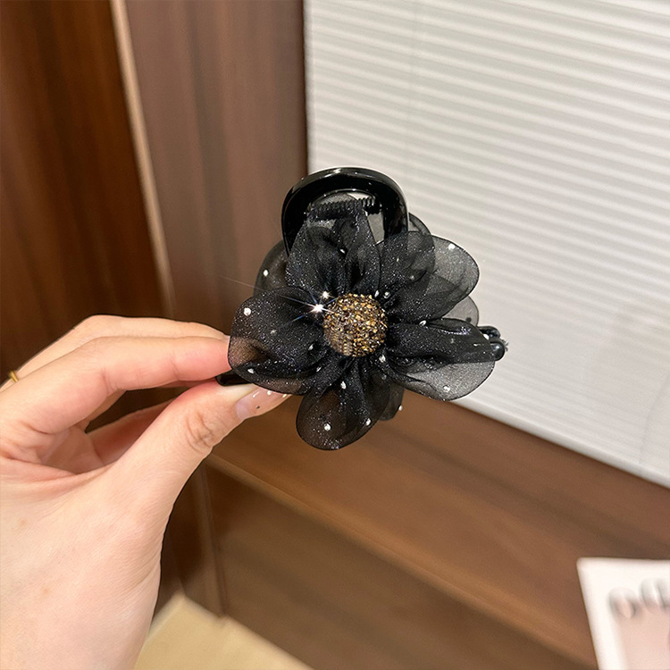 메쉬 라인스톤 플라워 그랩 클립 2024 여성의 새로운 하이 스타일 하이 포니 테일 헤어핀 백 헤드 클립 헤어 액세서리