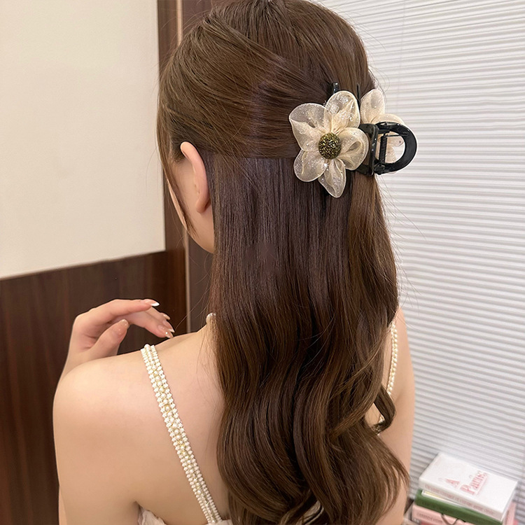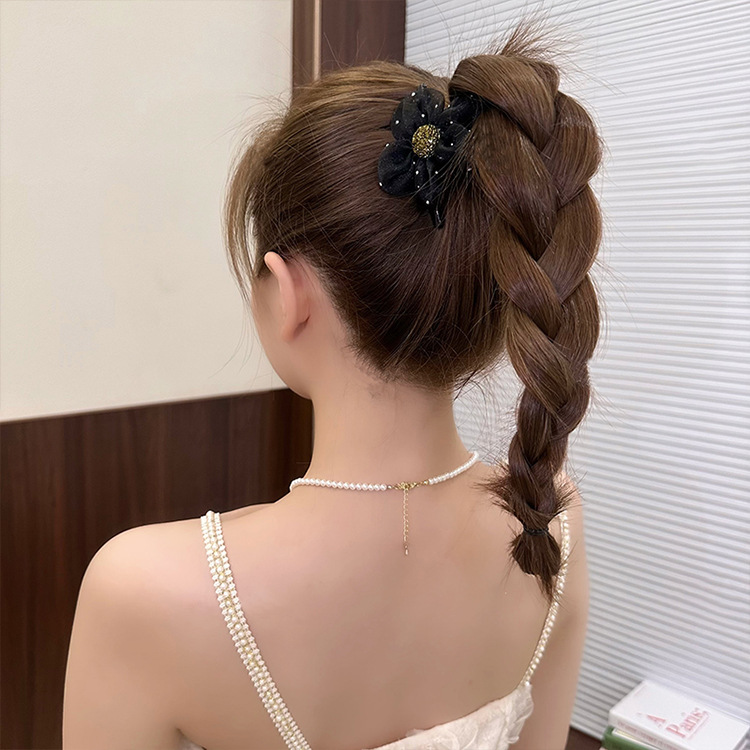 메쉬 라인스톤 플라워 그랩 클립 2024 여성의 새로운 하이 스타일 하이 포니 테일 헤어핀 백 헤드 클립 헤어 액세서리스토어 가기