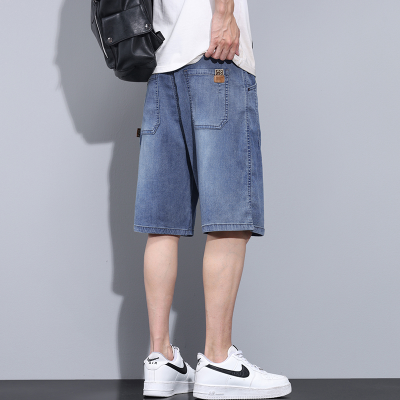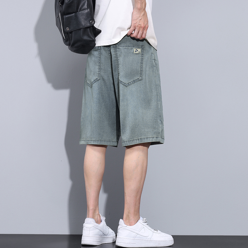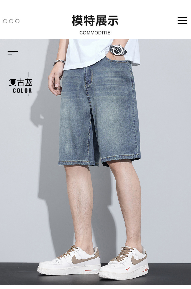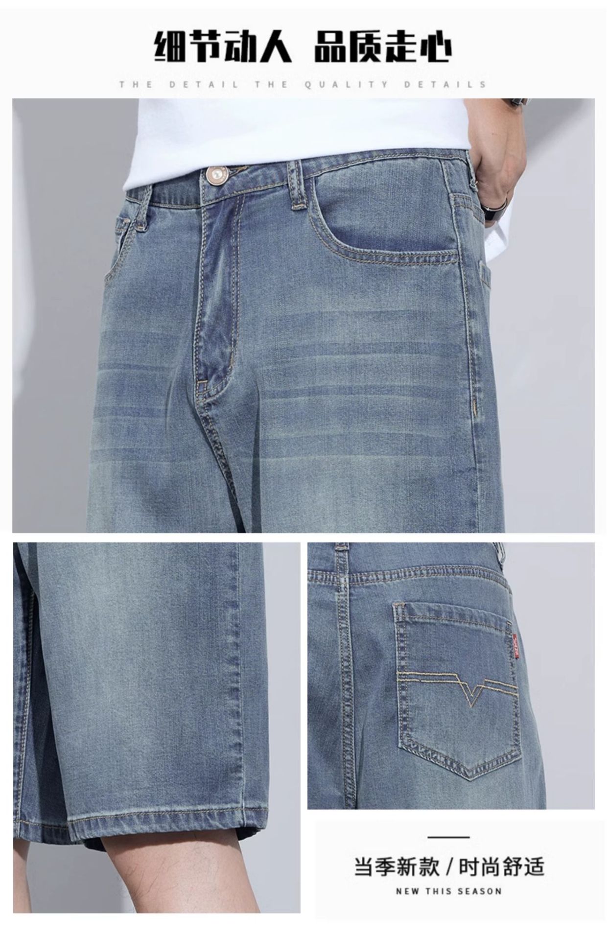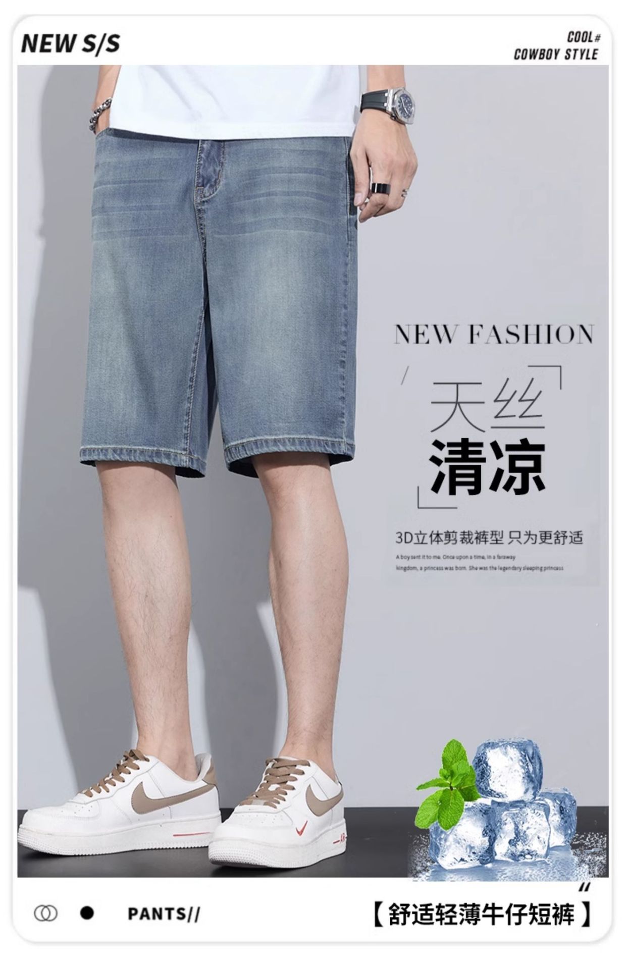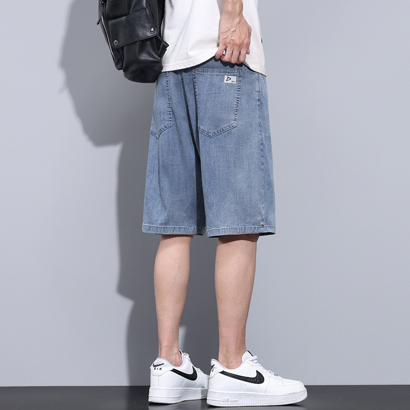 아이스 실크 데님 반바지 남성 여름 얇은 미국 트렌디 브랜드 루즈 스트레이트 캐주얼 텐셀 남성용 5부 중간 바지
