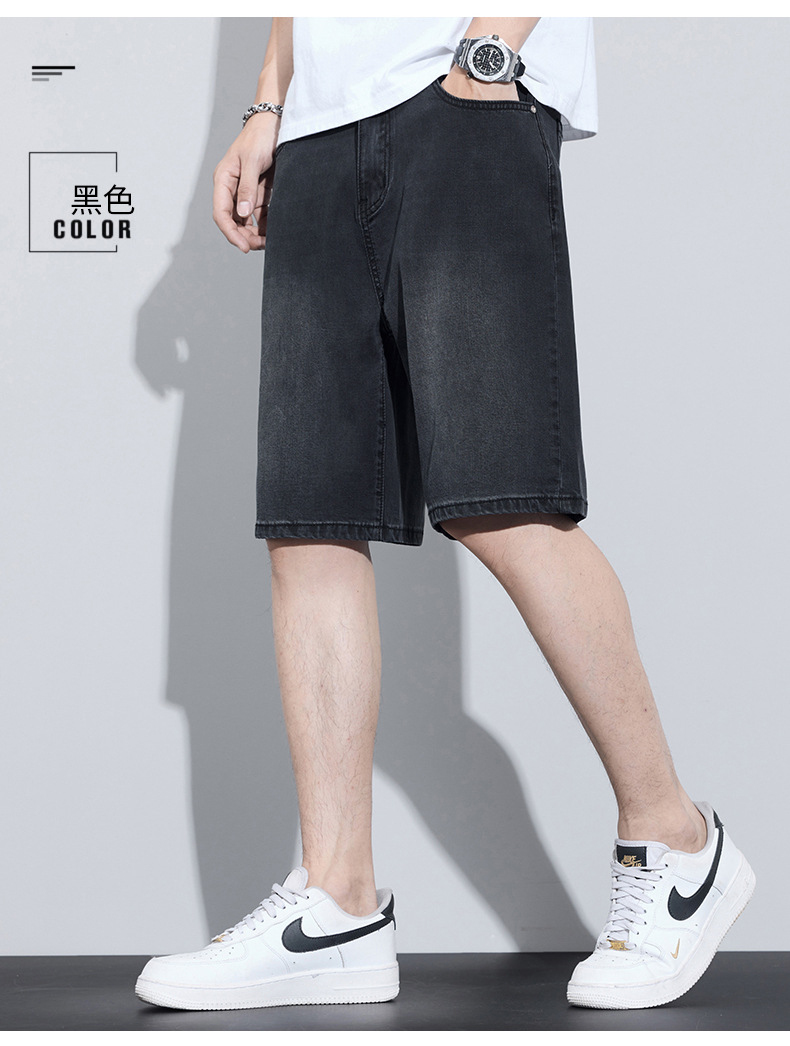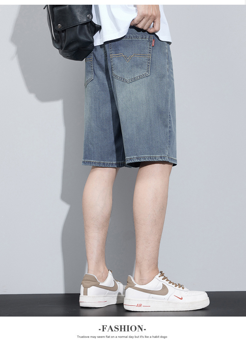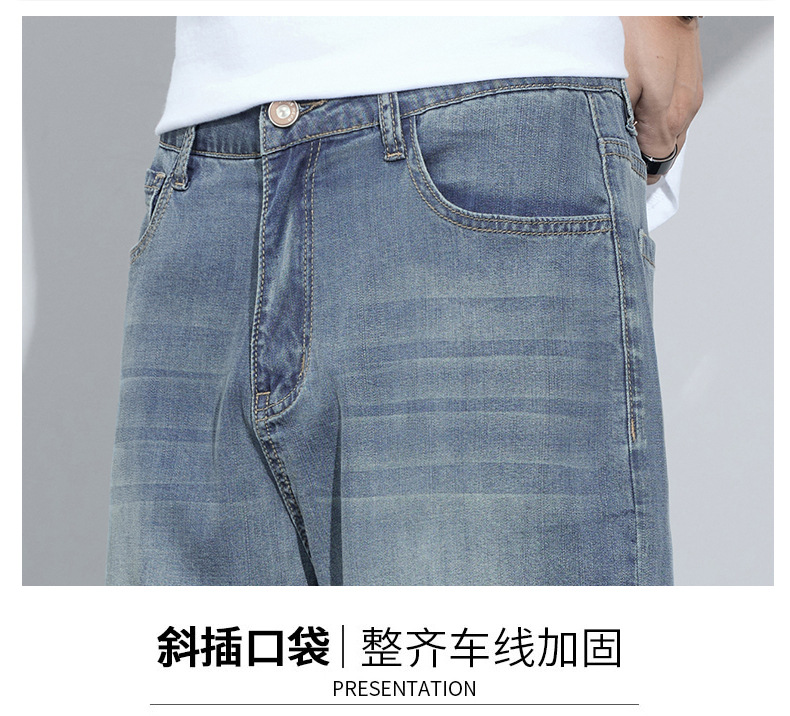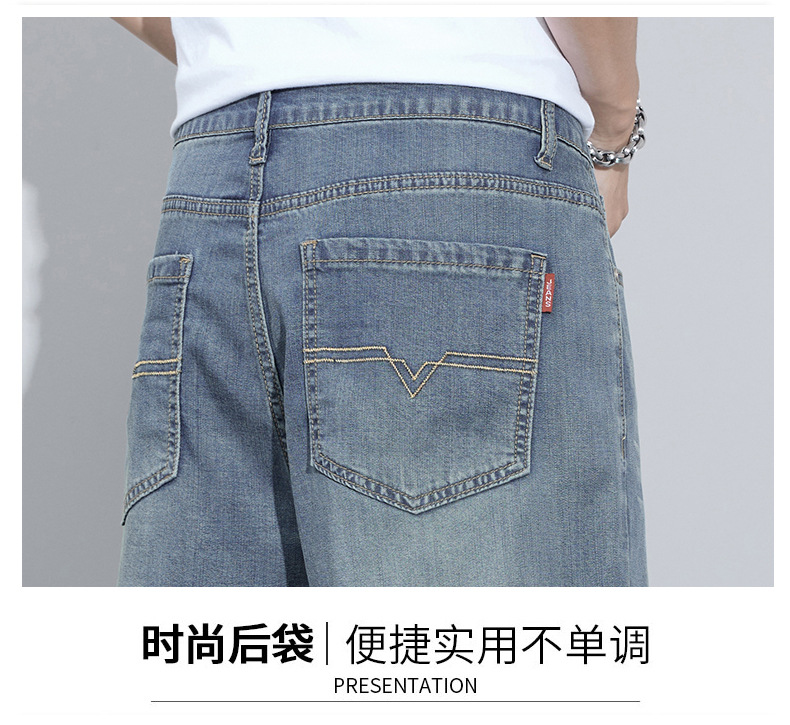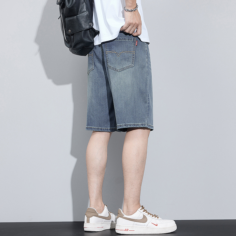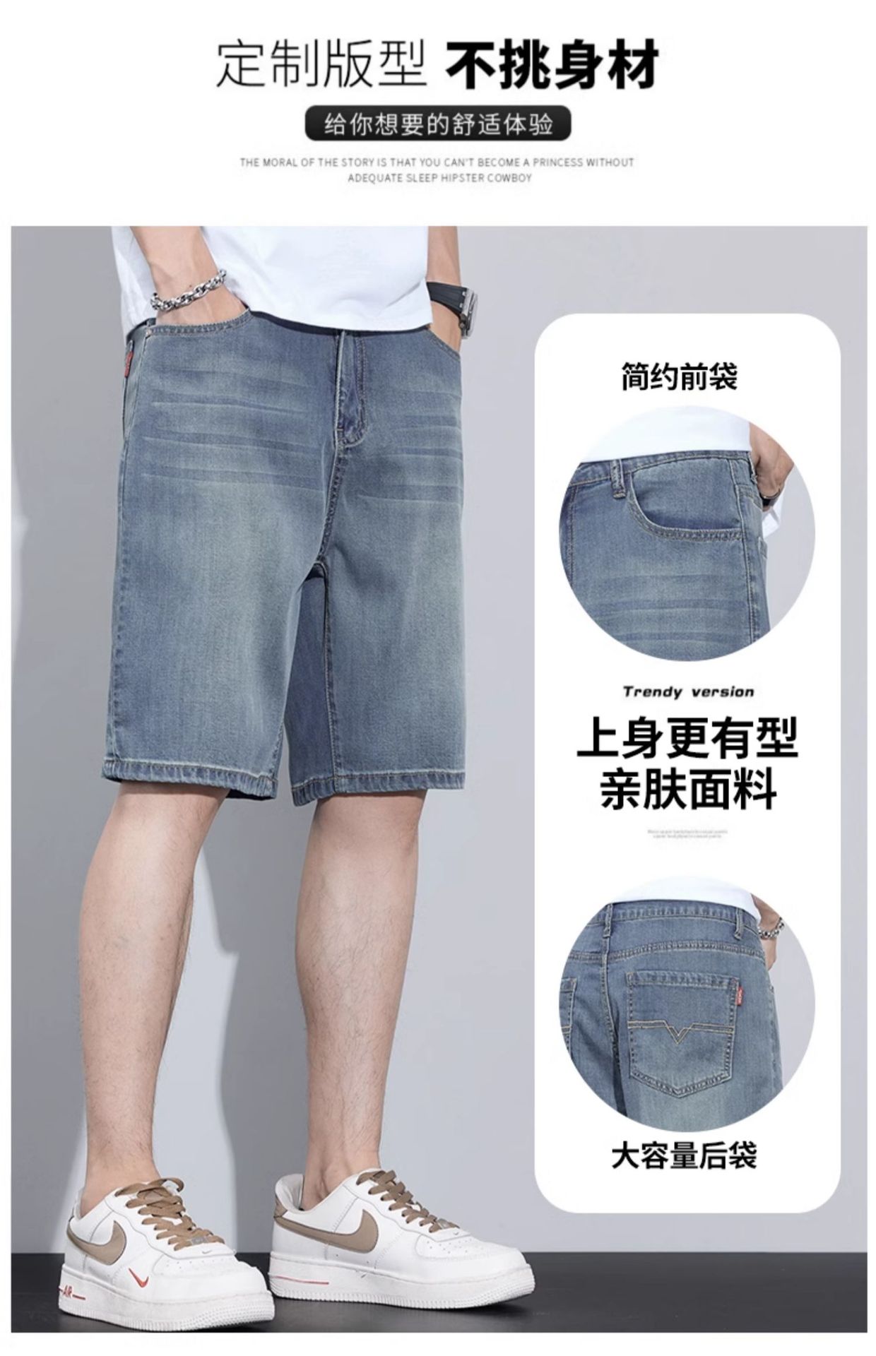아이스 실크 데님 반바지 남성 여름 얇은 미국 트렌디 브랜드 루즈 스트레이트 캐주얼 텐셀 남성용 5부 중간 바지