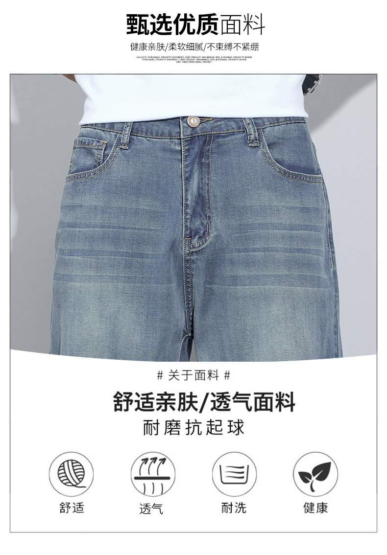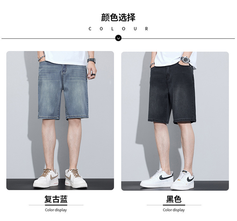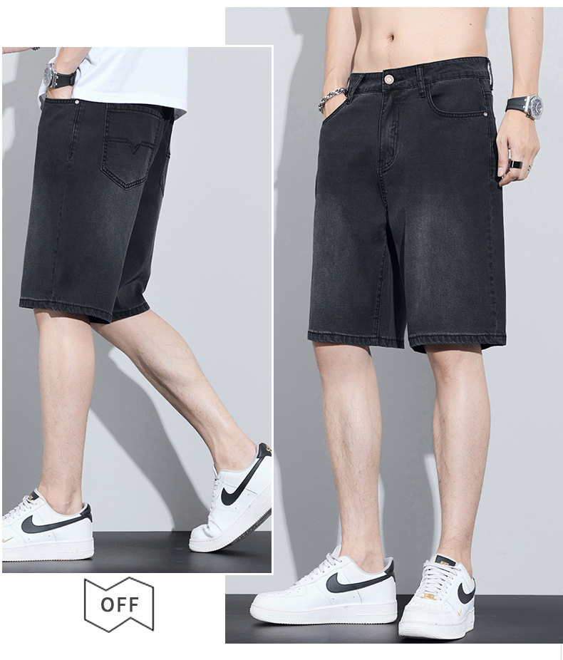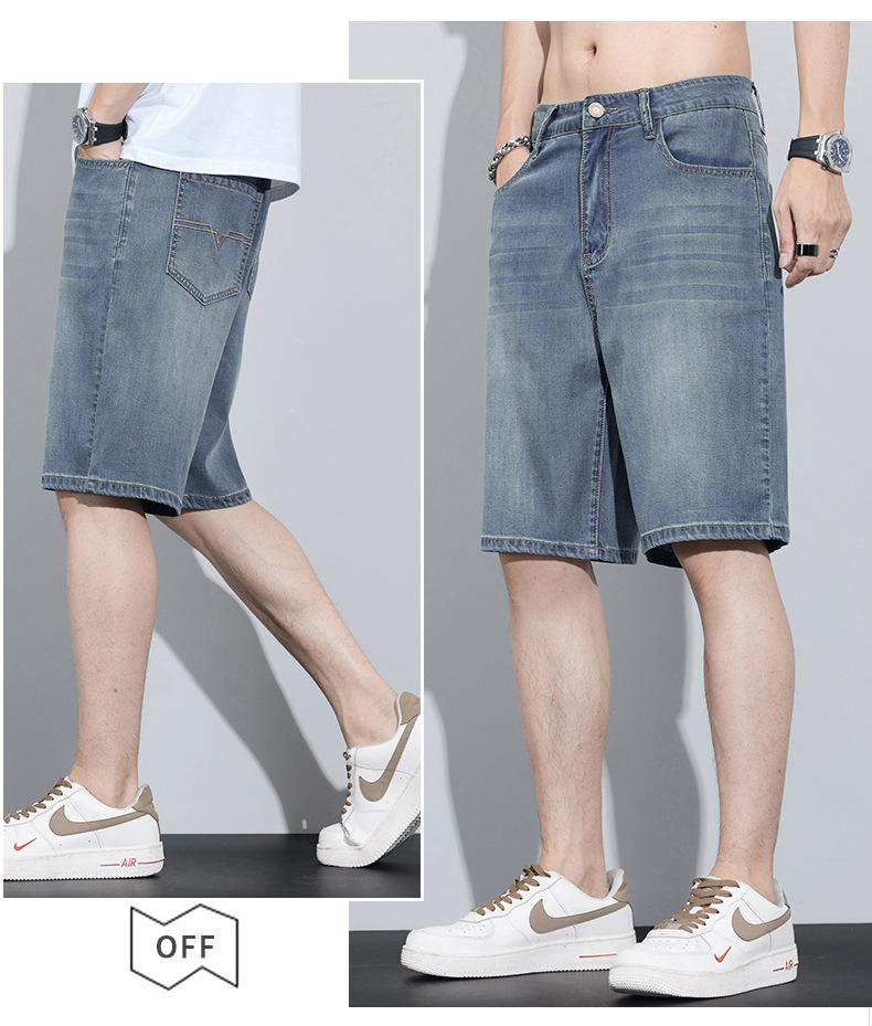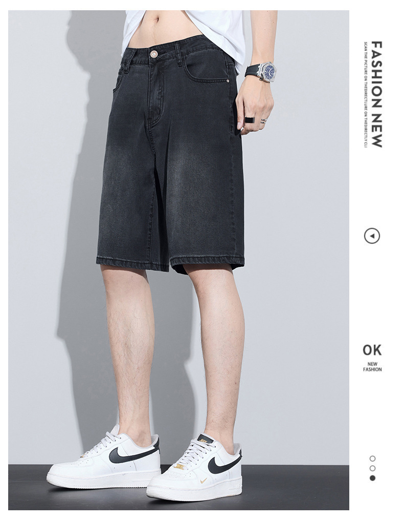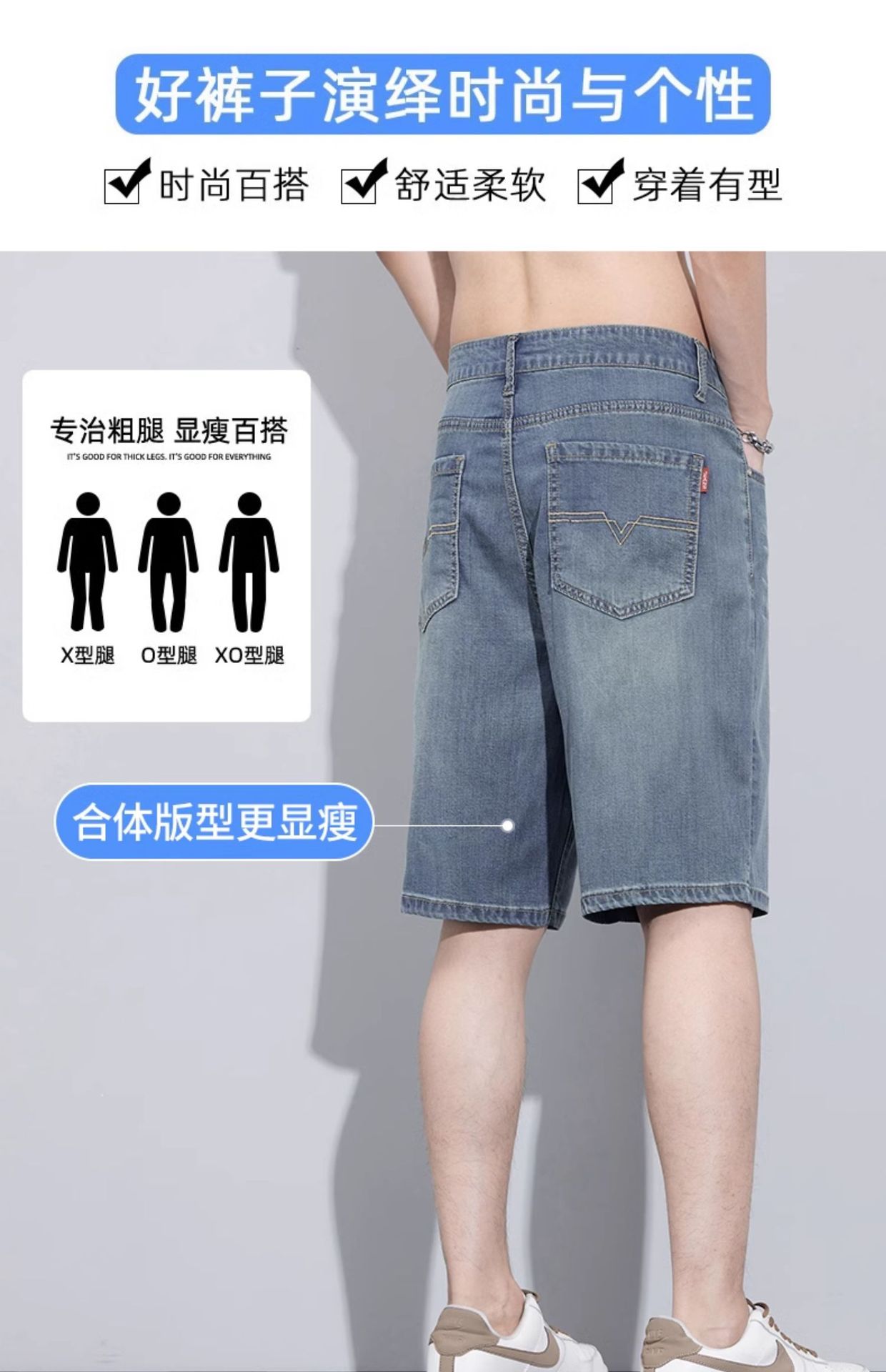 아이스 실크 데님 반바지 남성 여름 얇은 미국 트렌디 브랜드 루즈 스트레이트 캐주얼 텐셀 남성용 5부 중간 바지