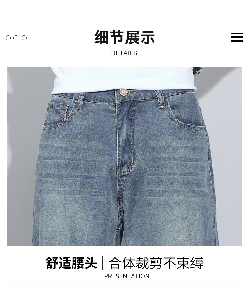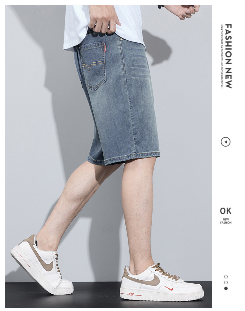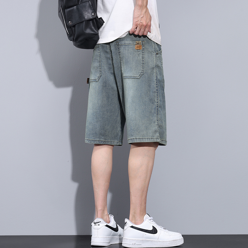 아이스 실크 데님 반바지 남성 여름 얇은 미국 트렌디 브랜드 루즈 스트레이트 캐주얼 텐셀 남성용 5부 중간 바지스토어 가기