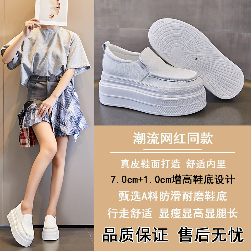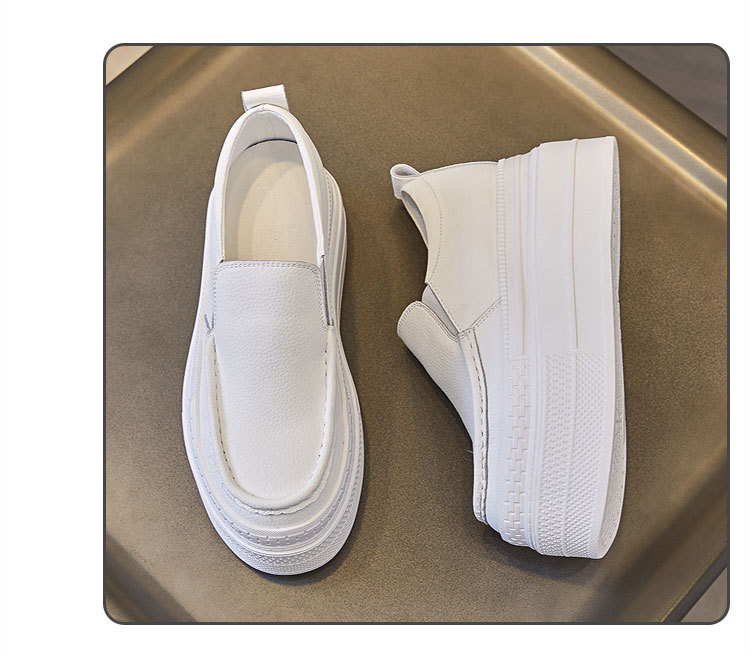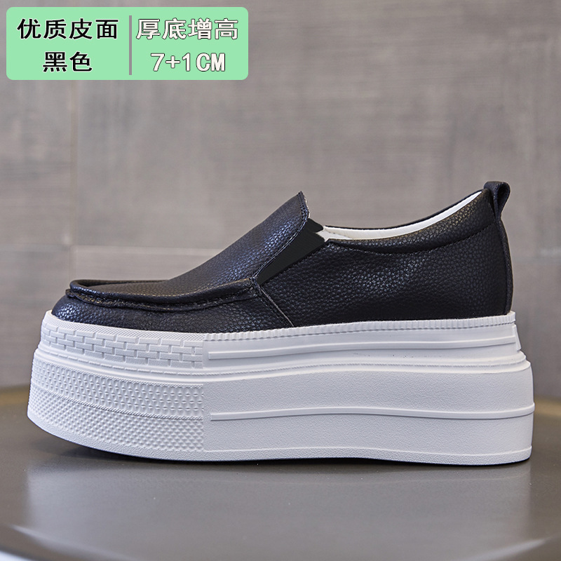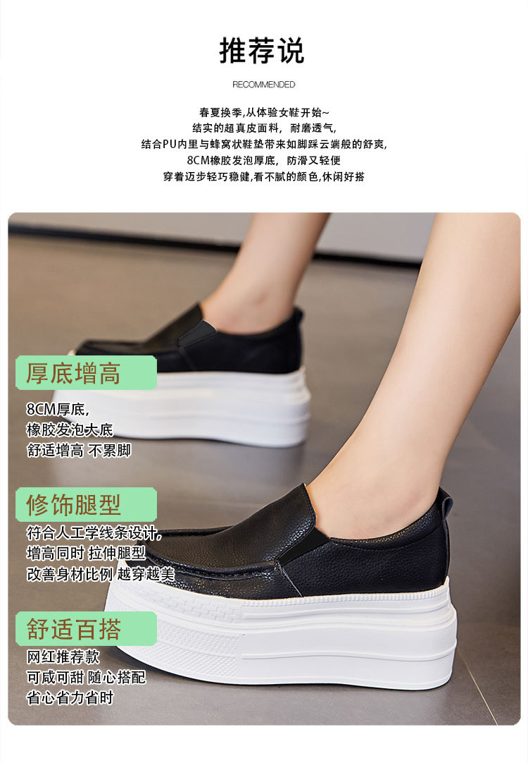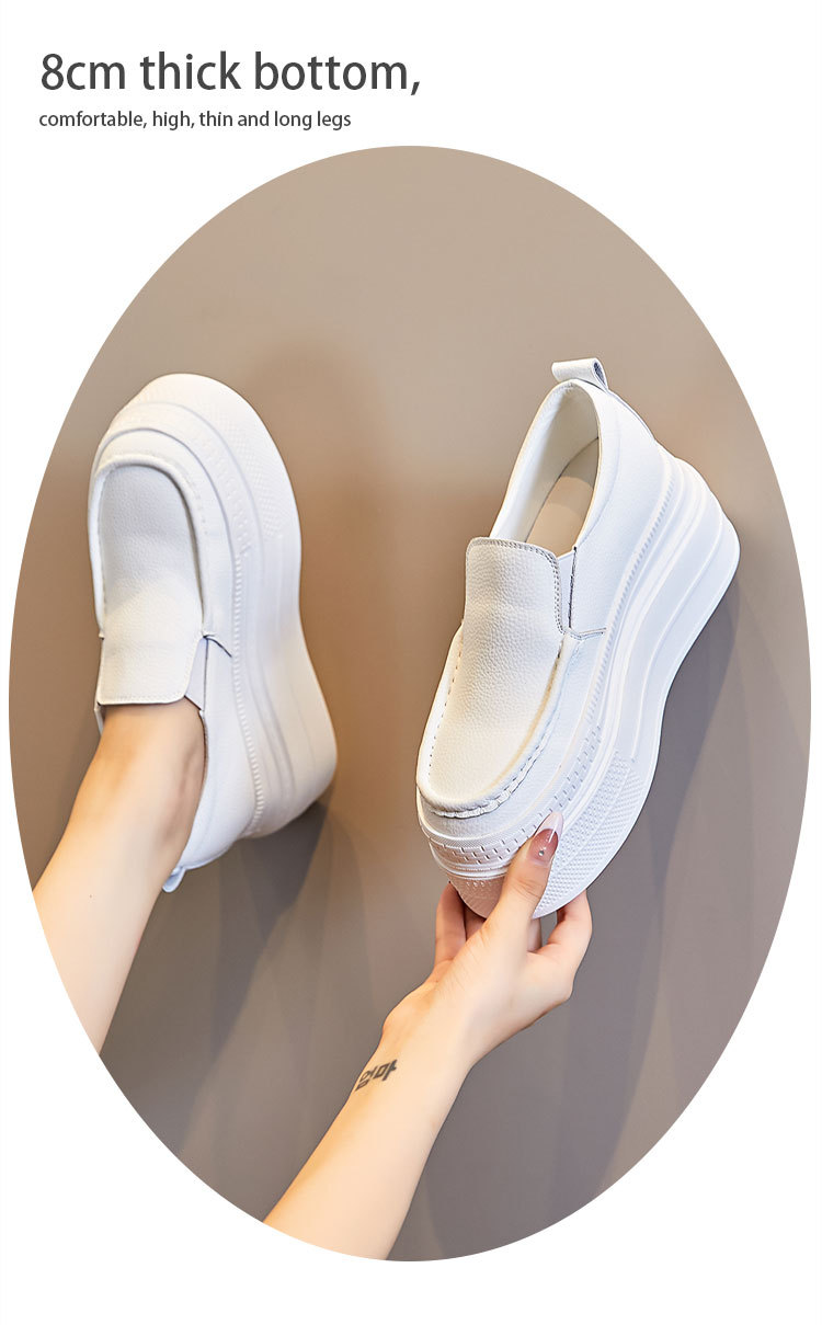 가죽 두꺼운 밑창 슬립 온 로퍼 여성용 솔리드 컬러 높이 증가 발 통기성 편안한 높이 증가 8CM 화이트 슈즈 싱글 레이어 슈즈스토어 가기