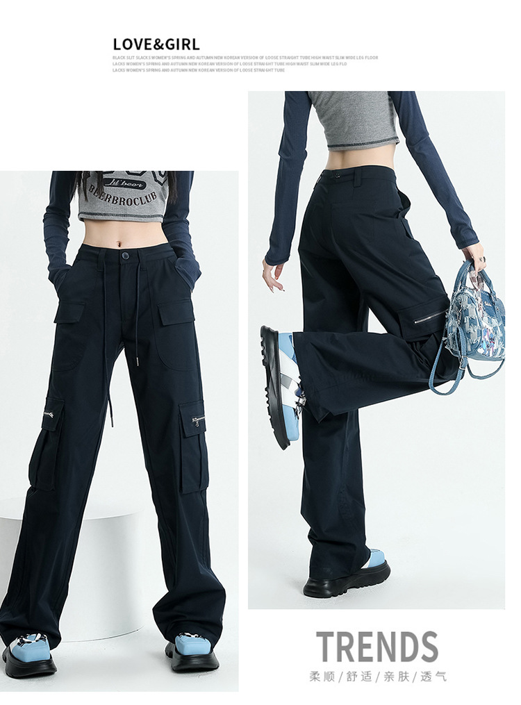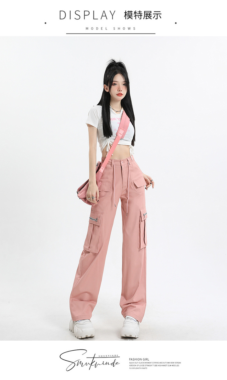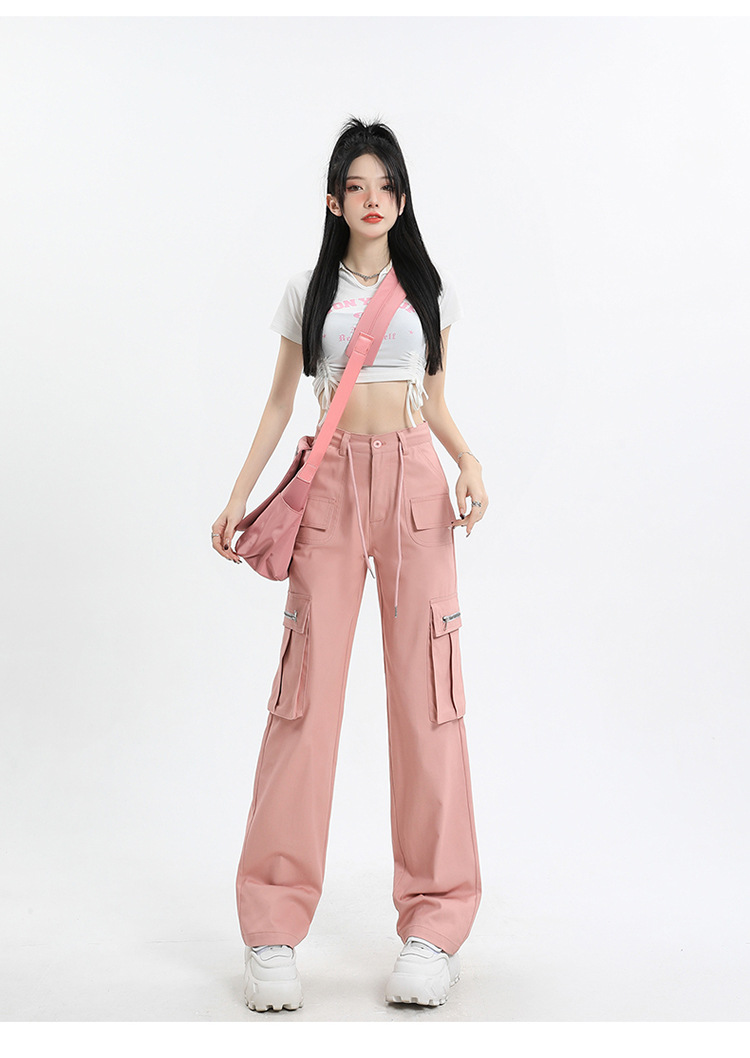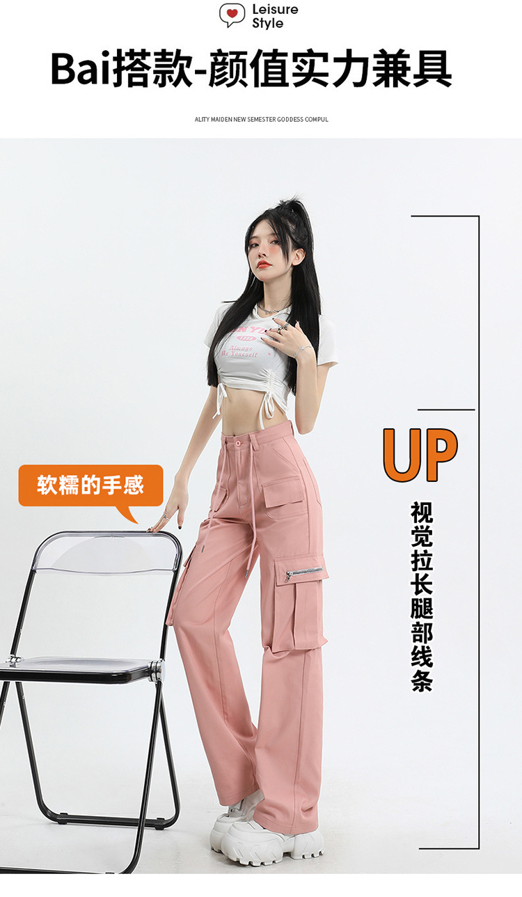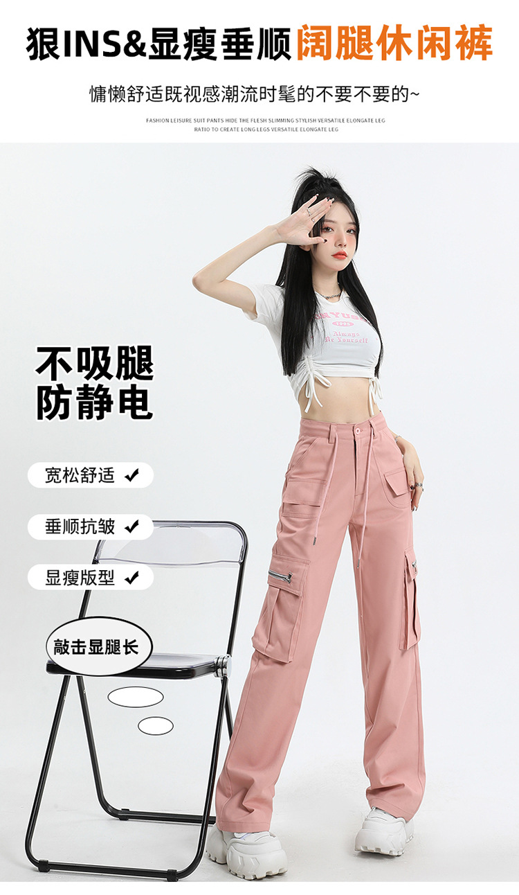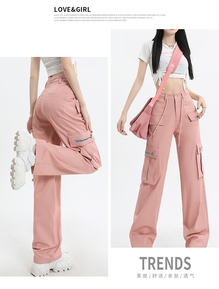 아메리칸 스타일 핑크 네이비 얇은 스트레이트 오버올 여성 2024 느슨한 와이드 레그 아메리칸 스타일 레트로 캐주얼 바지스토어 가기