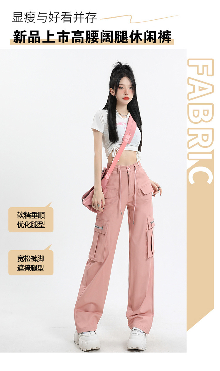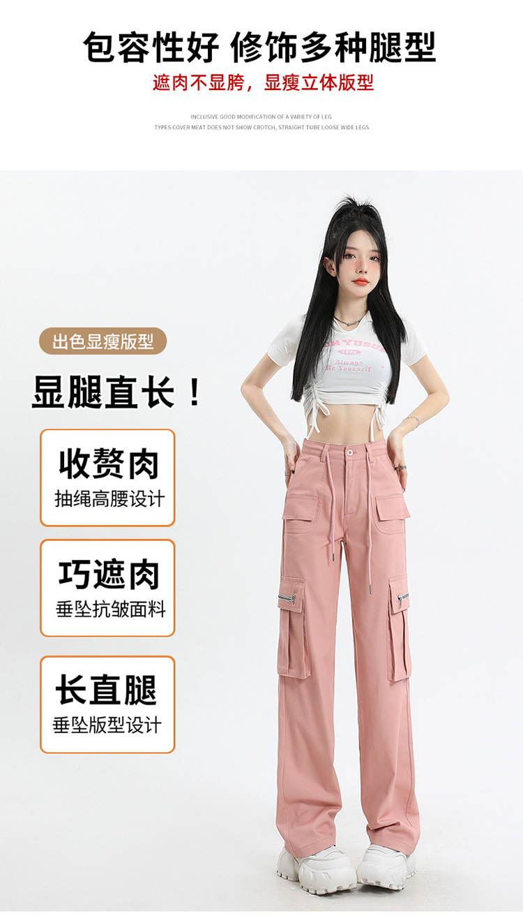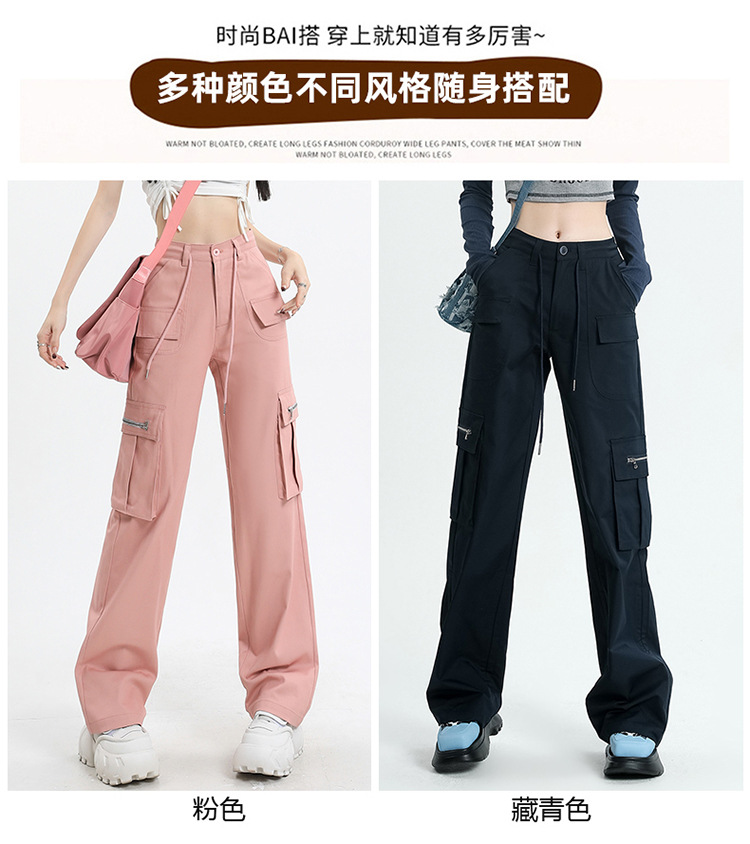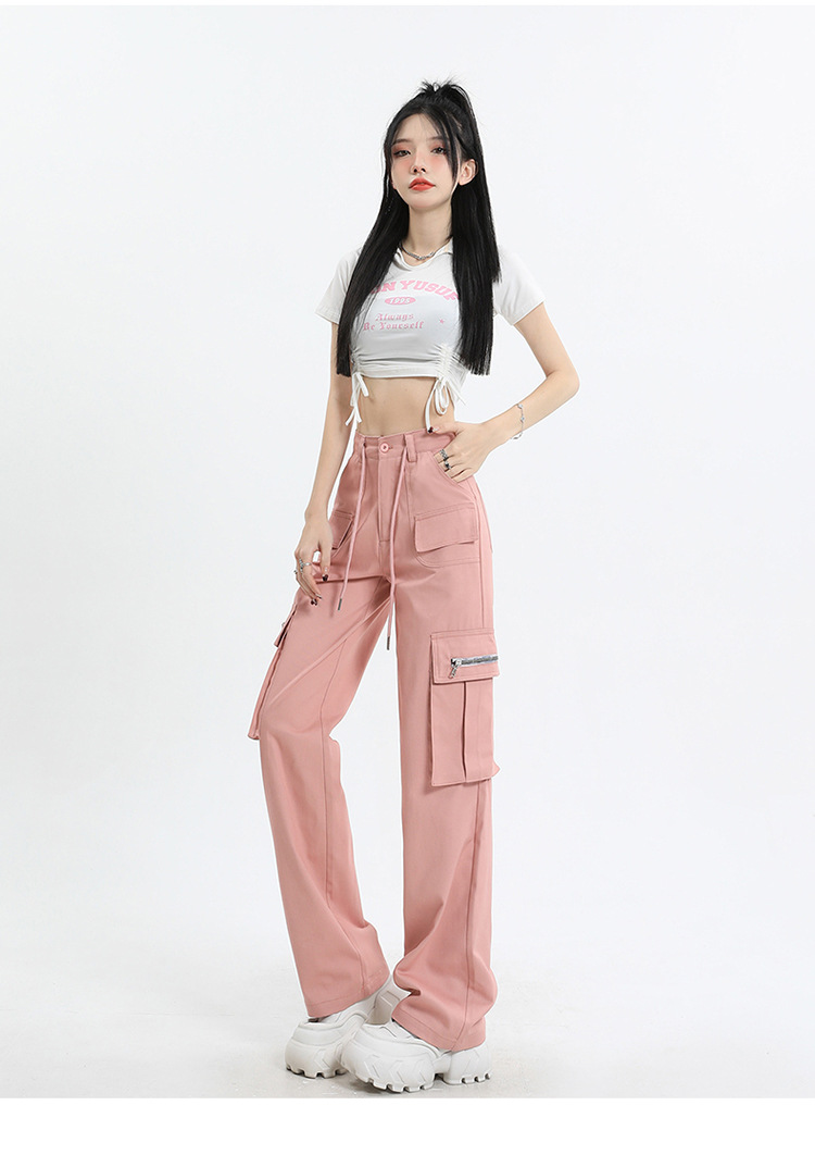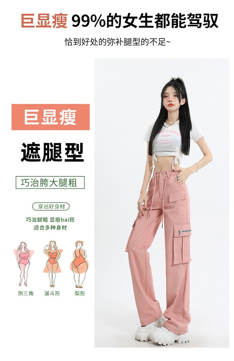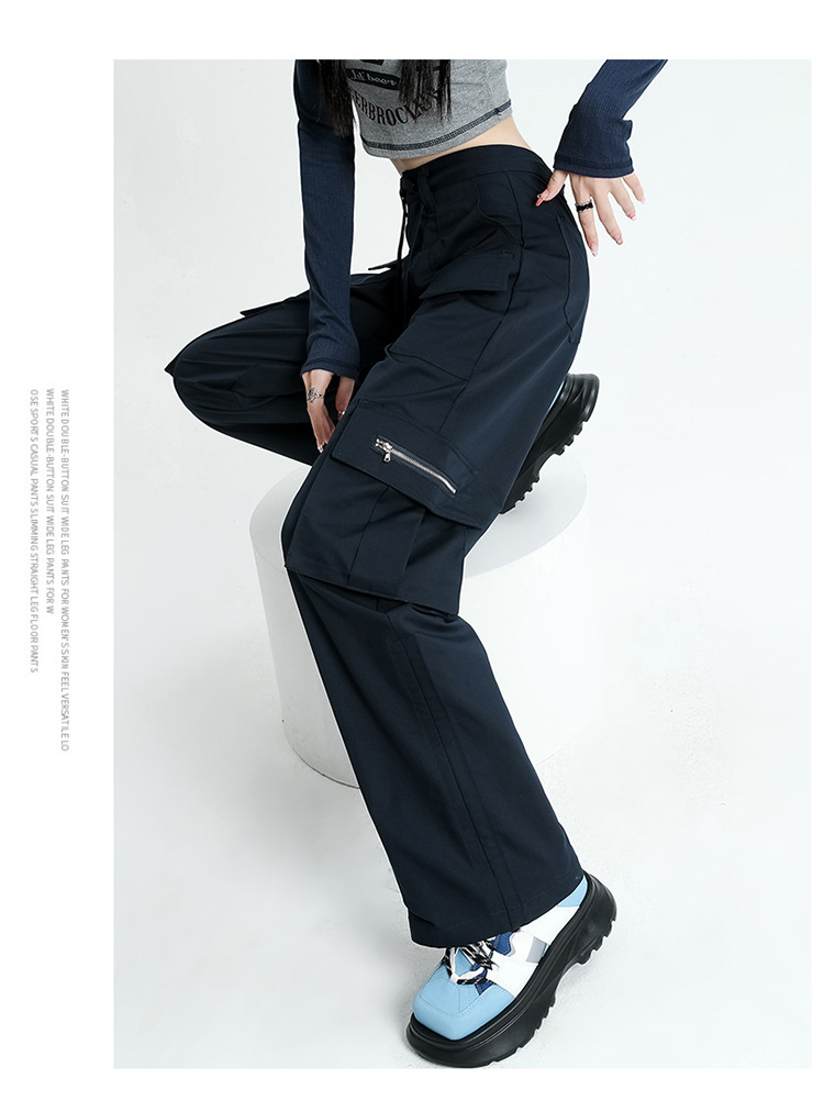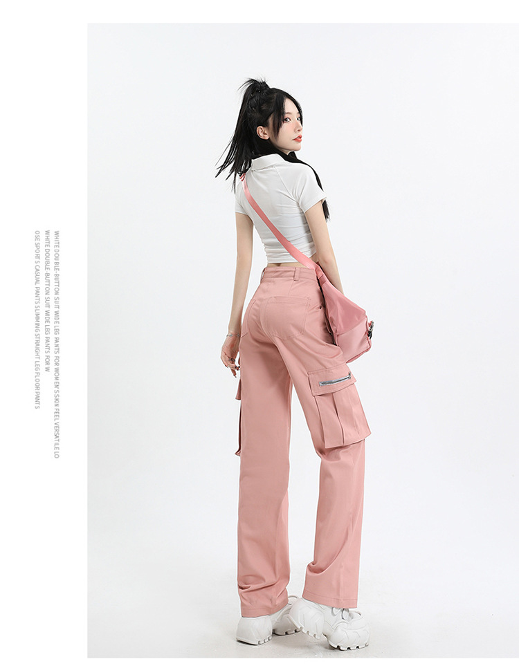 아메리칸 스타일 핑크 네이비 얇은 스트레이트 오버올 여성 2024 느슨한 와이드 레그 아메리칸 스타일 레트로 캐주얼 바지스토어 가기