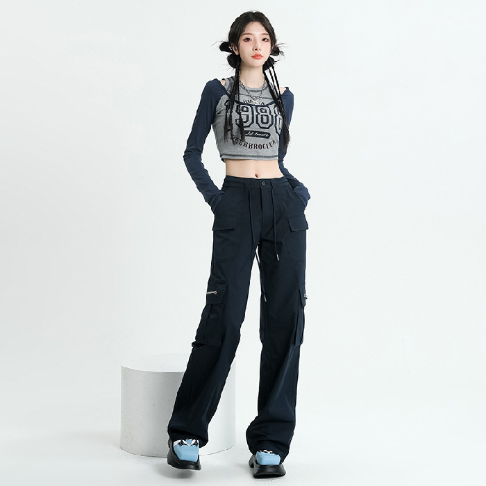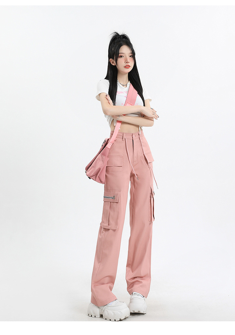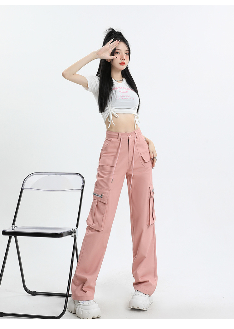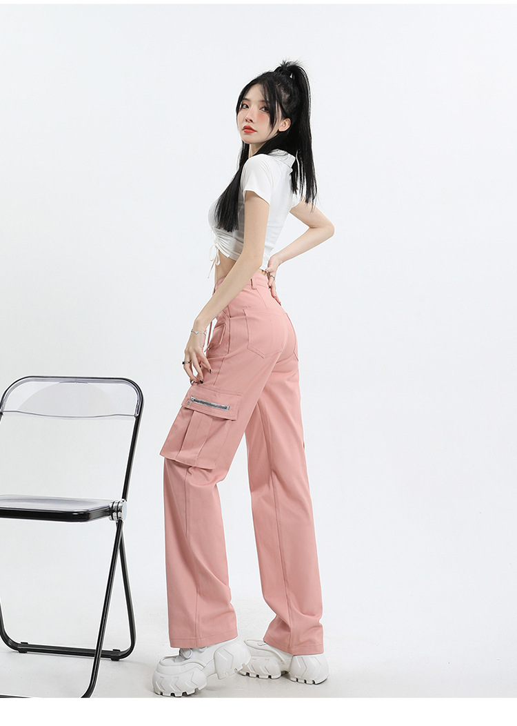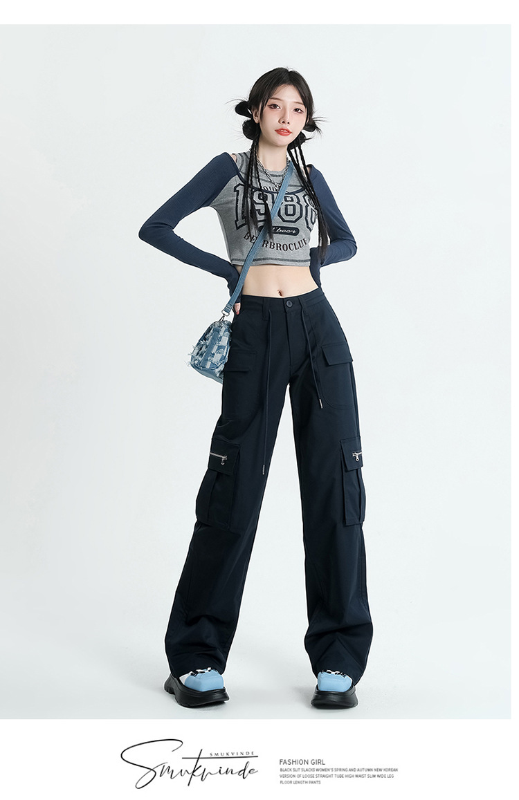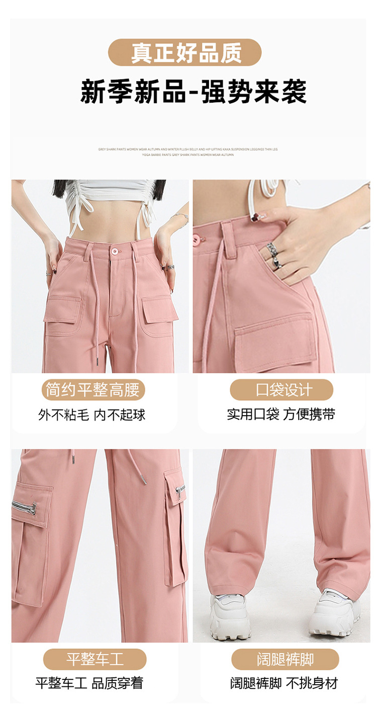 아메리칸 스타일 핑크 네이비 얇은 스트레이트 오버올 여성 2024 느슨한 와이드 레그 아메리칸 스타일 레트로 캐주얼 바지스토어 가기