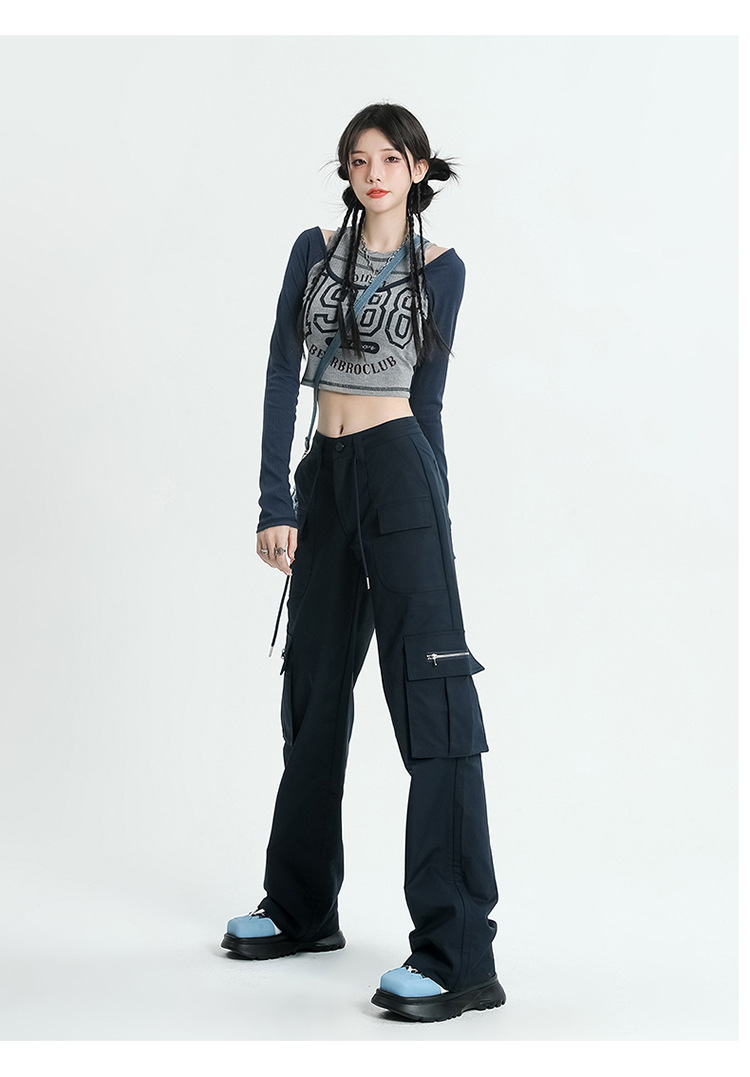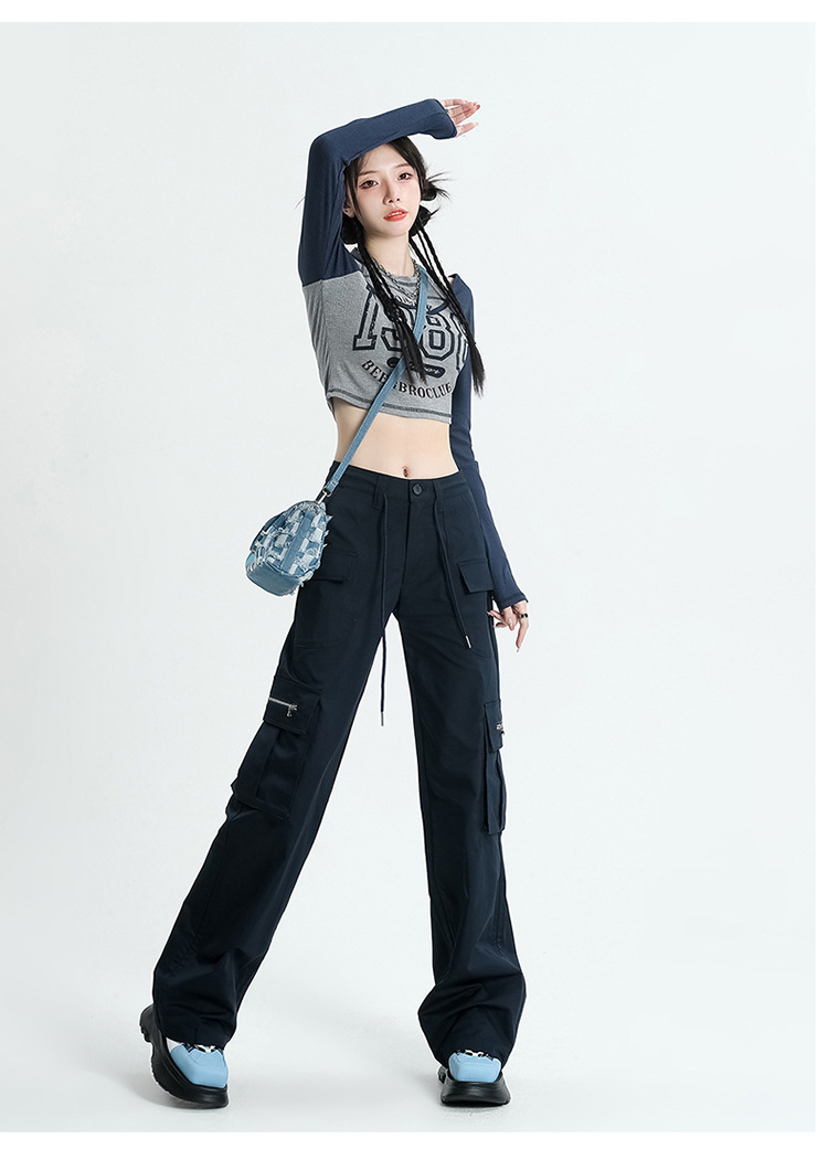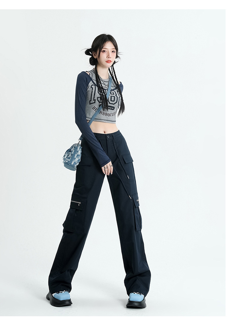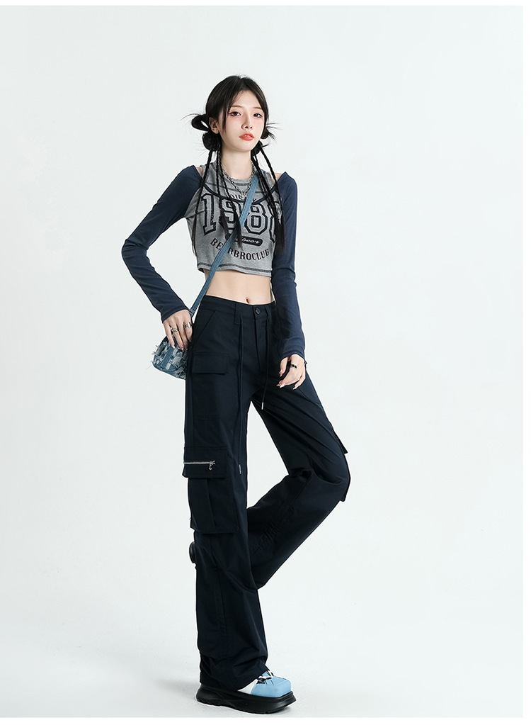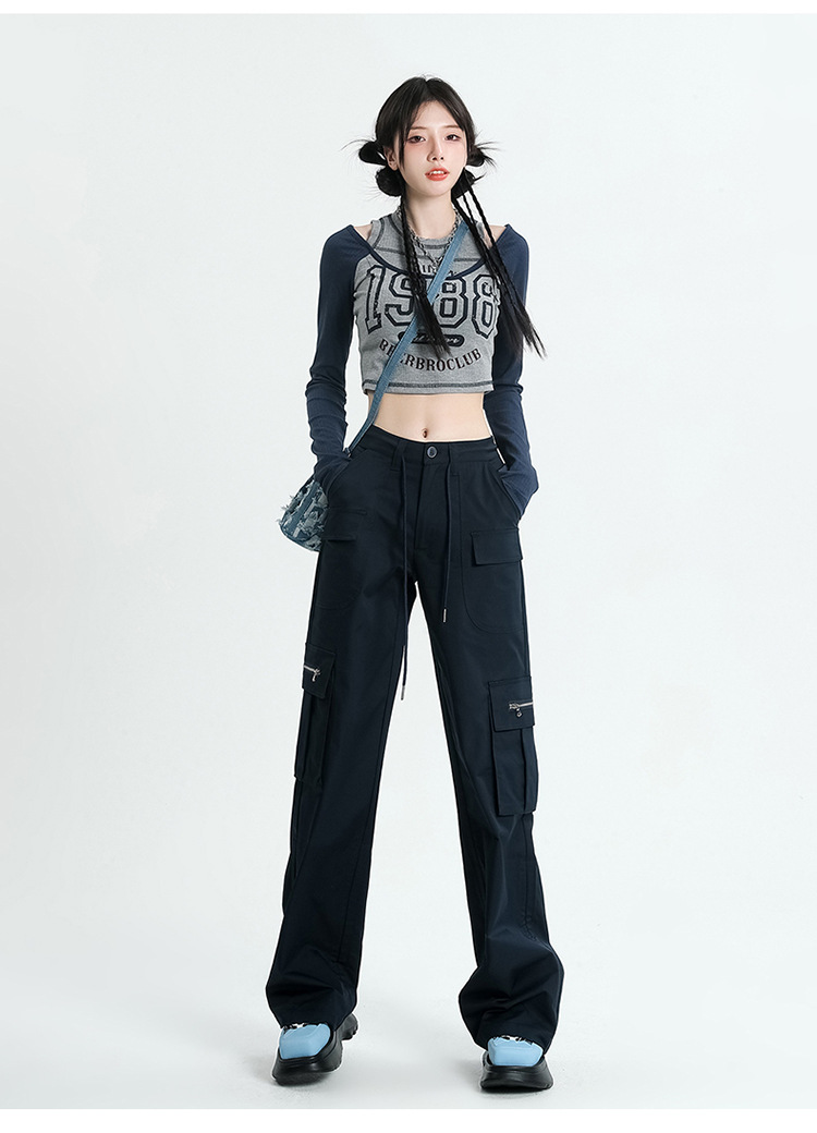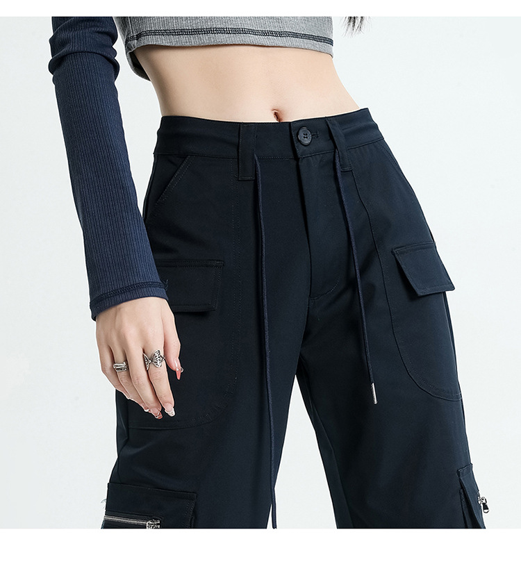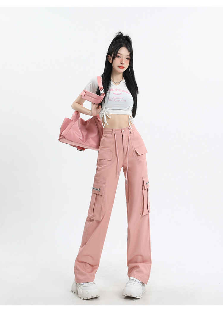 아메리칸 스타일 핑크 네이비 얇은 스트레이트 오버올 여성 2024 느슨한 와이드 레그 아메리칸 스타일 레트로 캐주얼 바지스토어 가기