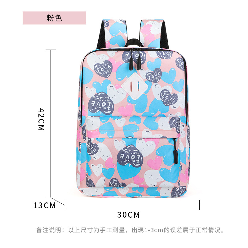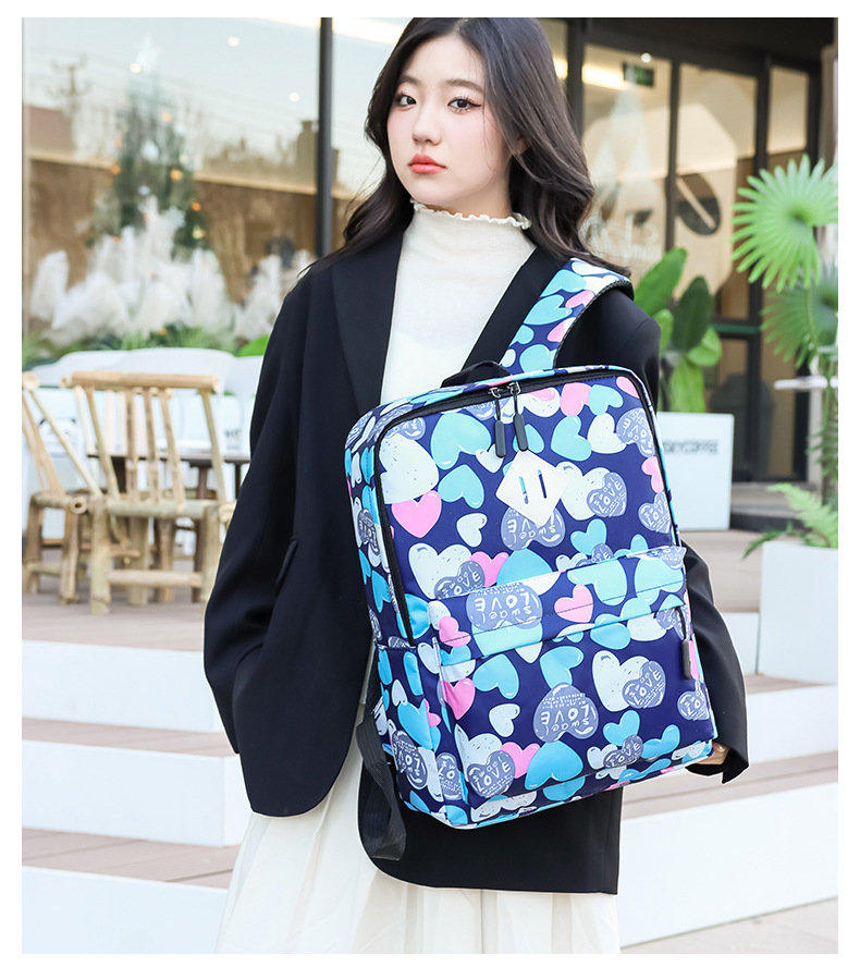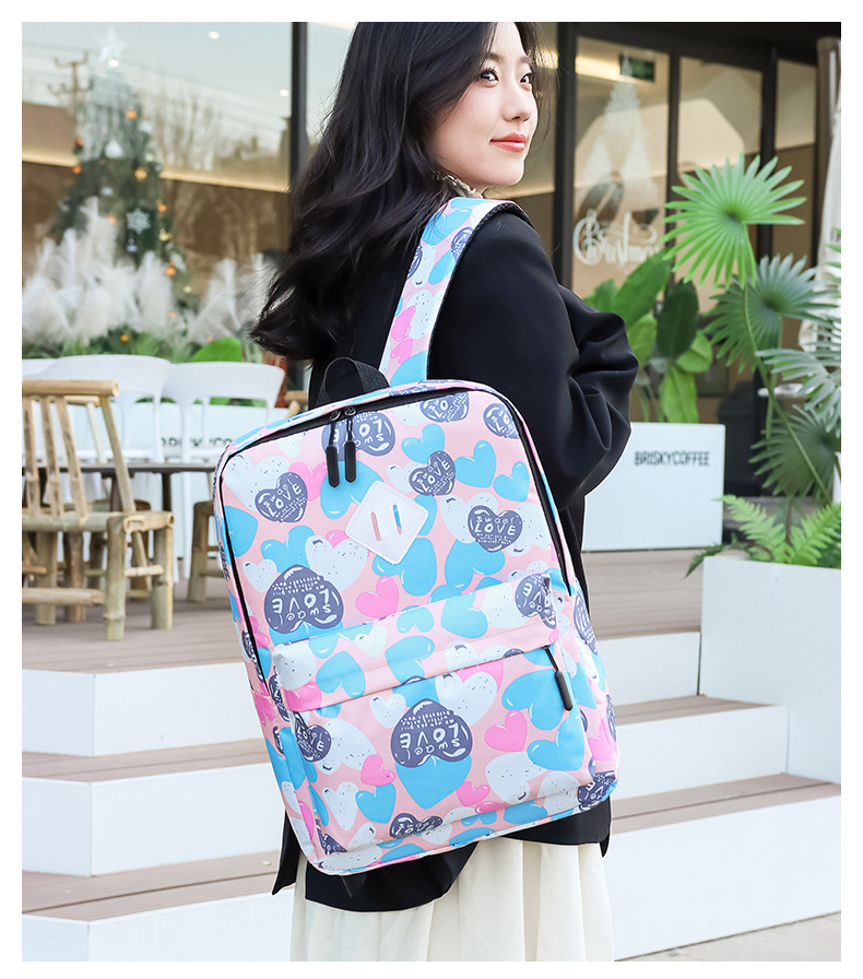 새로운 도착 높은 외관 가치 Schoolbag 여성의 작은 신선한 사랑 인쇄 대학 스타일 경량 경량 대용량 배낭