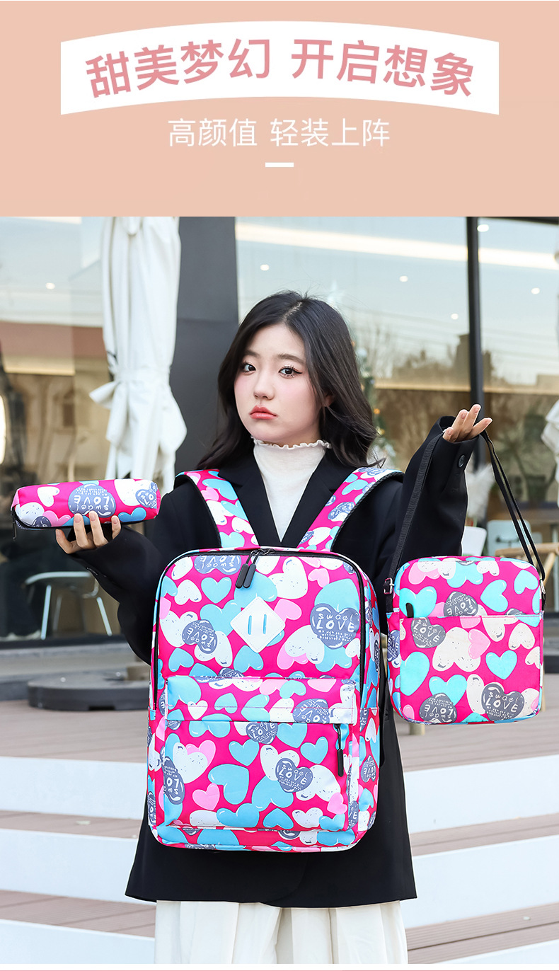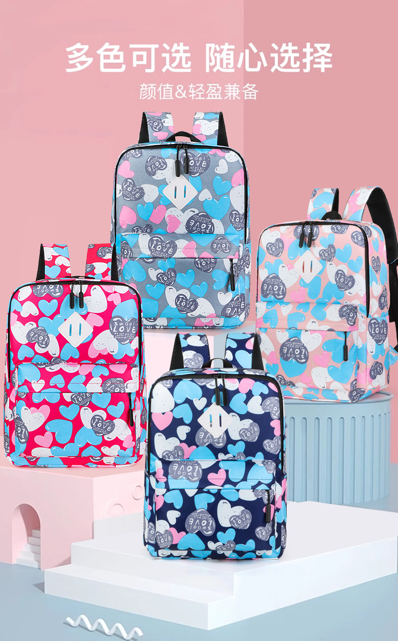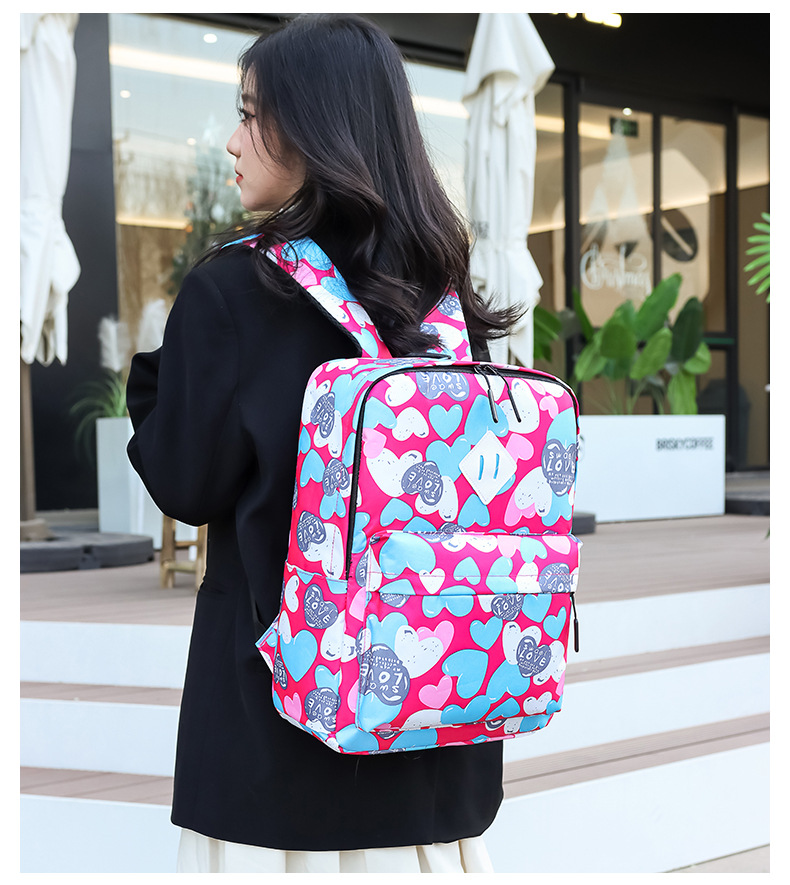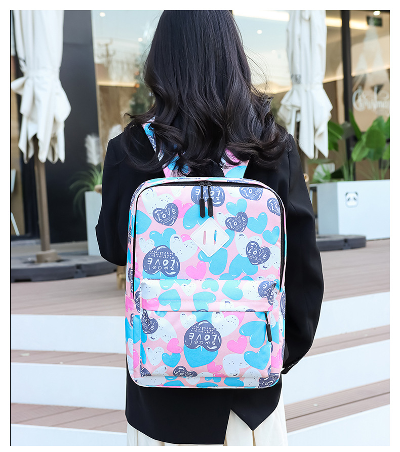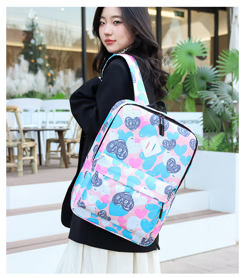 새로운 도착 높은 외관 가치 Schoolbag 여성의 작은 신선한 사랑 인쇄 대학 스타일 경량 경량 대용량 배낭스토어 가기