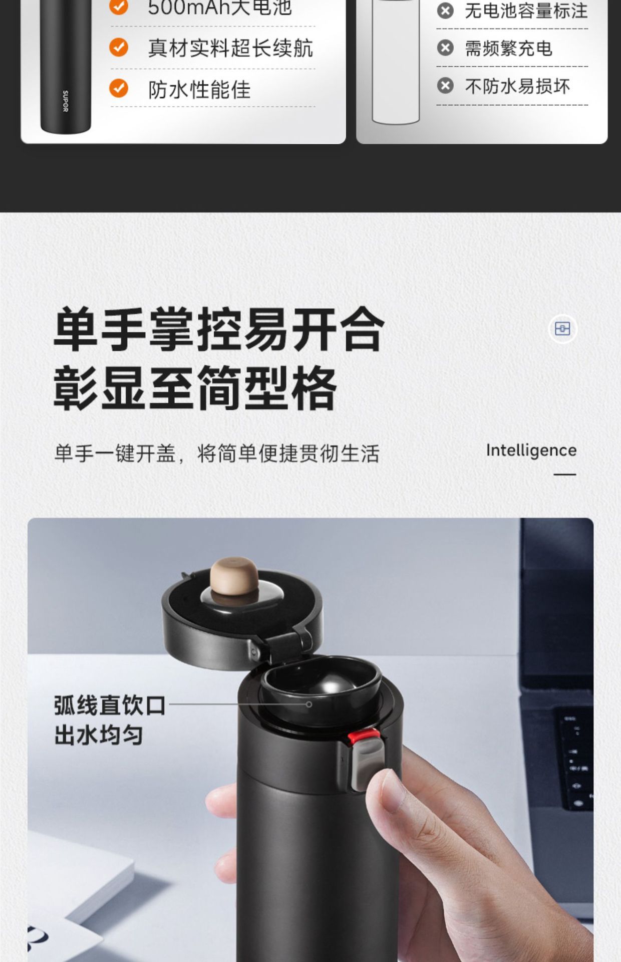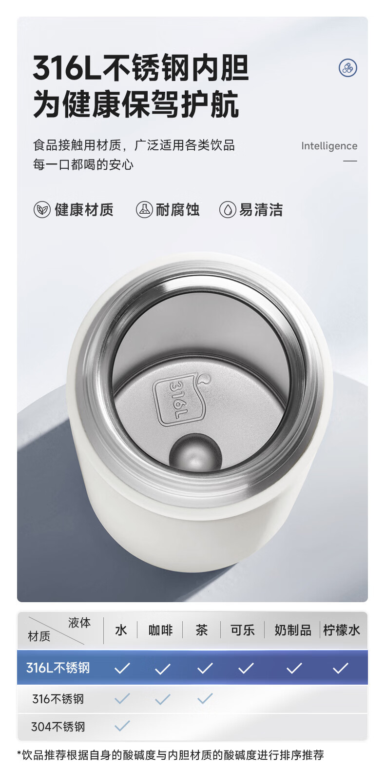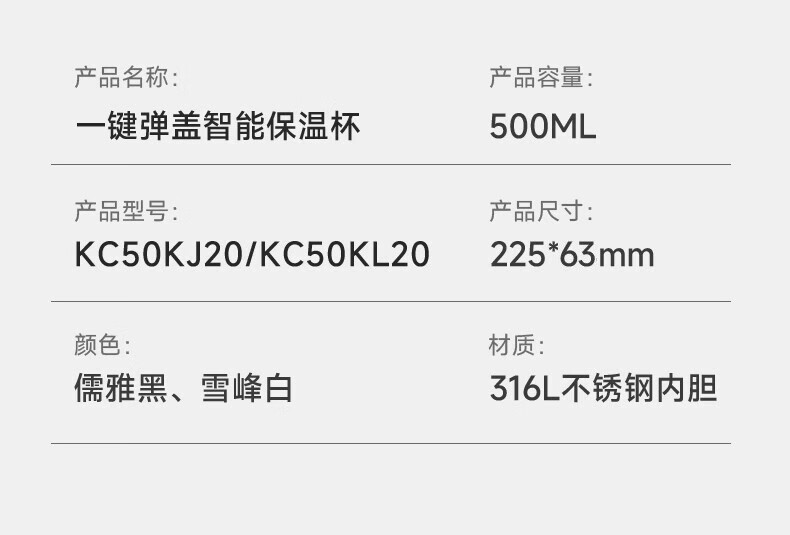 • 지능형 온도 디스플레이 316 스테인레스 스틸 Xuefeng 흰색