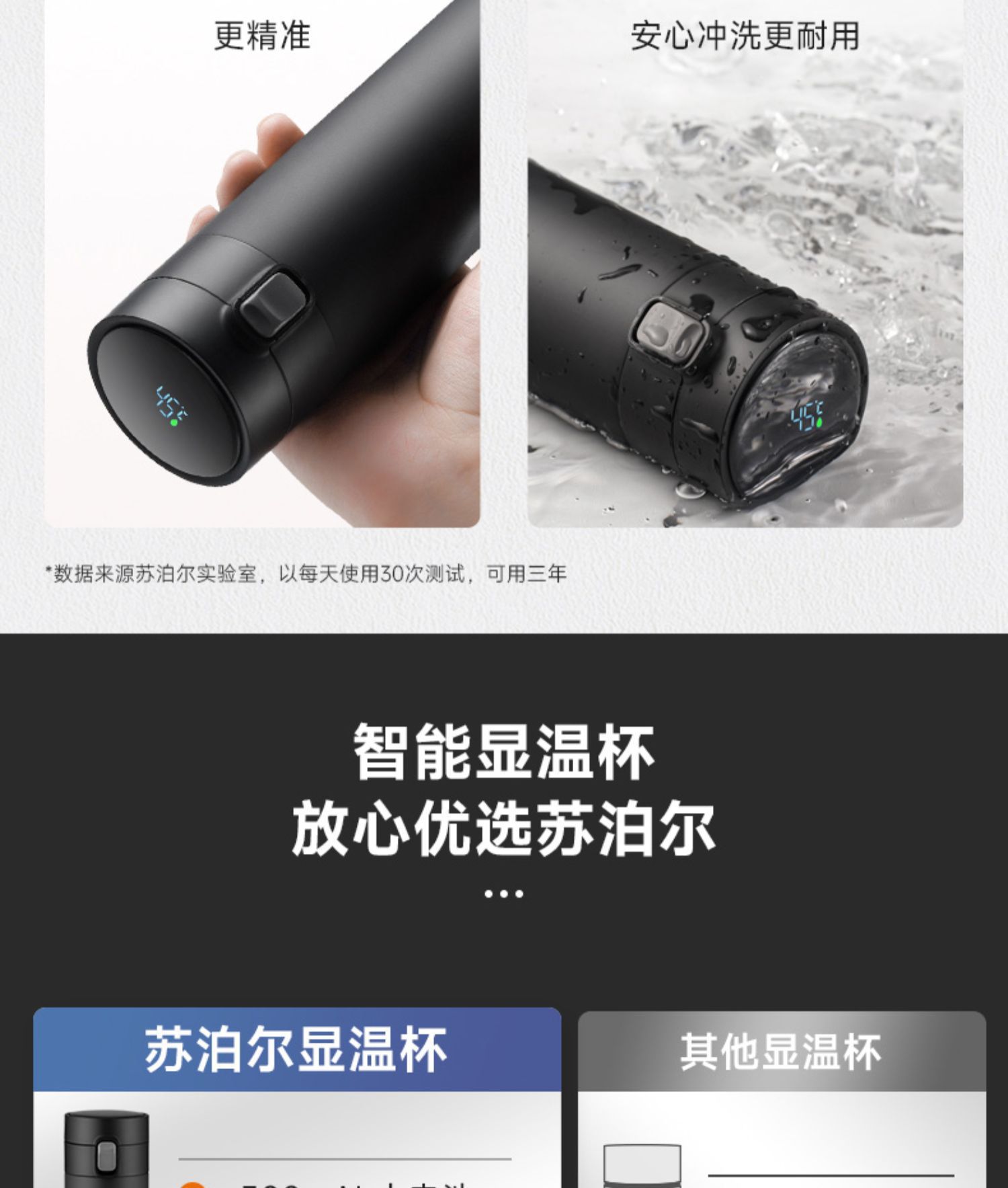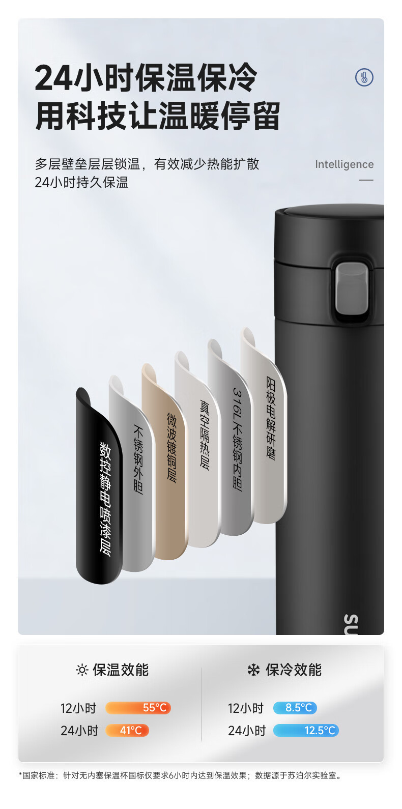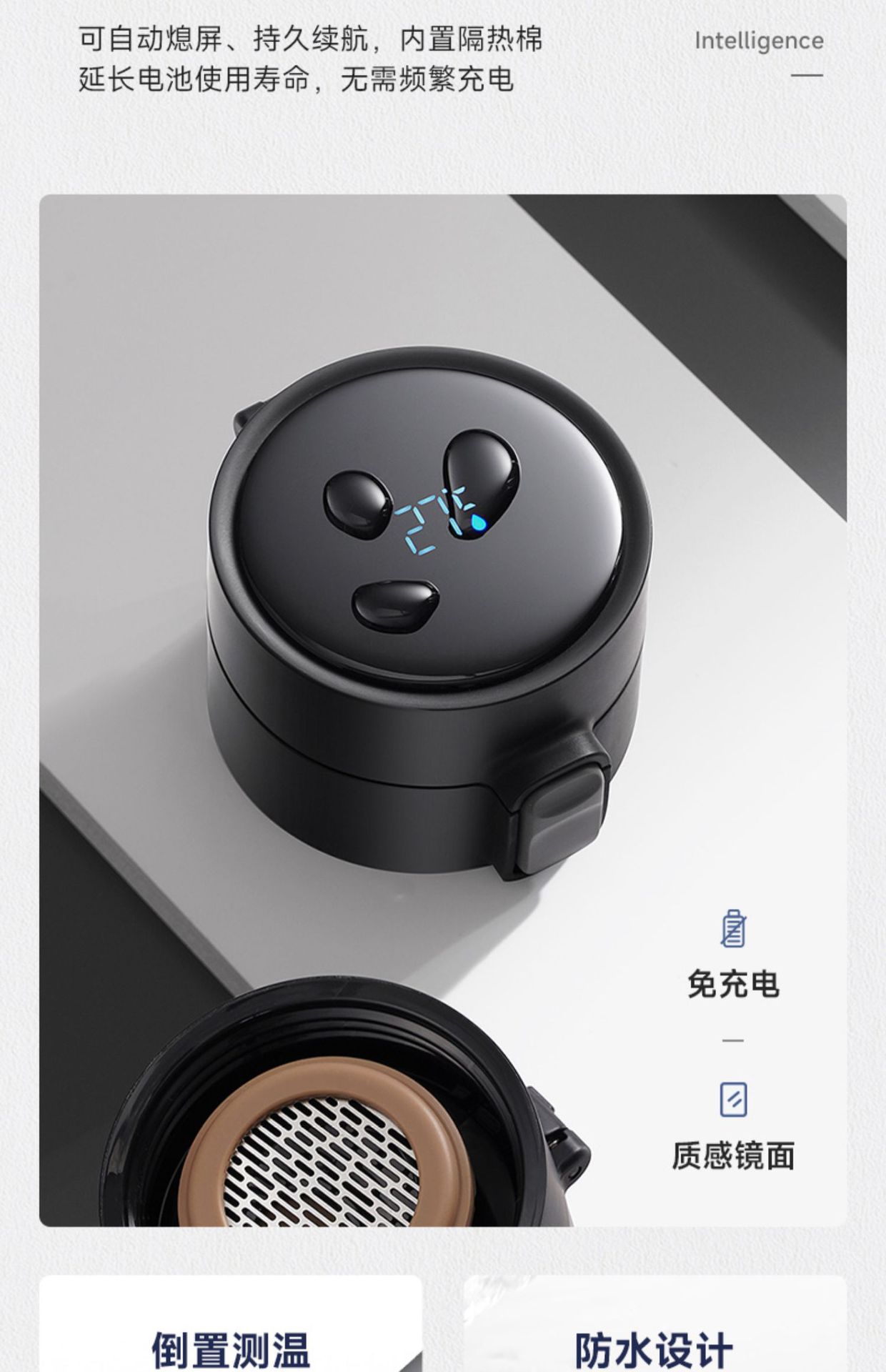 • 지능형 온도 디스플레이 316 스테인레스 스틸 우아한 검정색