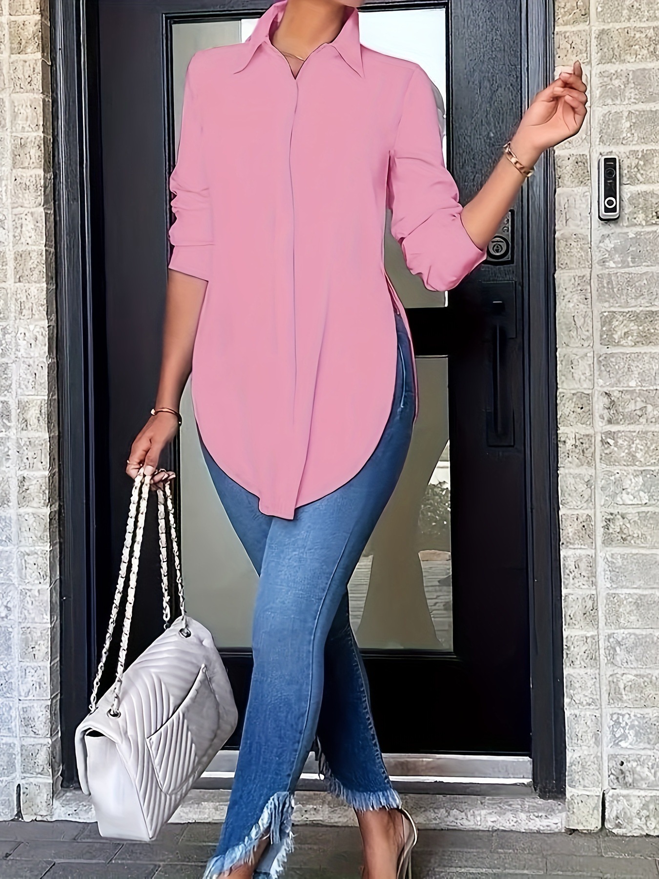 Amazon AliExpress 유럽과 미국의 플러스 사이즈 여성 의류 인기 2024 봄 새로운 맞춤형 긴팔 솔리드 컬러 셔츠 통근스토어 가기