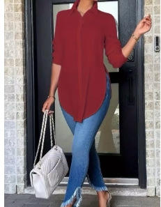 Amazon AliExpress 유럽과 미국의 플러스 사이즈 여성 의류 인기 2024 봄 새로운 맞춤형 긴팔 솔리드 컬러 셔츠 통근