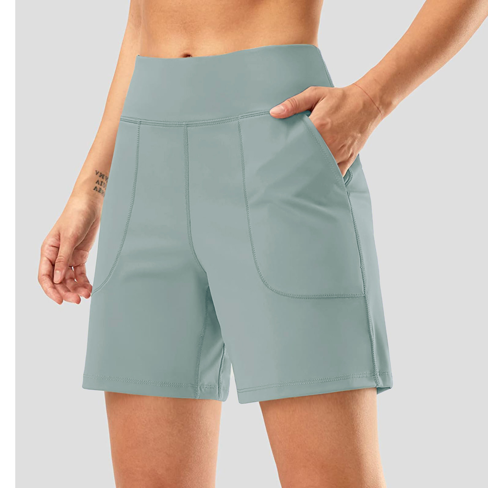 포켓 스포츠 반바지 여성 러닝 사이클링 피트니스 반바지 엉덩이 리프팅 하이 웨이스트 배꼽 컨트롤 요가 바지 탄성 꽉 반바지스토어 가기