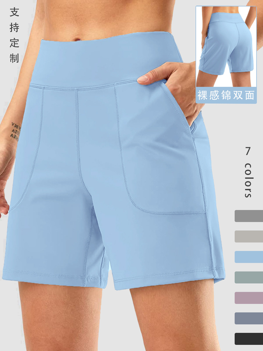 포켓 스포츠 반바지 여성 러닝 사이클링 피트니스 반바지 엉덩이 리프팅 하이 웨이스트 배꼽 컨트롤 요가 바지 탄성 꽉 반바지