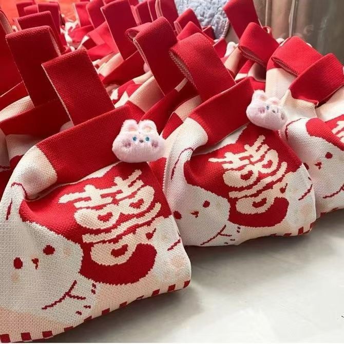 한국 스타일 패션 휴일 선물 가방 선물 니트 가방 손목 가방 대용량 쇼핑 게으른 내구성 핸드백