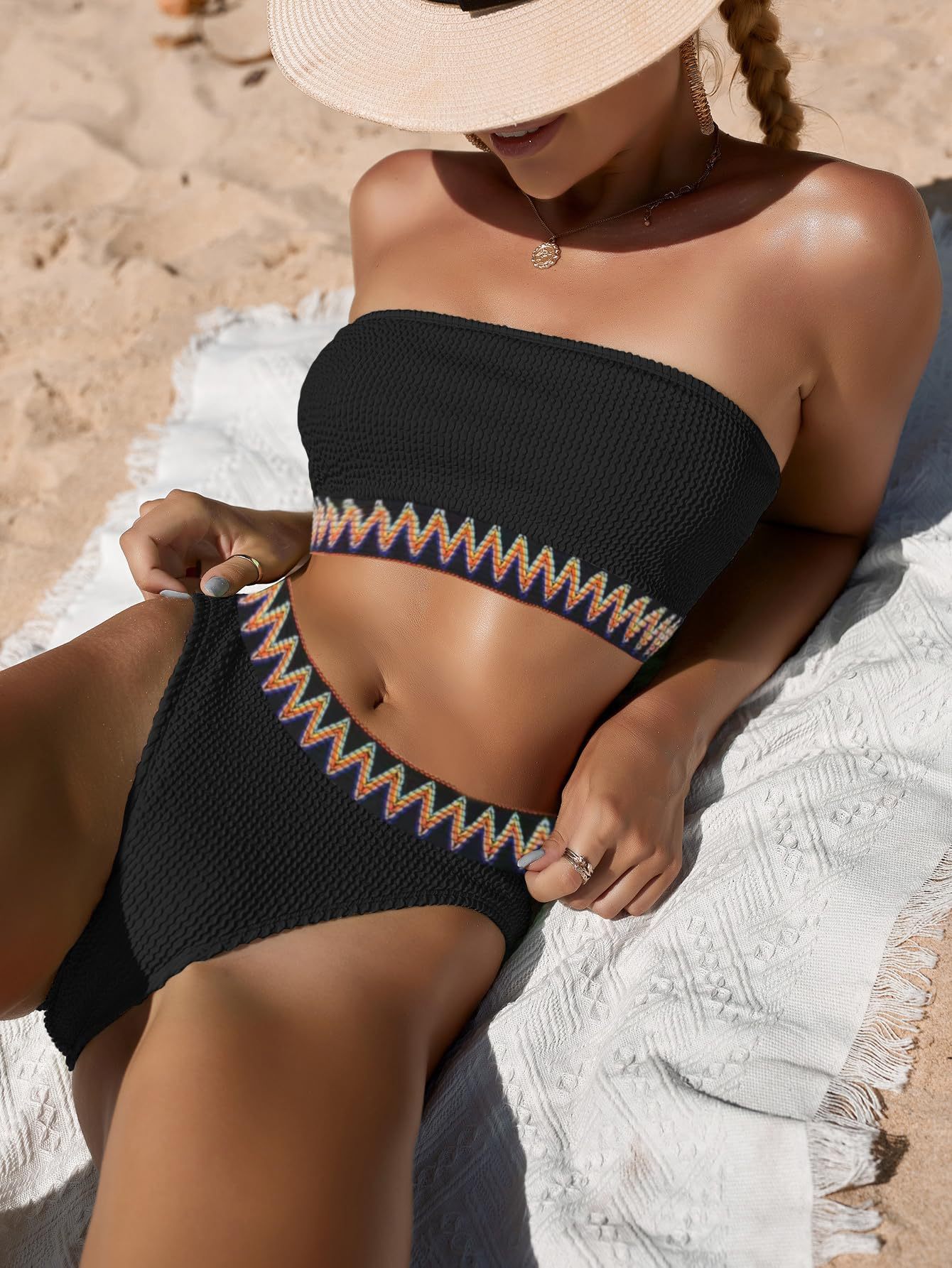 2024 유럽과 미국의 새로운 수영복 아마존 새로운 섹시한 끈이없는 비키니 높은 허리 다색 분할 수영복 여성