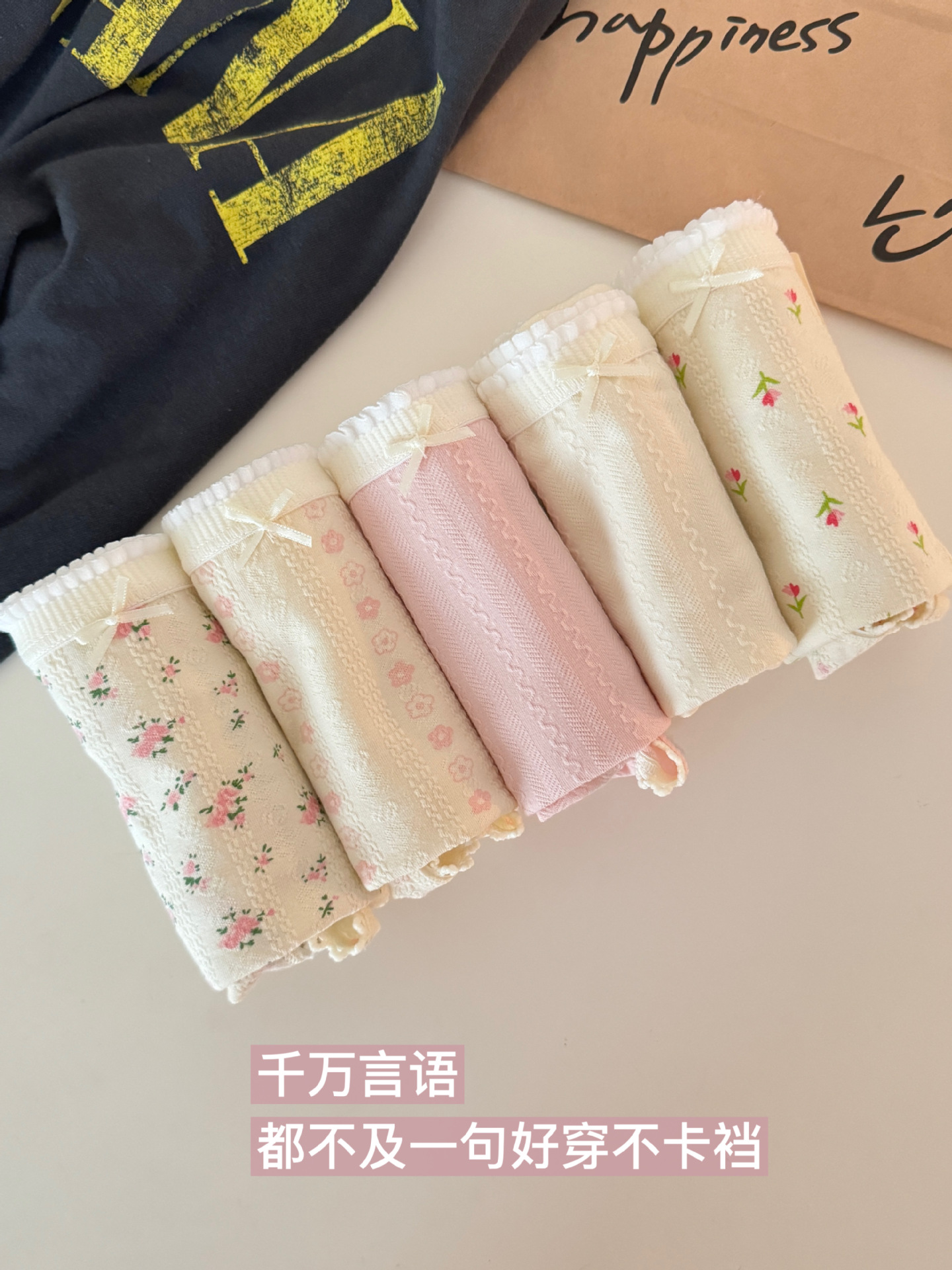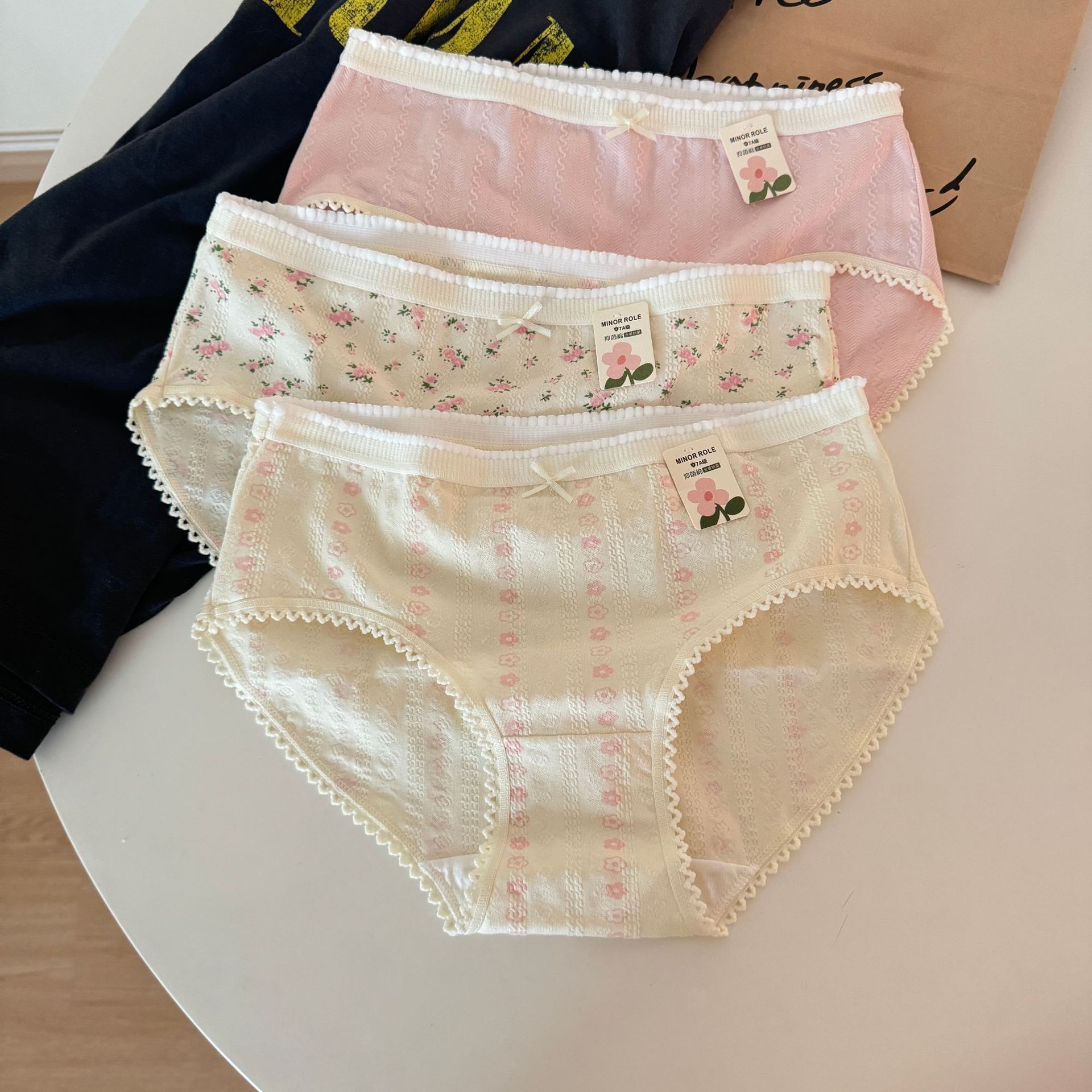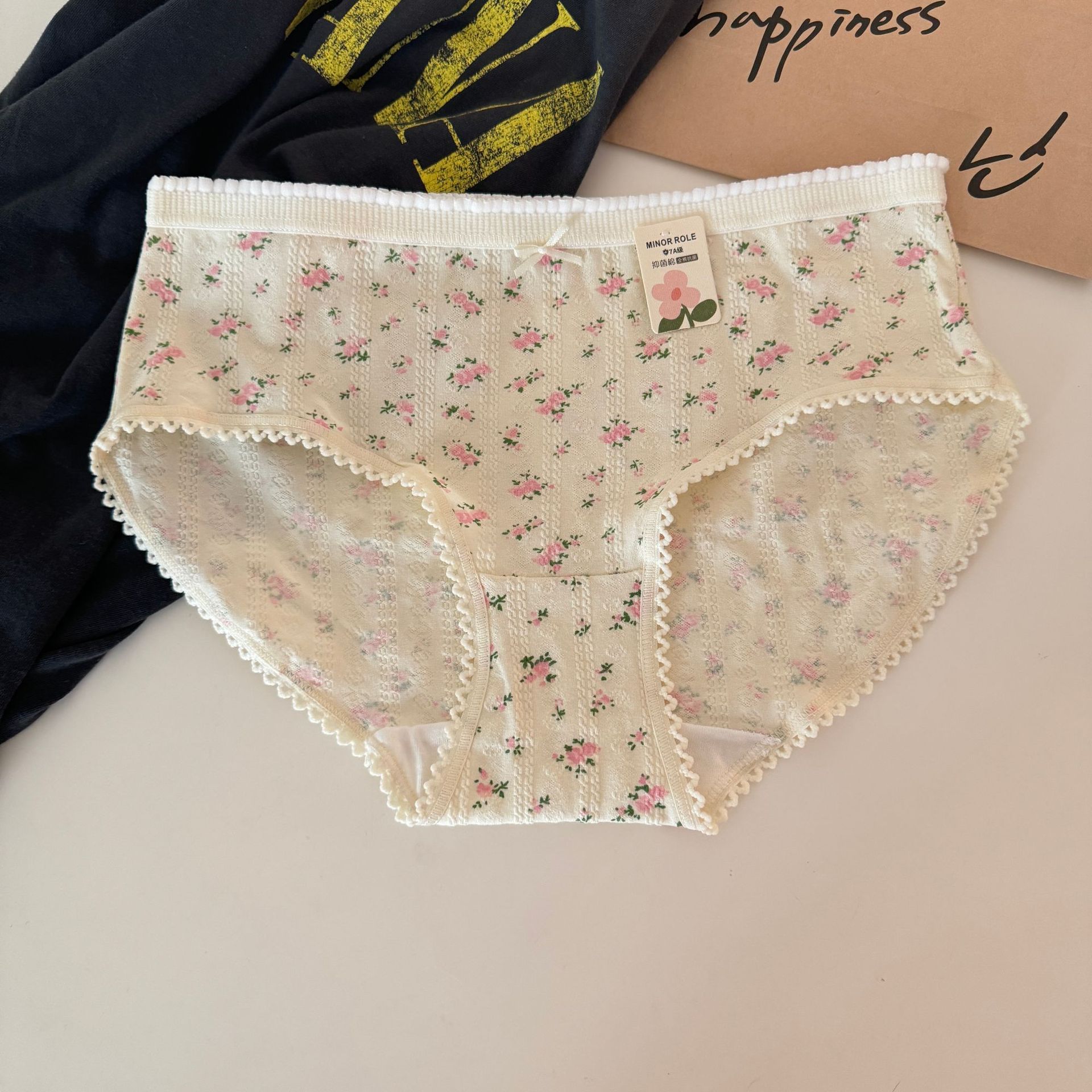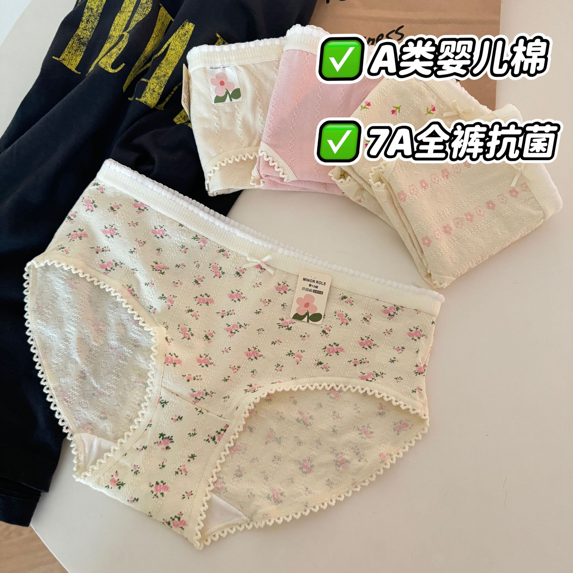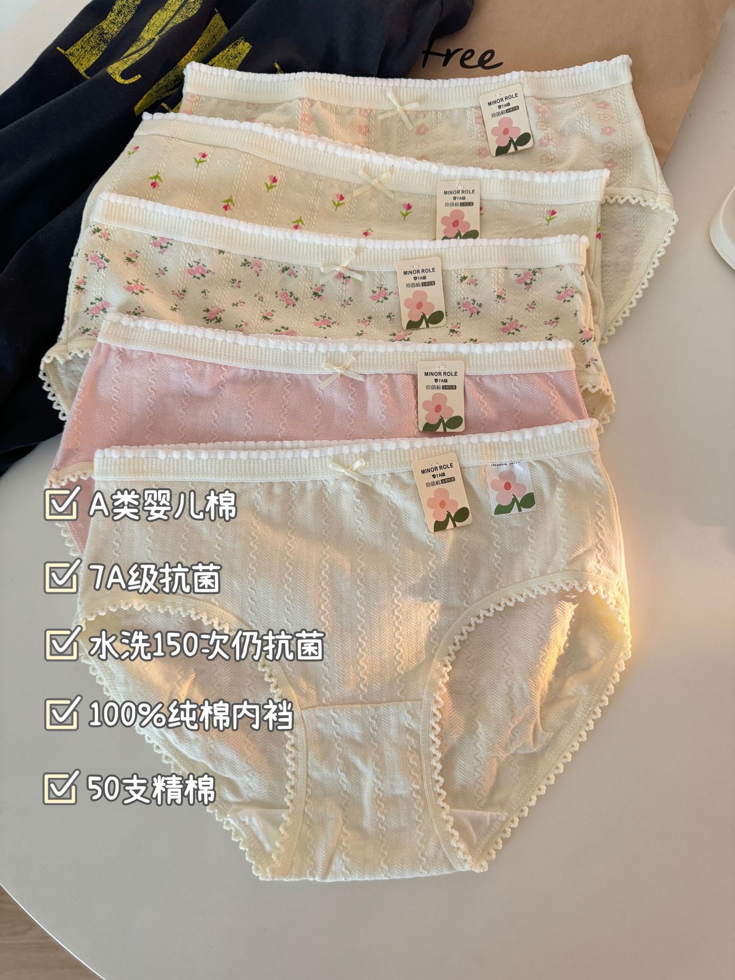 프랑스 꽃 속옷 여성의 7A 항균 중간 허리 클래스 아기면 피부 친화적 인 편안한 코튼 크로트 폼 면화 바지스토어 가기