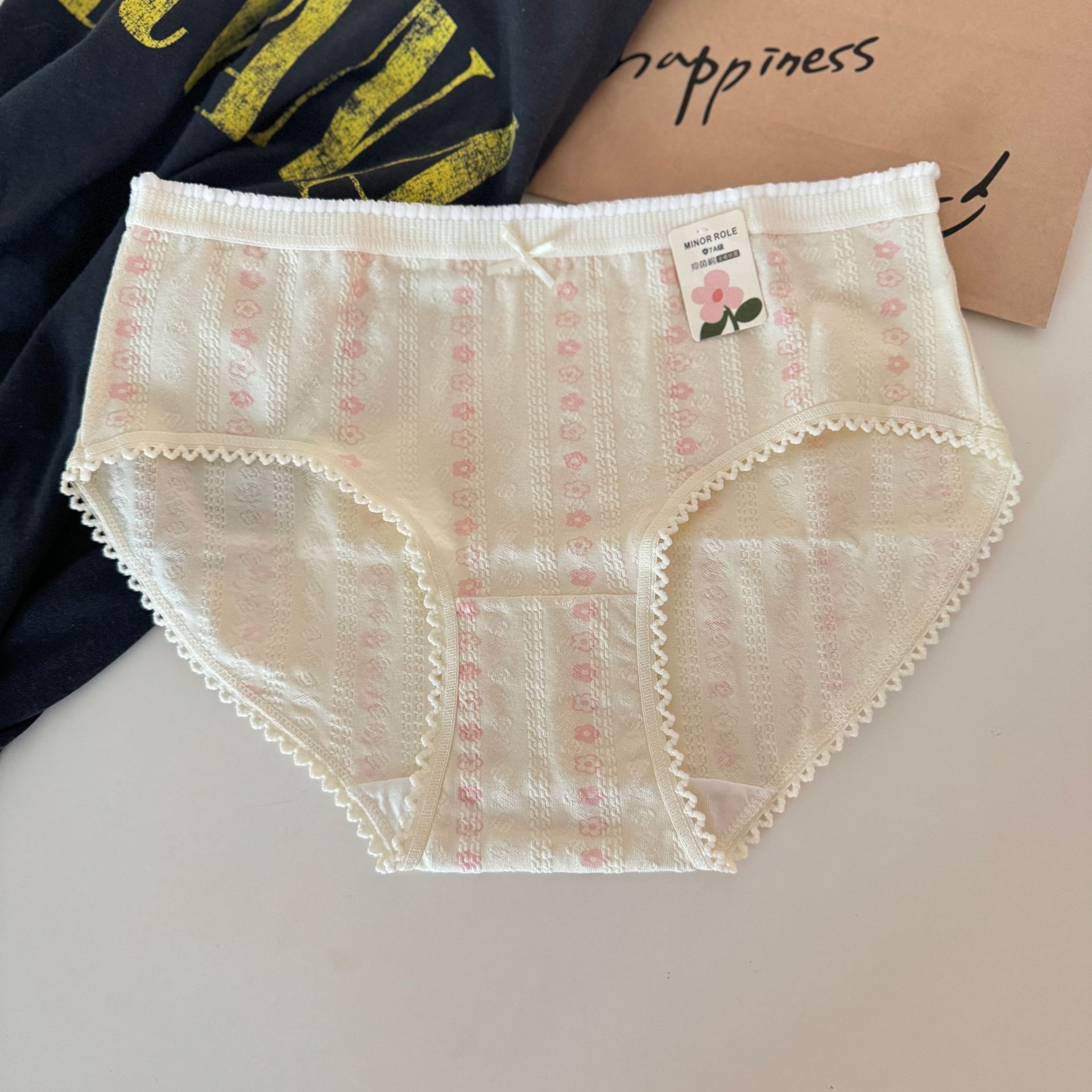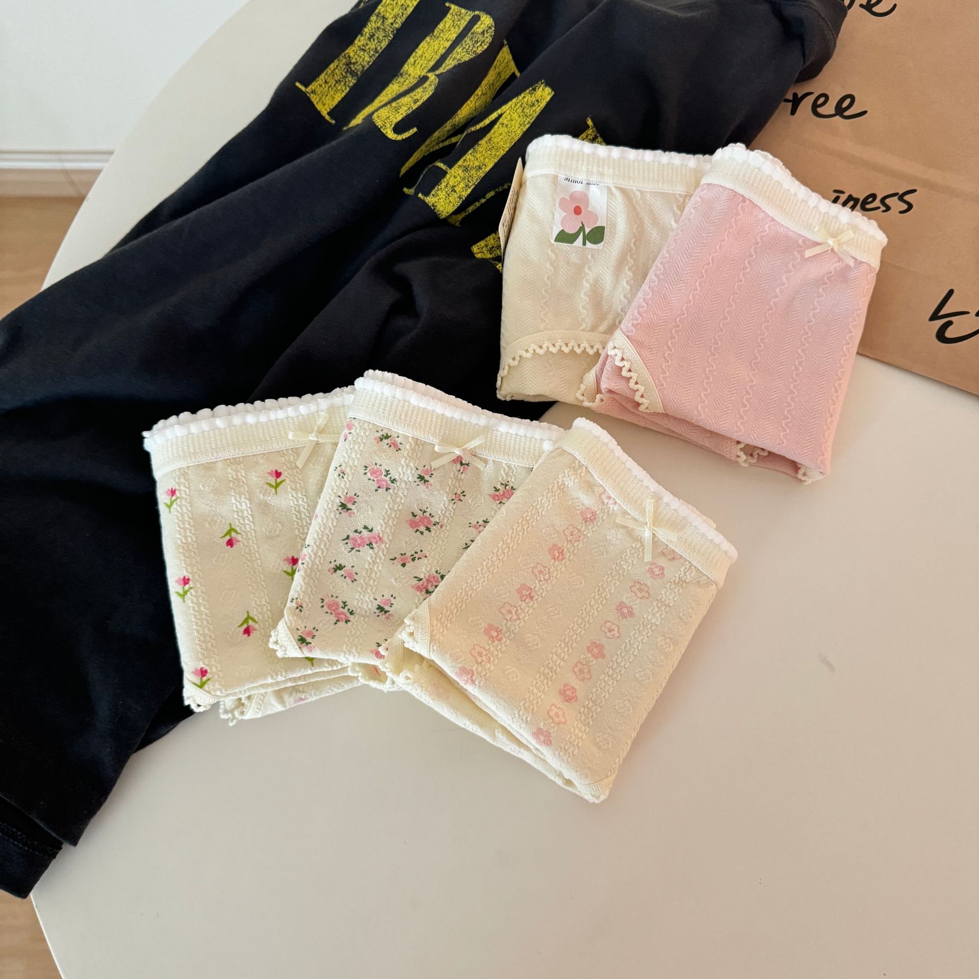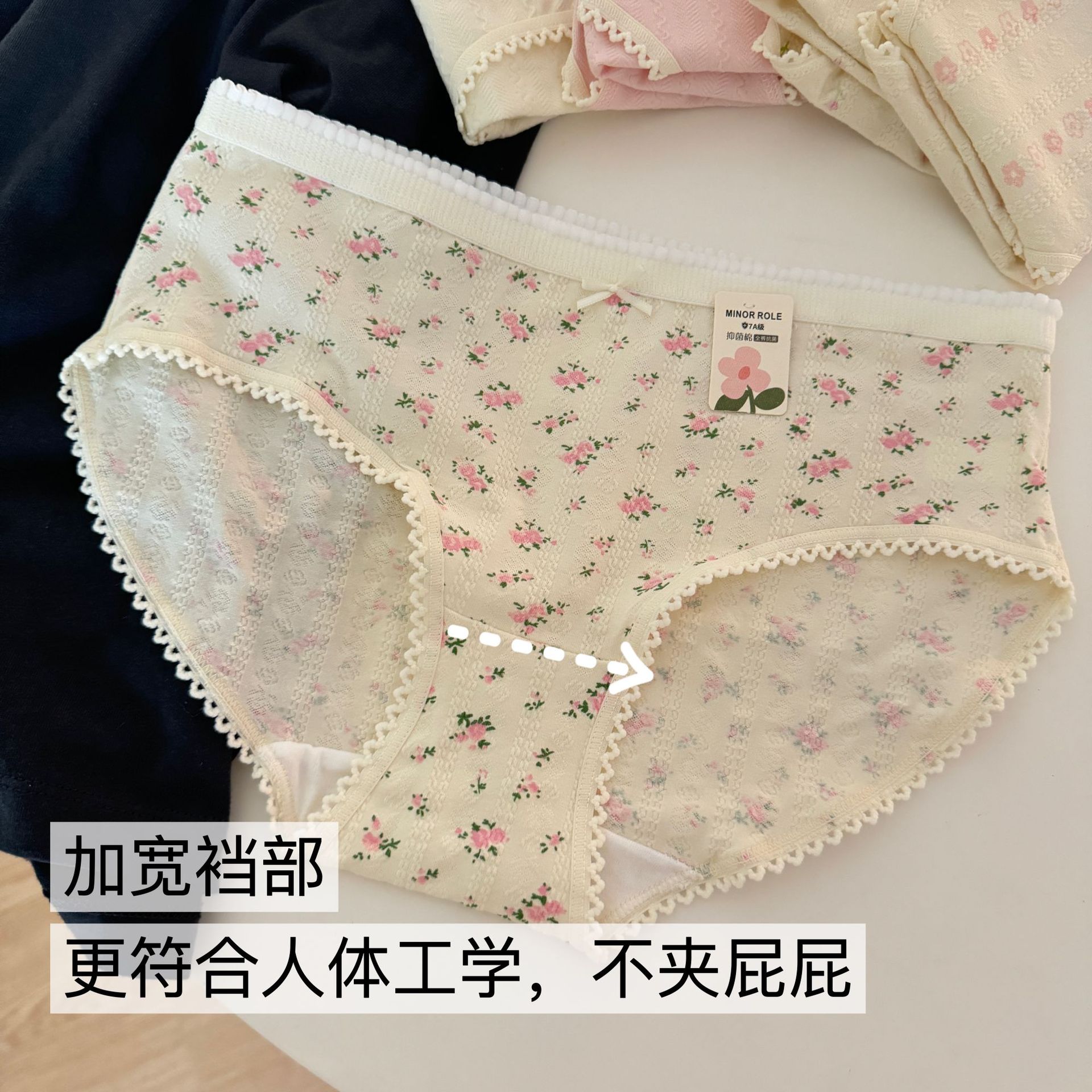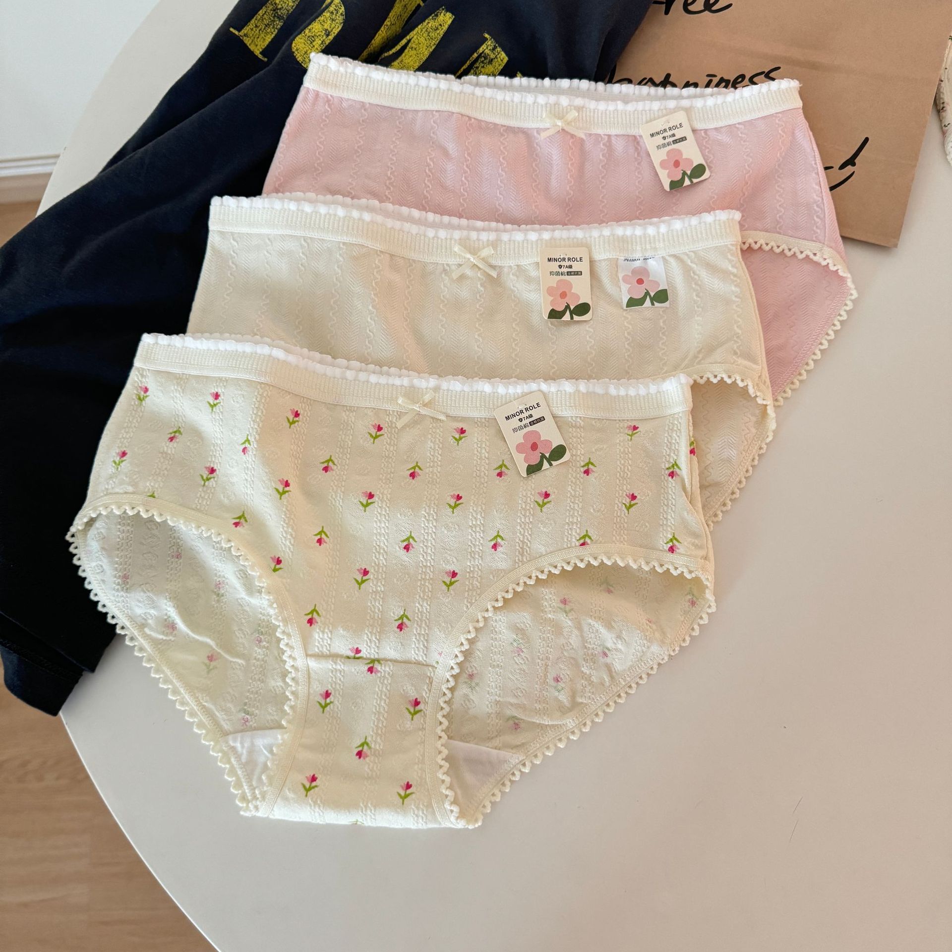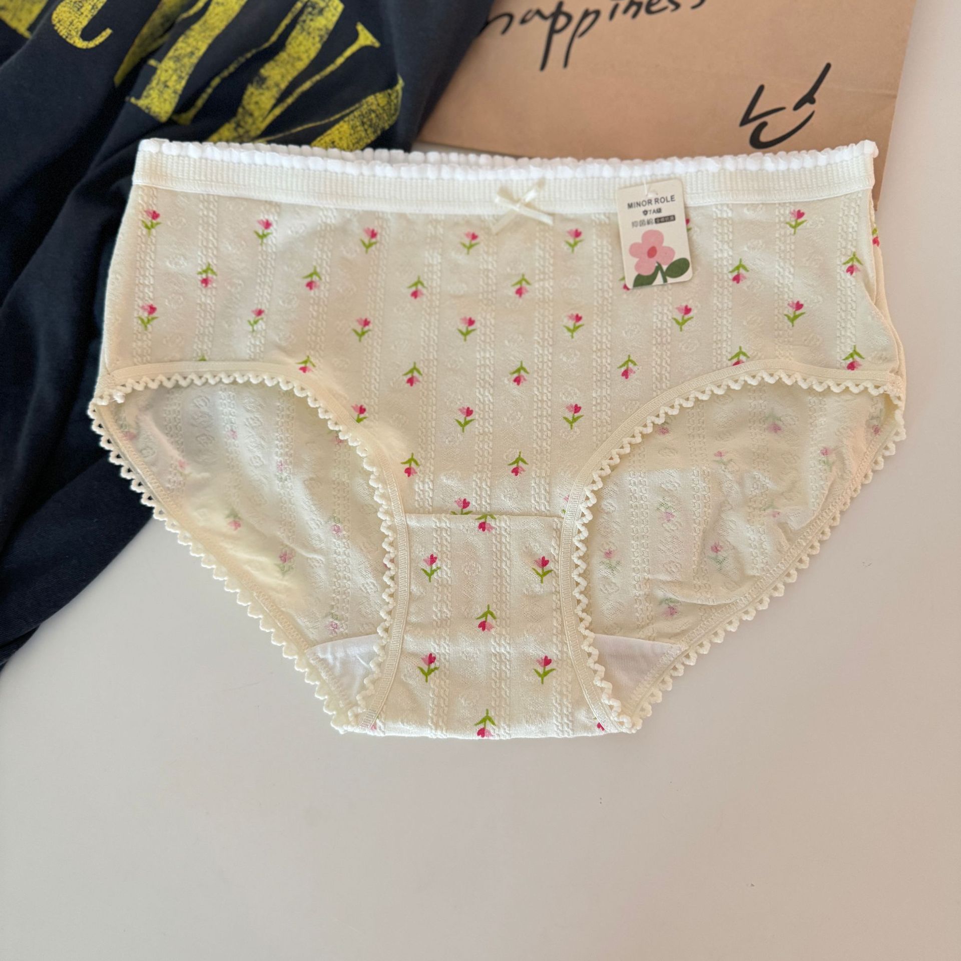 프랑스 꽃 속옷 여성의 7A 항균 중간 허리 클래스 아기면 피부 친화적 인 편안한 코튼 크로트 폼 면화 바지