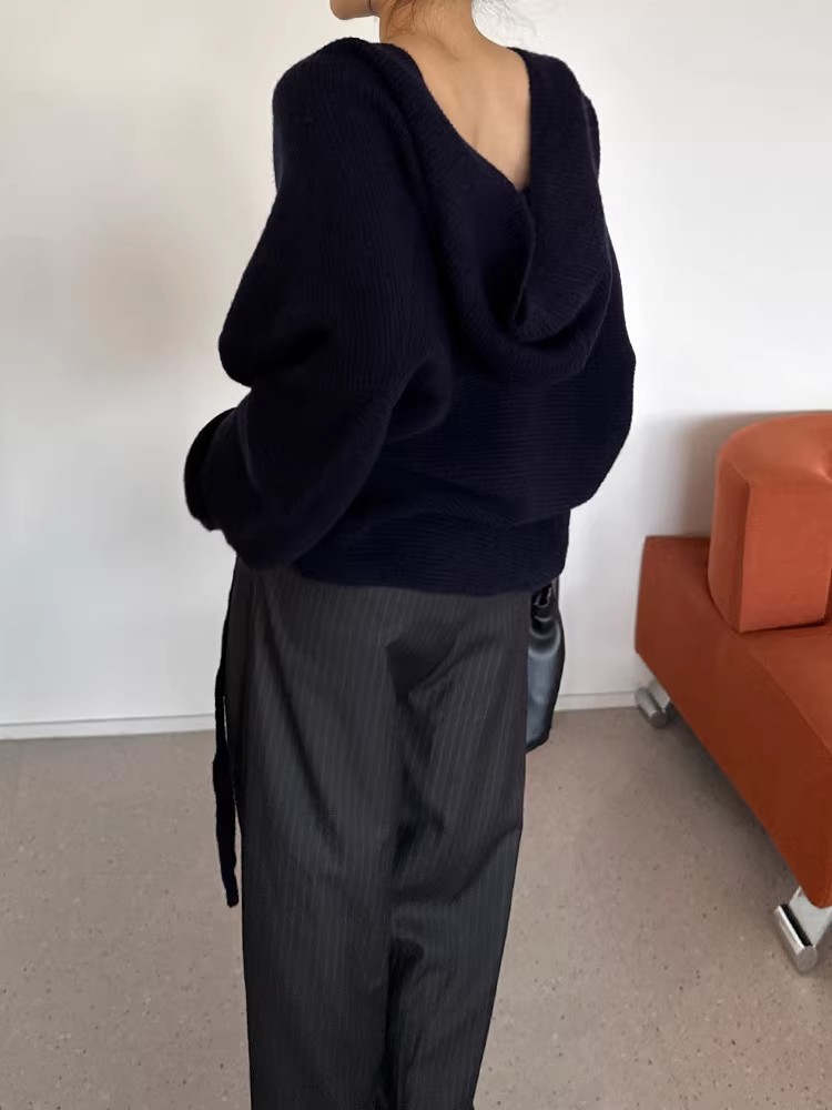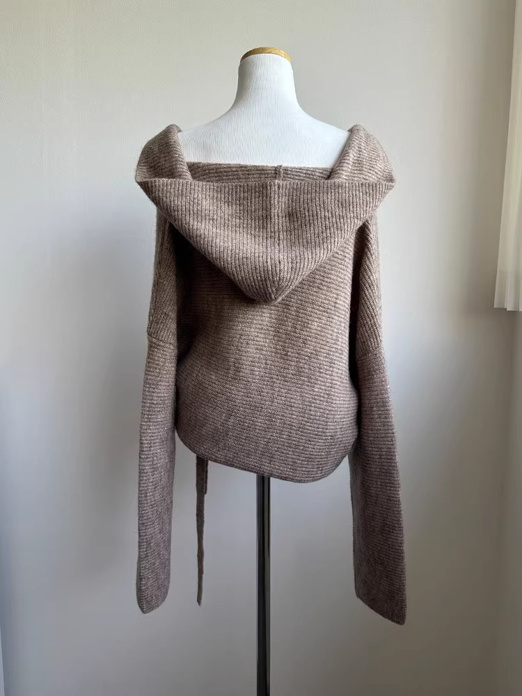 한국 세련된 가을과 겨울 빈티지 기질 크로스 v 칼라 후드 레이스 업 디자인 느슨한 올 매치 스웨터 코트 여성스토어 가기