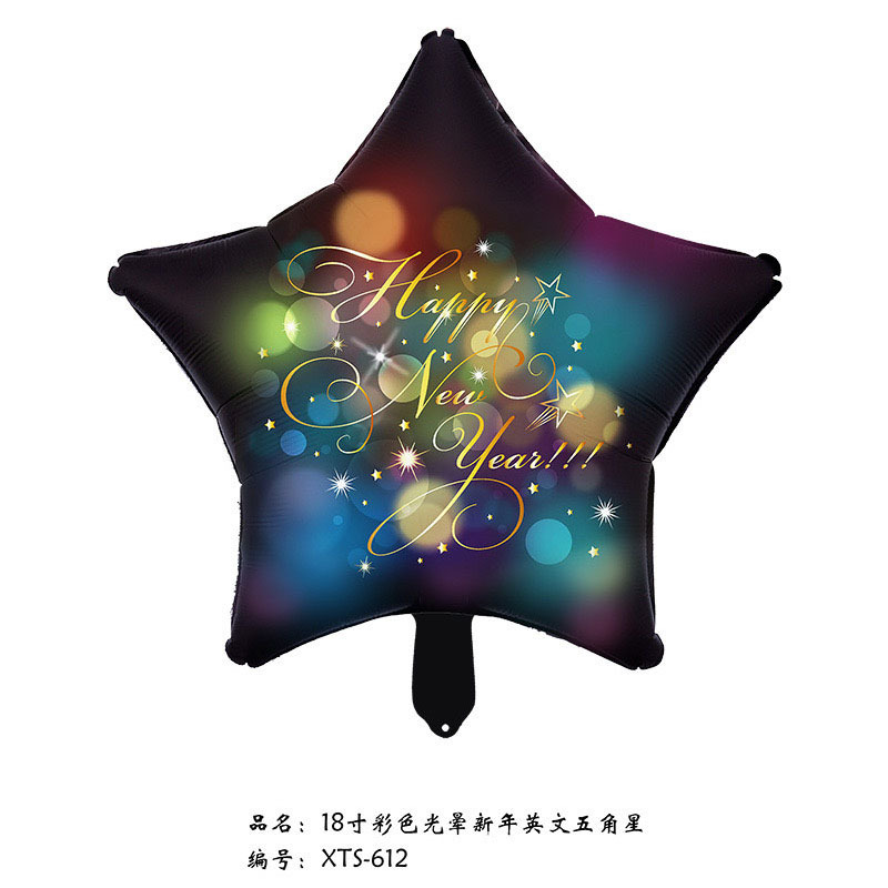 • 영어로 된 18 인치 컬러 후광 새해 다섯개 별