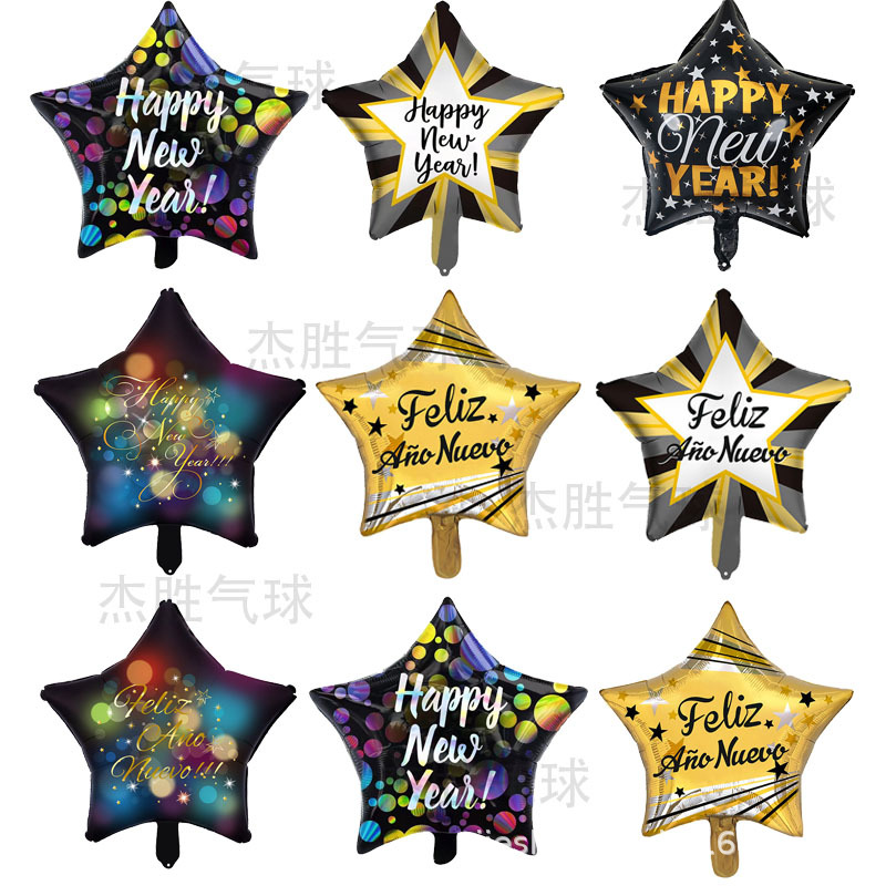 국경 18 인치 새해 5 개 별 알루미늄 풍선 새해 복 많이 받으세요 새해 연례 축하 파티 장식