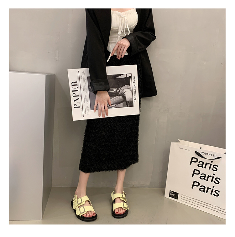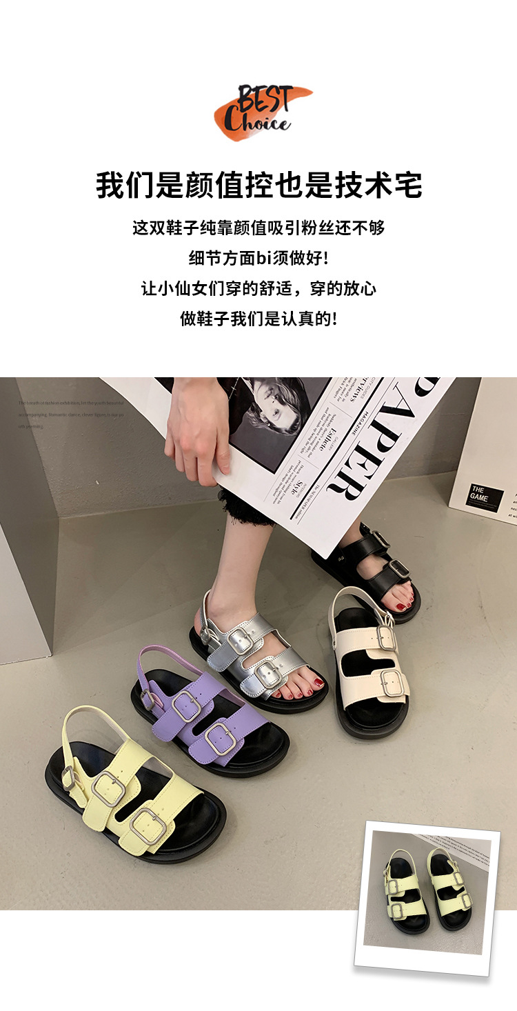 레트로 하라주쿠 스타일 패션 샌들 여성 아우터웨어 봄 새로운 틈새 시장 트렌디 디자인 센스 캐주얼 로마 샌들스토어 가기