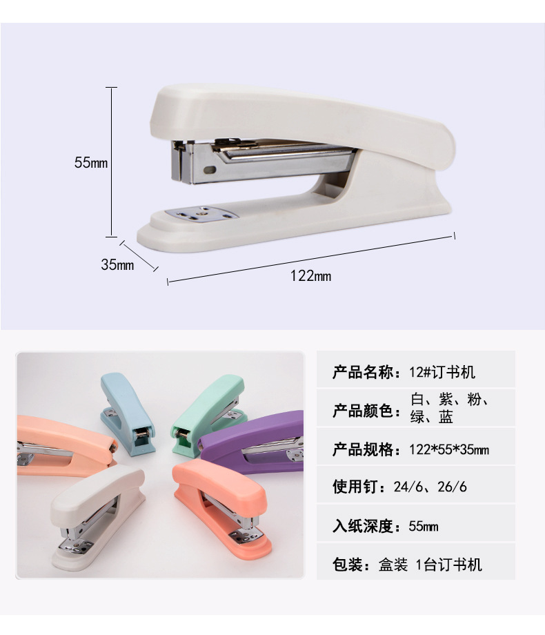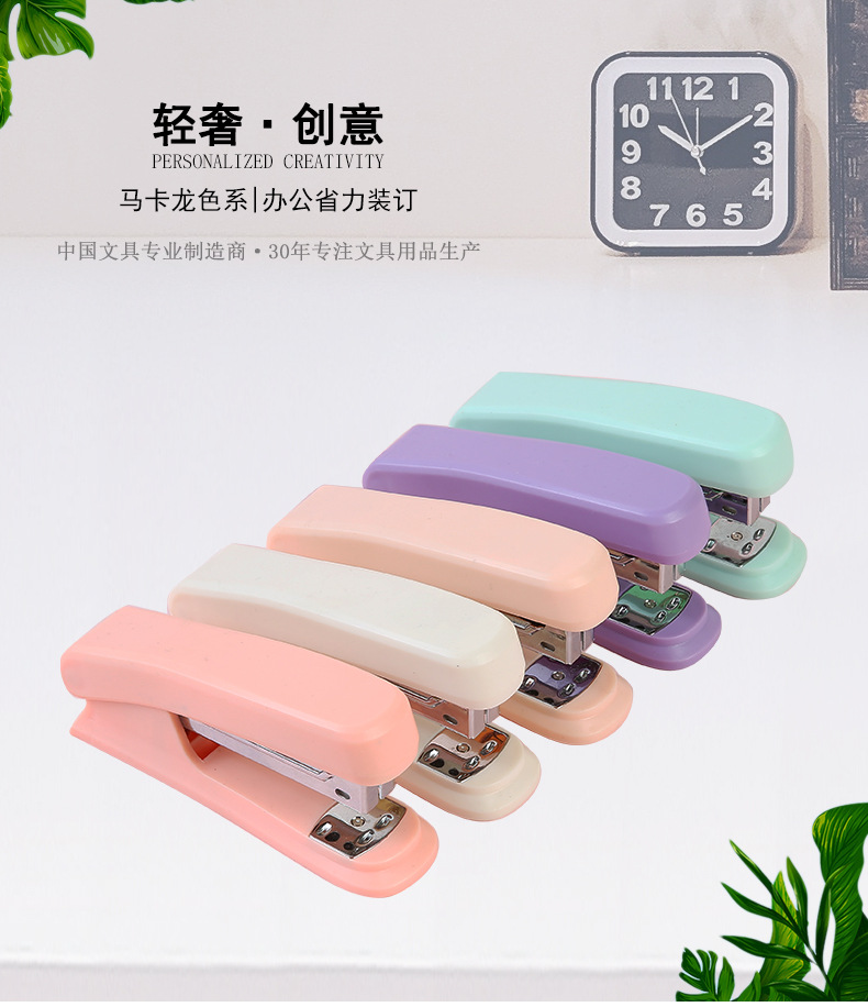 12 번 마카롱 컬러 스테이플러 진 줄룬 사무실 노동 절약 중간 스테이플러 학생 바인딩 기계 도매
