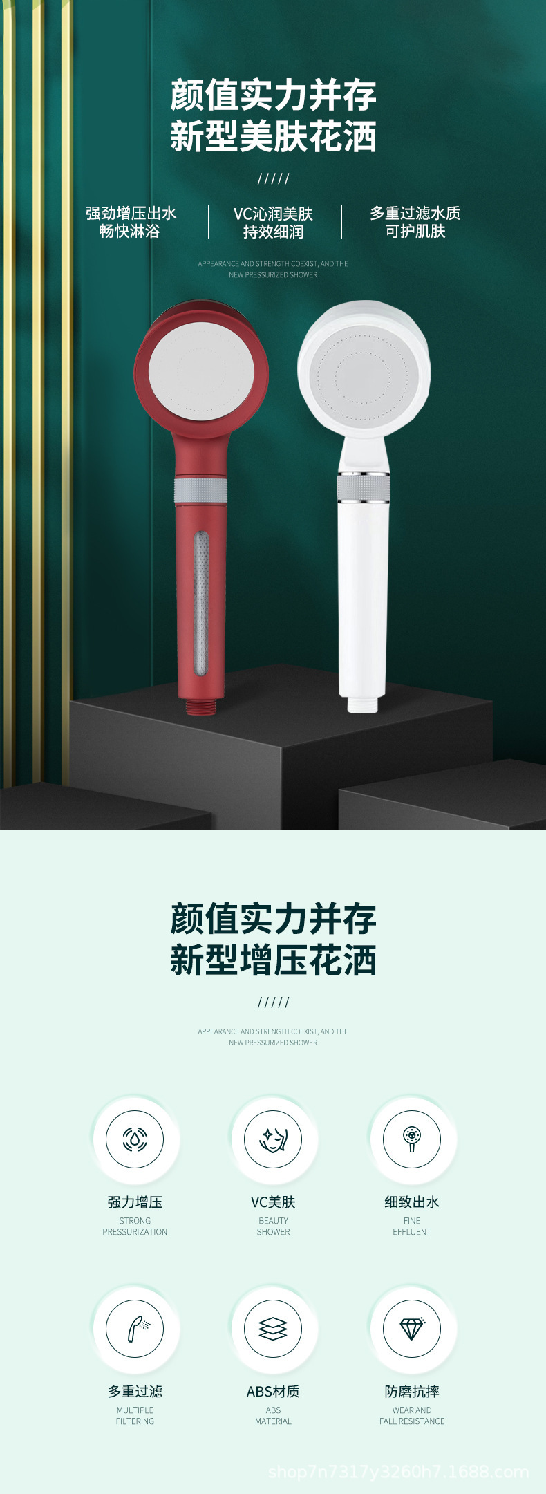 일본과 한국의 뷰티 스킨 가압 샤워 정수 필터 스프레이 헤드 VC 뷰티 스킨 뷰티 샤워 헤드 가정용 목욕에 적합