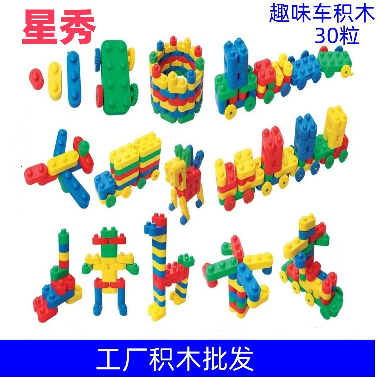Xingxiu 재미있는 자동차 작은 기차 건물 블록 조기 교육 교육 건물 블록 유치원 플라스틱 조립 자동차 빌딩 블록 놀이스토어 가기