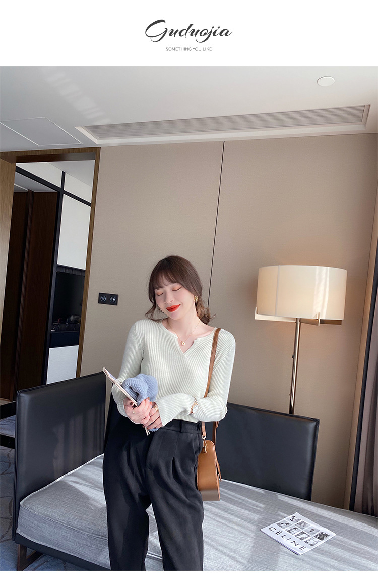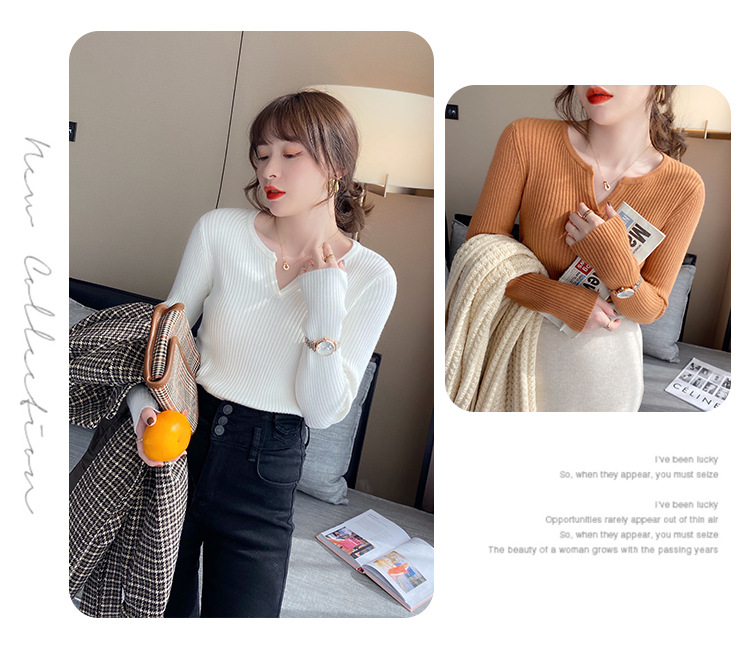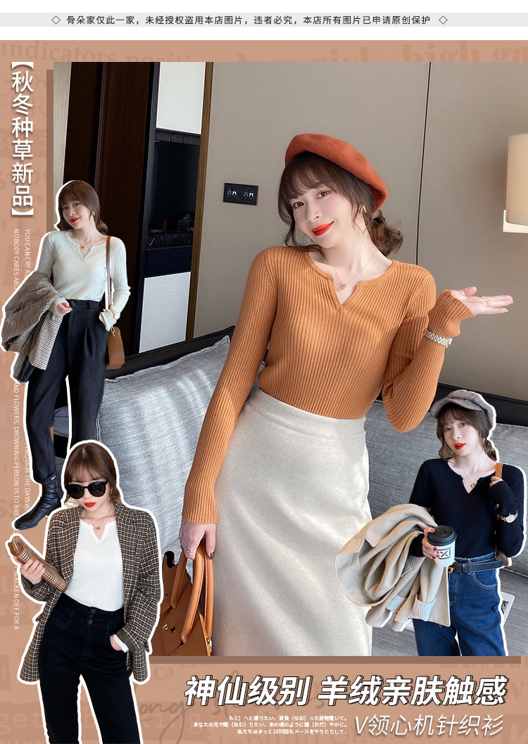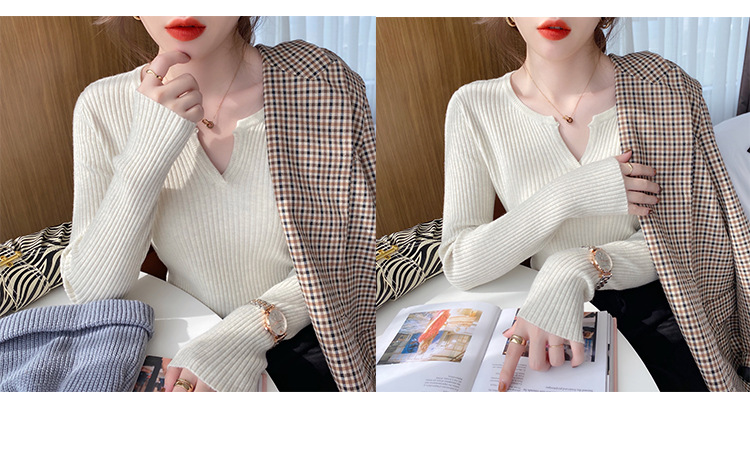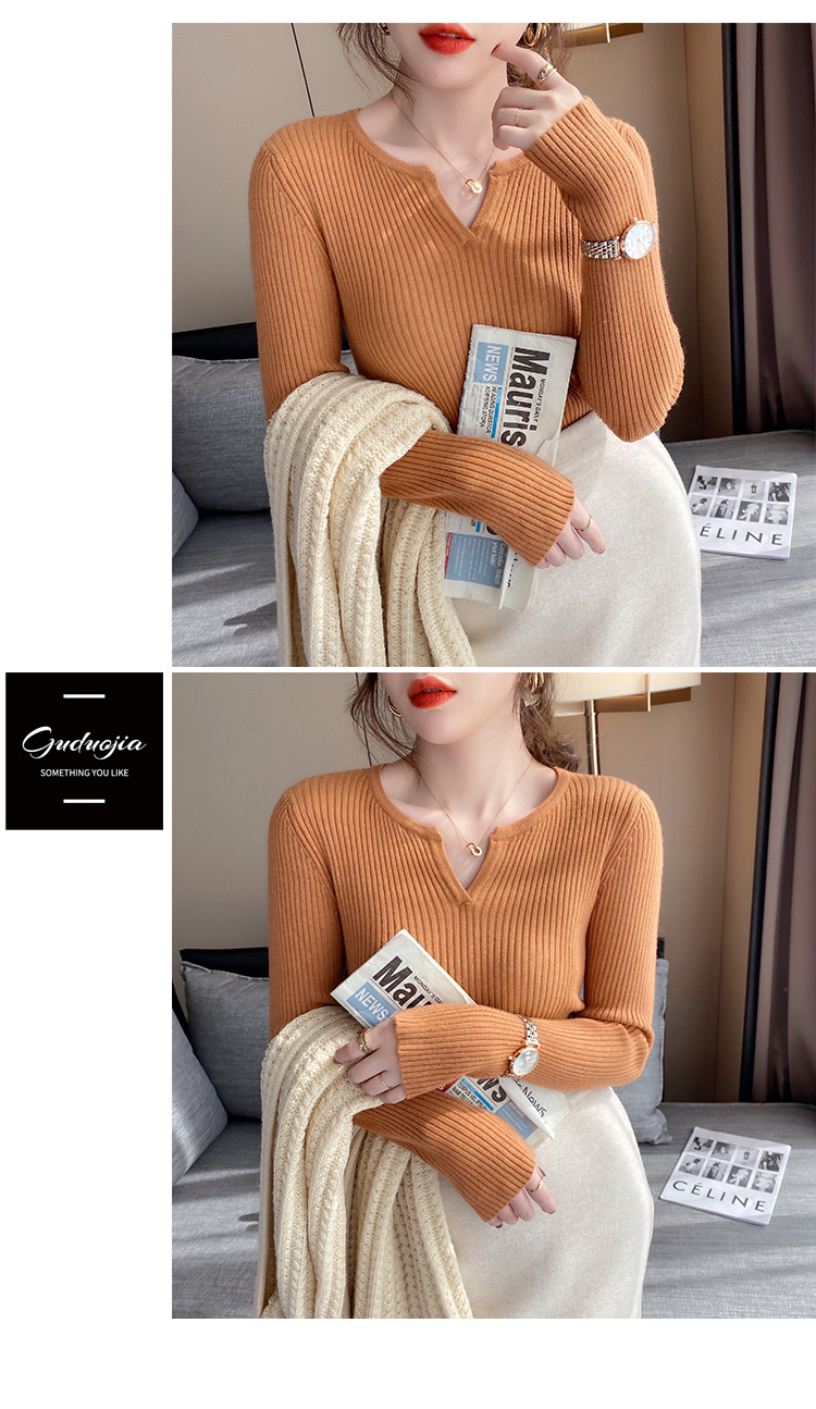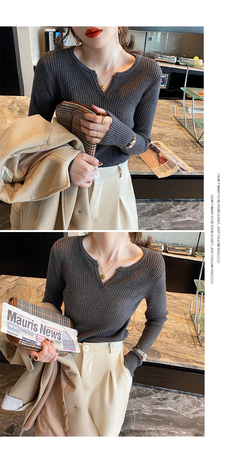 2024 외국식 슬림핏 긴팔 새베이스 셔츠 봄과 가을 초가을 니트 셔츠 V넥 스웨터 여성용 탑스토어 가기