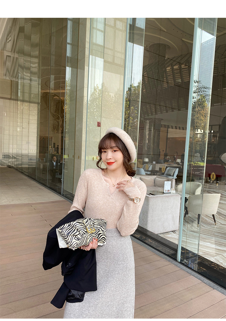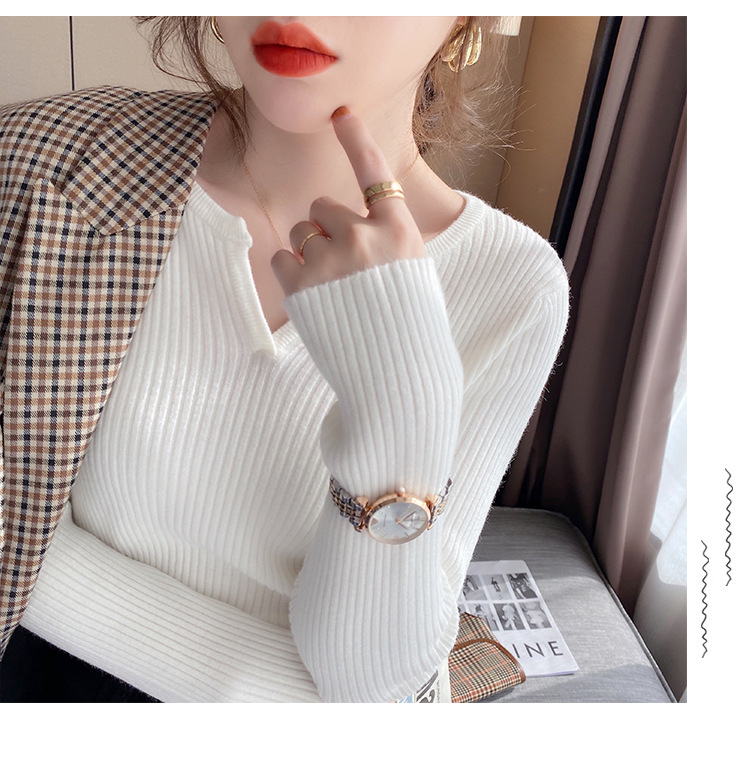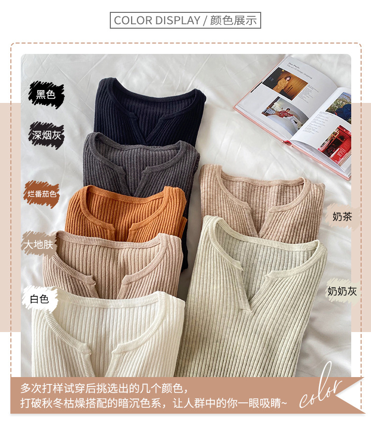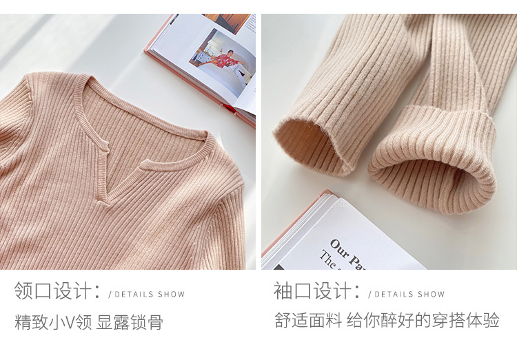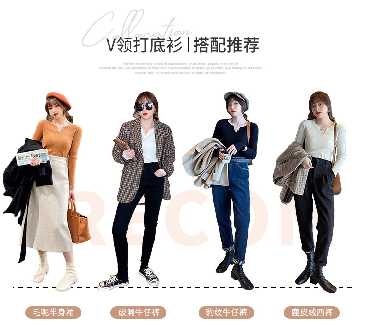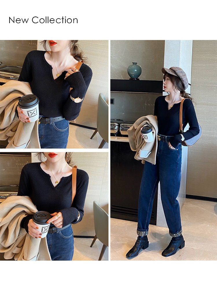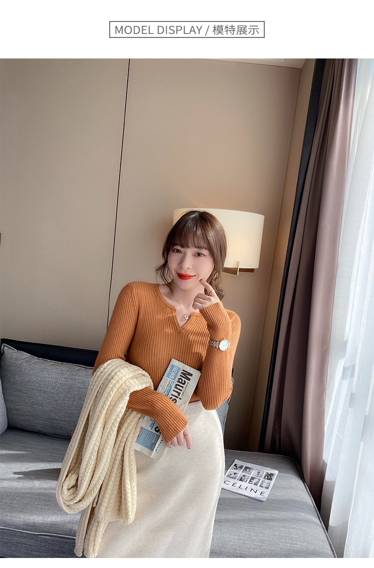 2024 외국식 슬림핏 긴팔 새베이스 셔츠 봄과 가을 초가을 니트 셔츠 V넥 스웨터 여성용 탑스토어 가기