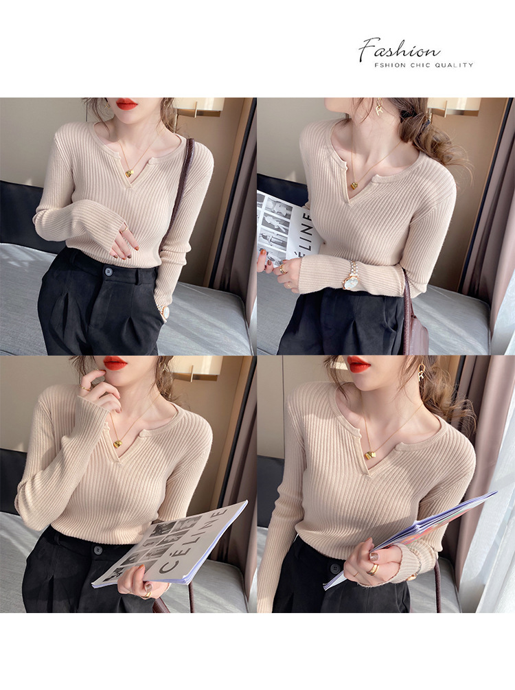 2024 외국식 슬림핏 긴팔 새베이스 셔츠 봄과 가을 초가을 니트 셔츠 V넥 스웨터 여성용 탑