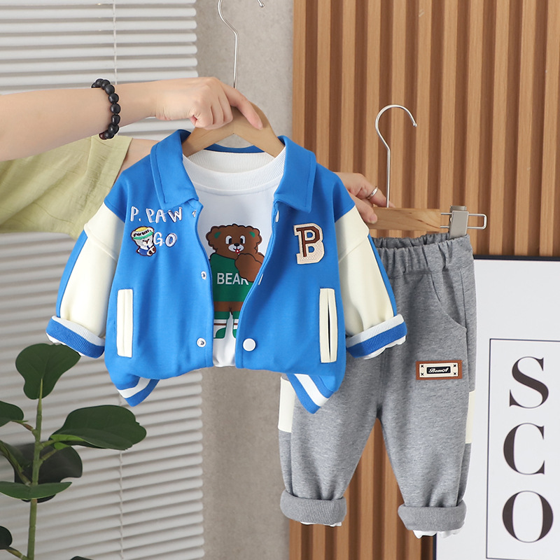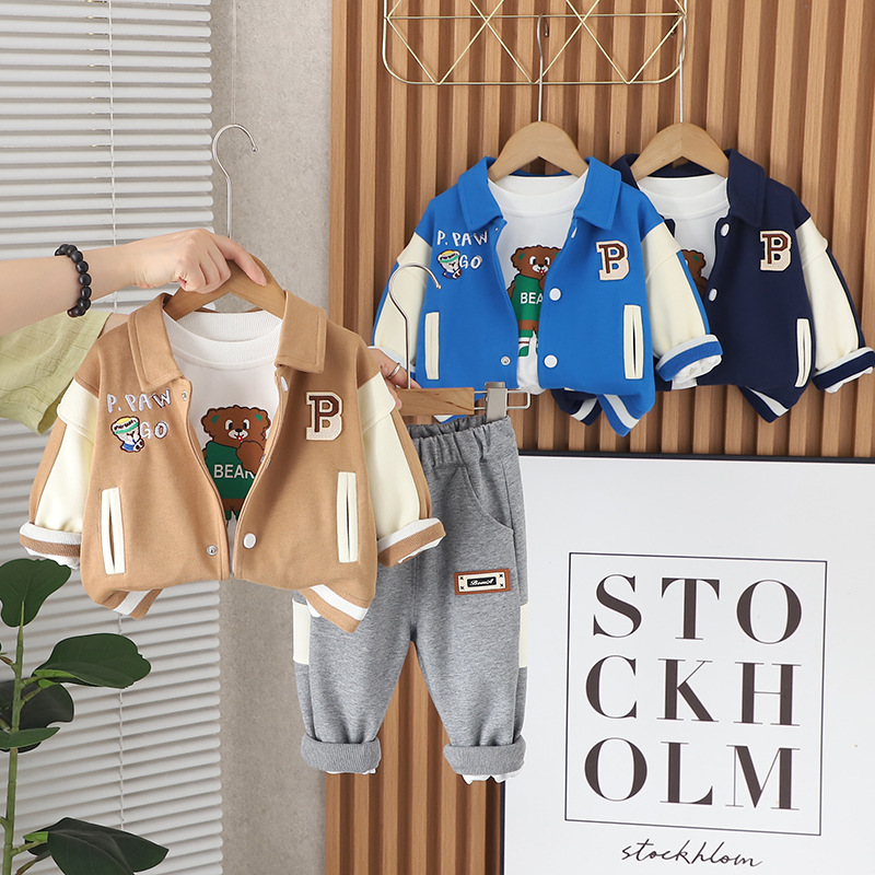 남학생 서양식 가을 긴팔 세트 봄과 가을 새 어린이 잘 생긴 투컬러 편지 카디건 긴소매 3 종 세트스토어 가기