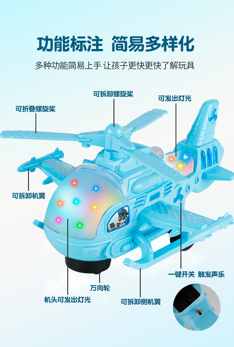 어린이 전기 범용 항공기 여객기 조명 및 음향 효과 항공기 모델 범용 헬리콥터 아기 소년 소녀 도매스토어 가기