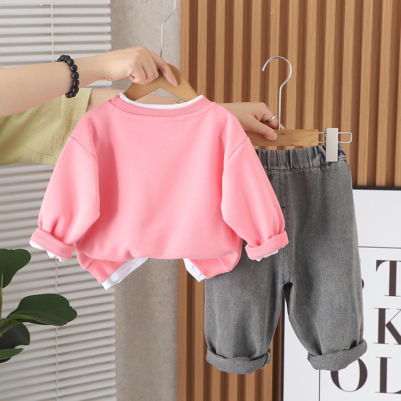 소년 서양식 가을 세트 봄과 가을 새로운 어린이 잘 생긴 더블 레이어 칼라 긴팔 구멍 바지 2 피스 세트