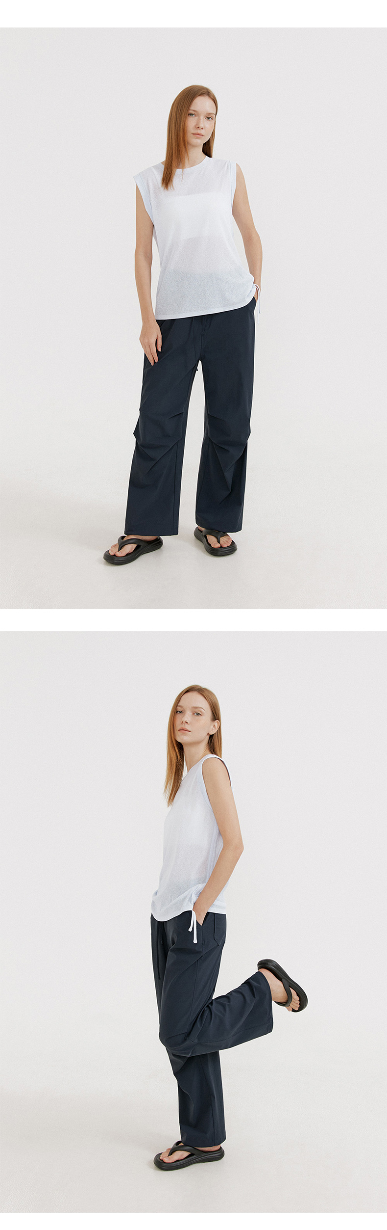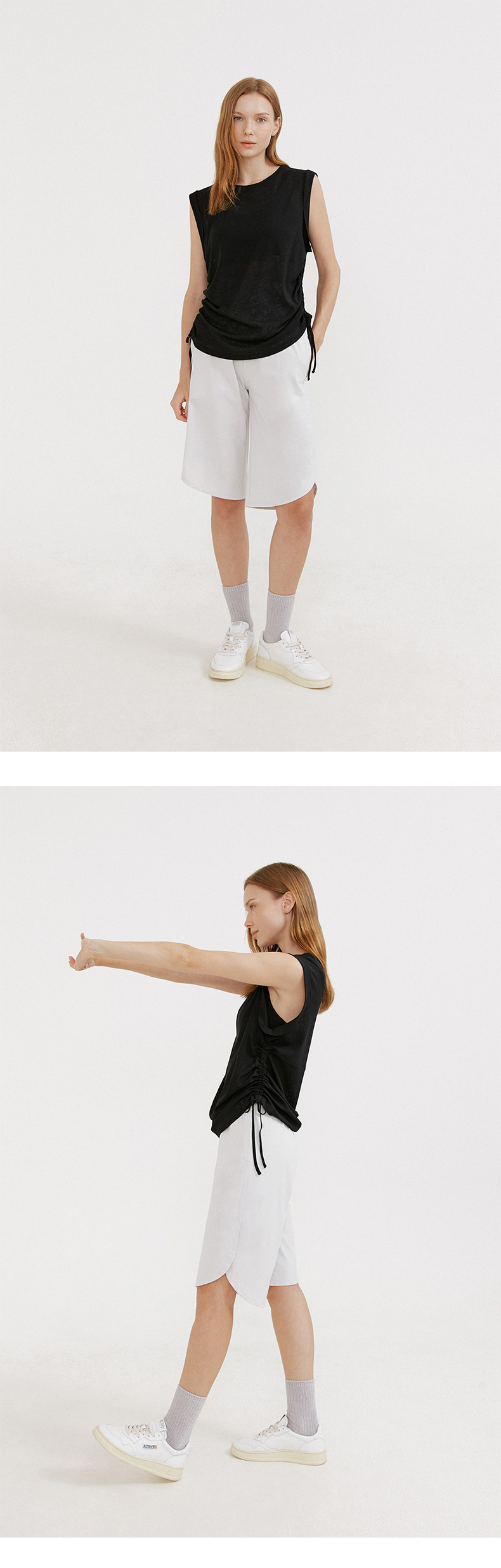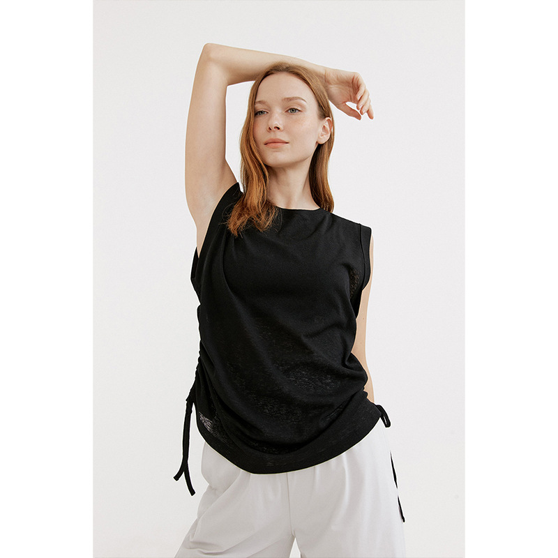 2024 년 여름 새로운 도착 레이스 업 민소매 요가 세트 긴 느슨한 엉덩이 커버 블라우스 마이크로 투명 순수한 욕망 스웨트 셔츠스토어 가기