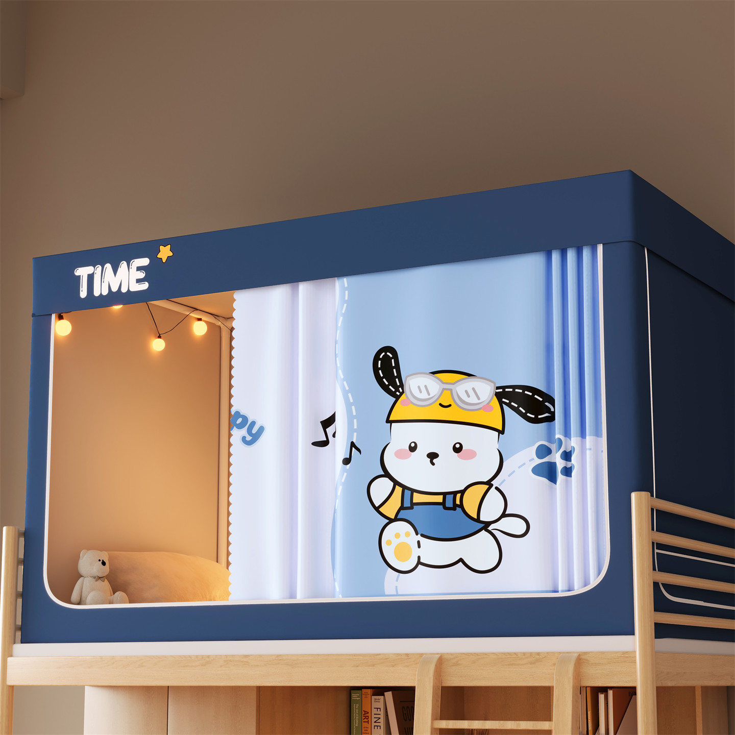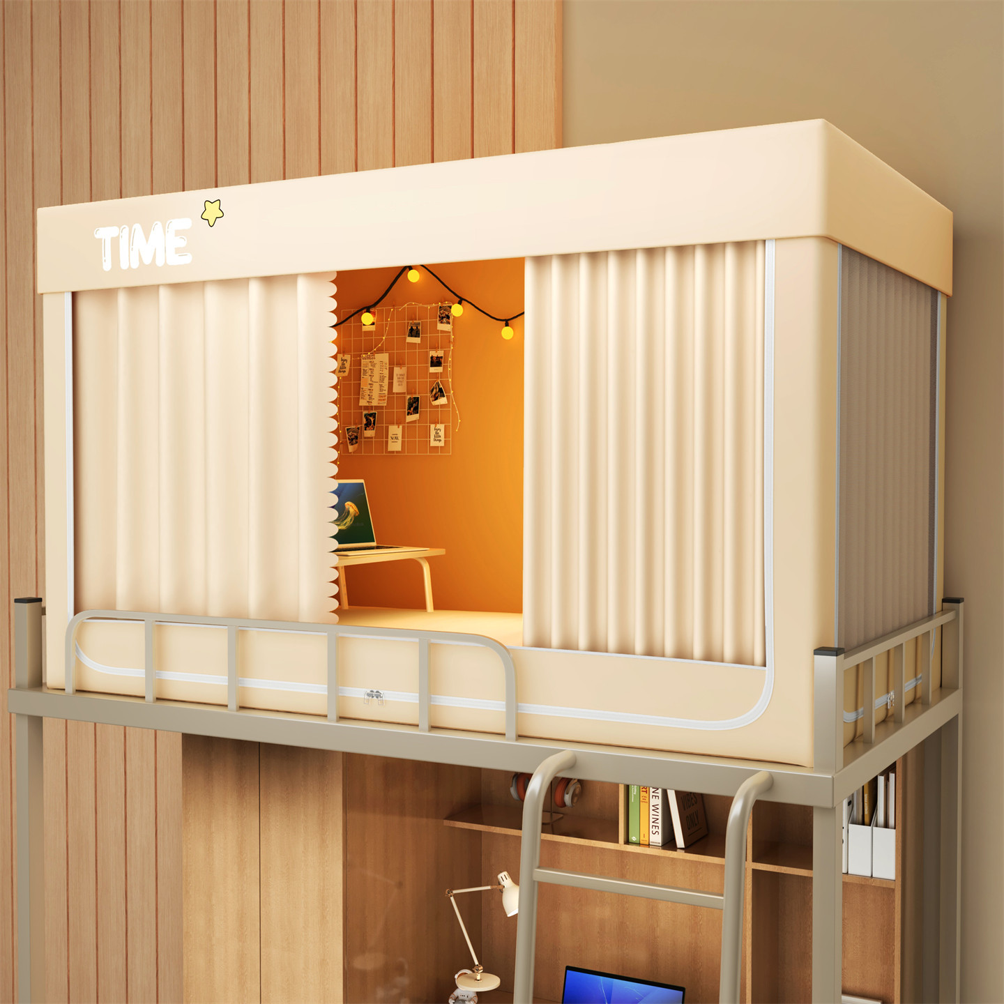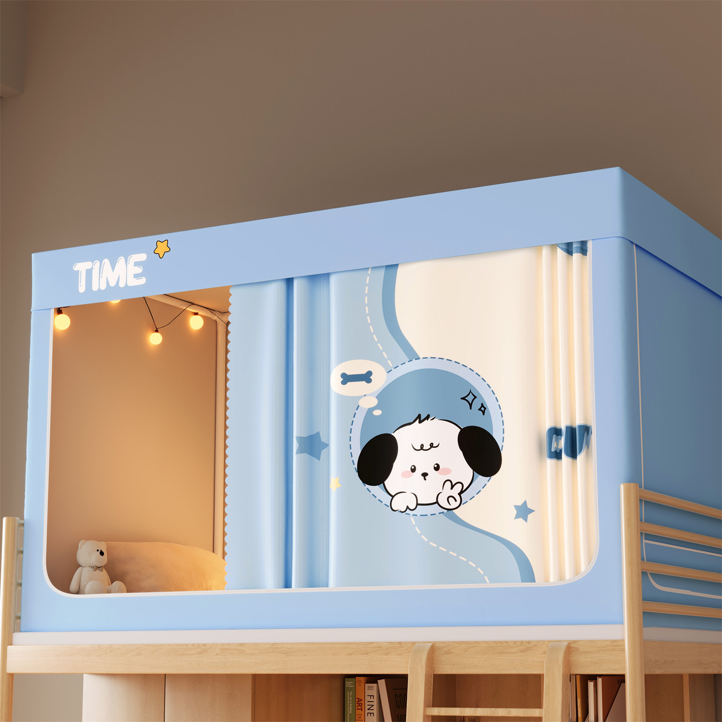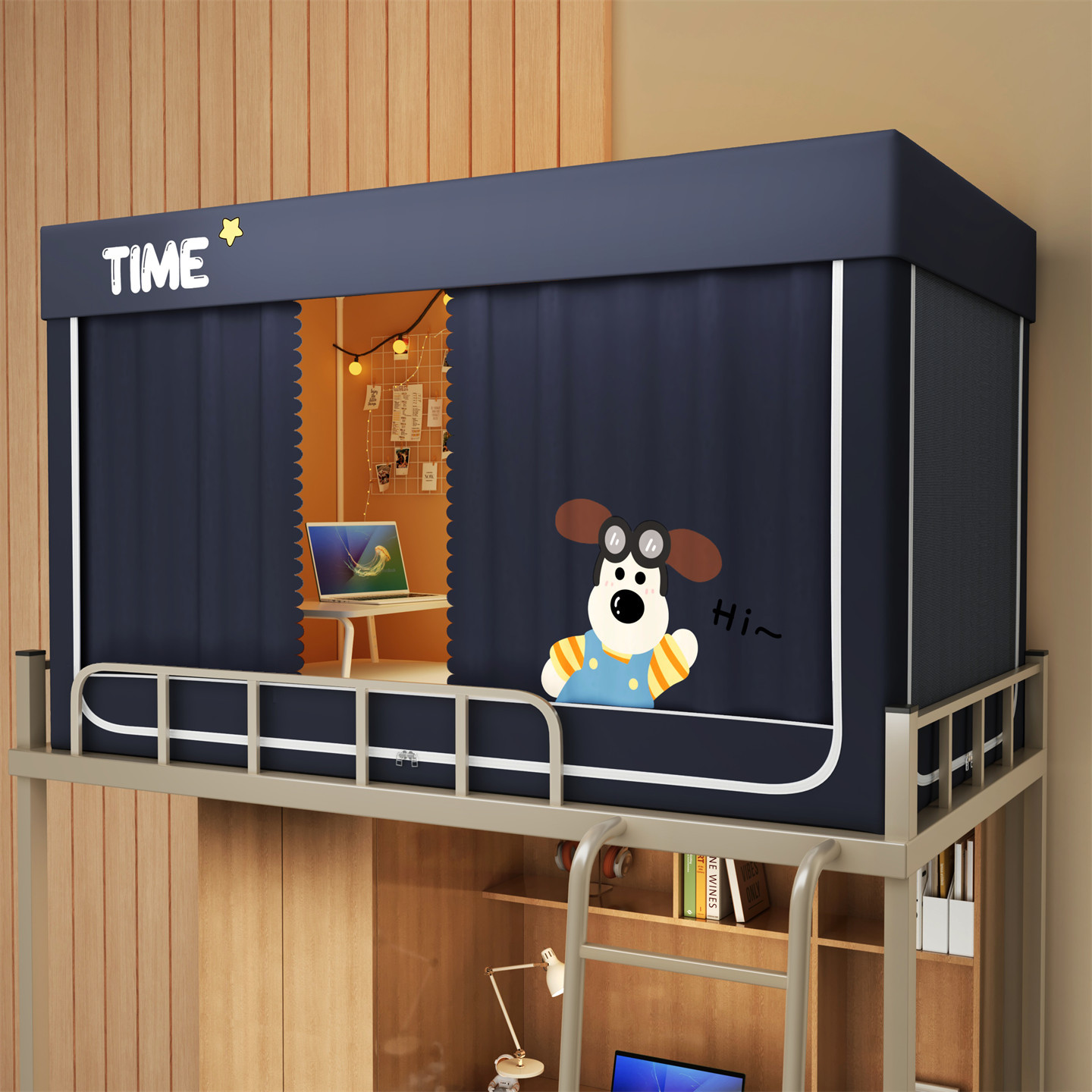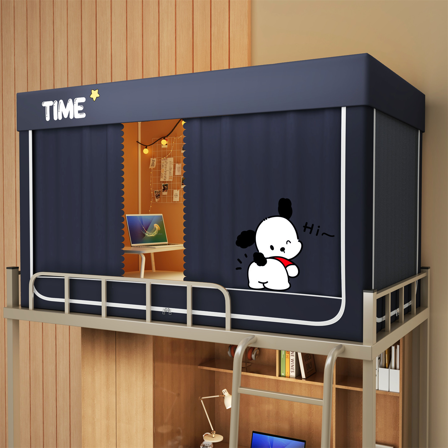 • 하단 침대 90cm 폭 * 190cm 길이 * 90cm 높이 [5면 암막, 자체 연결 지지대] 벽면 커튼