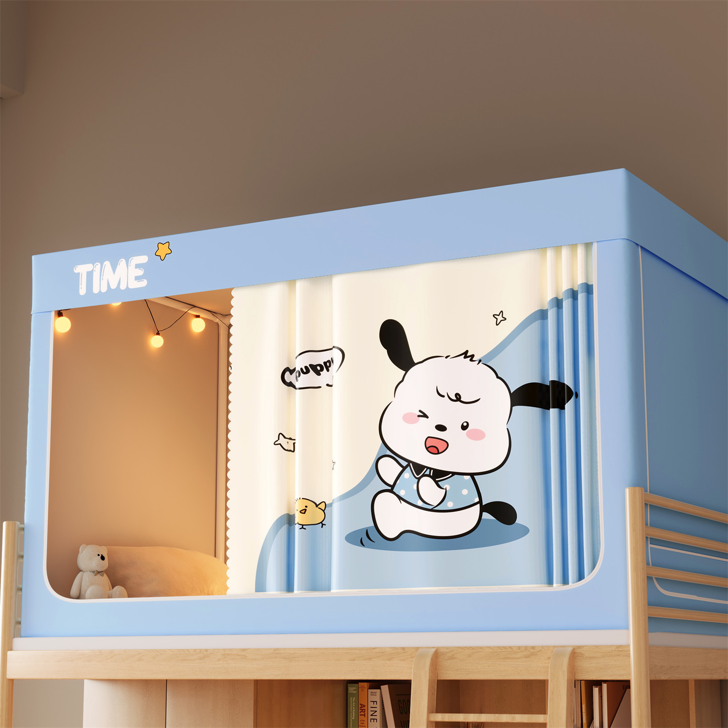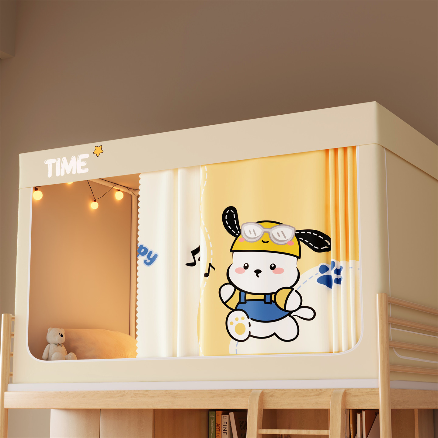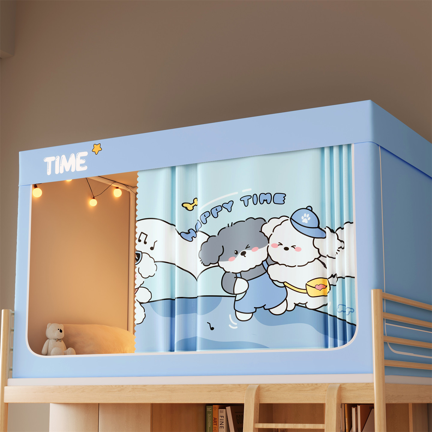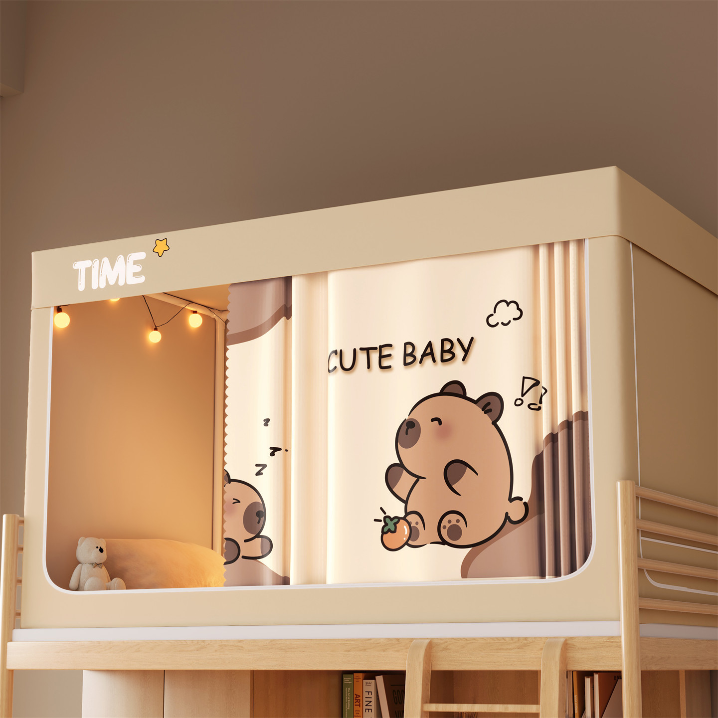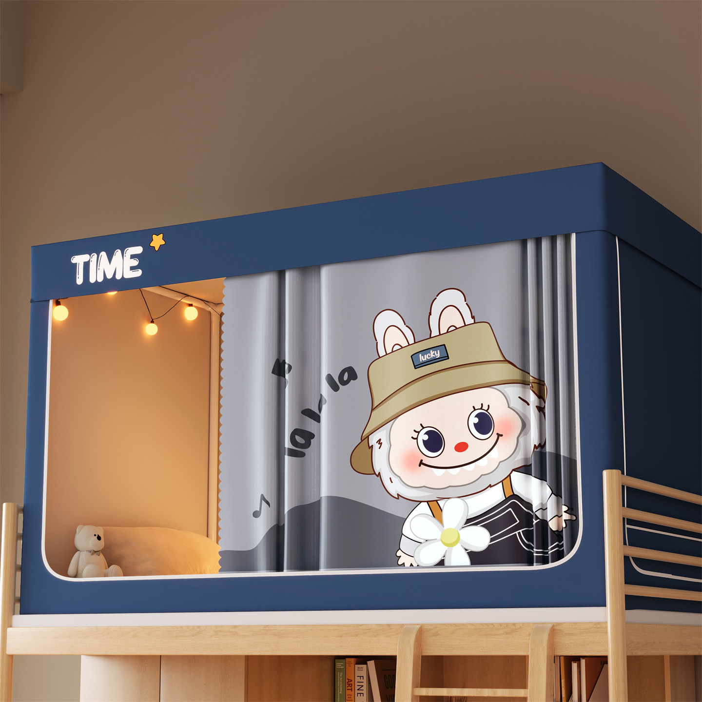 • 하단 침대 90cm 폭 * 190cm 길이 * 90cm 높이 [5면 암막, 자체 연결 지지대] 벽면 커튼