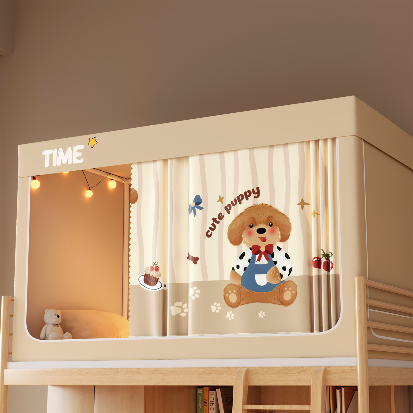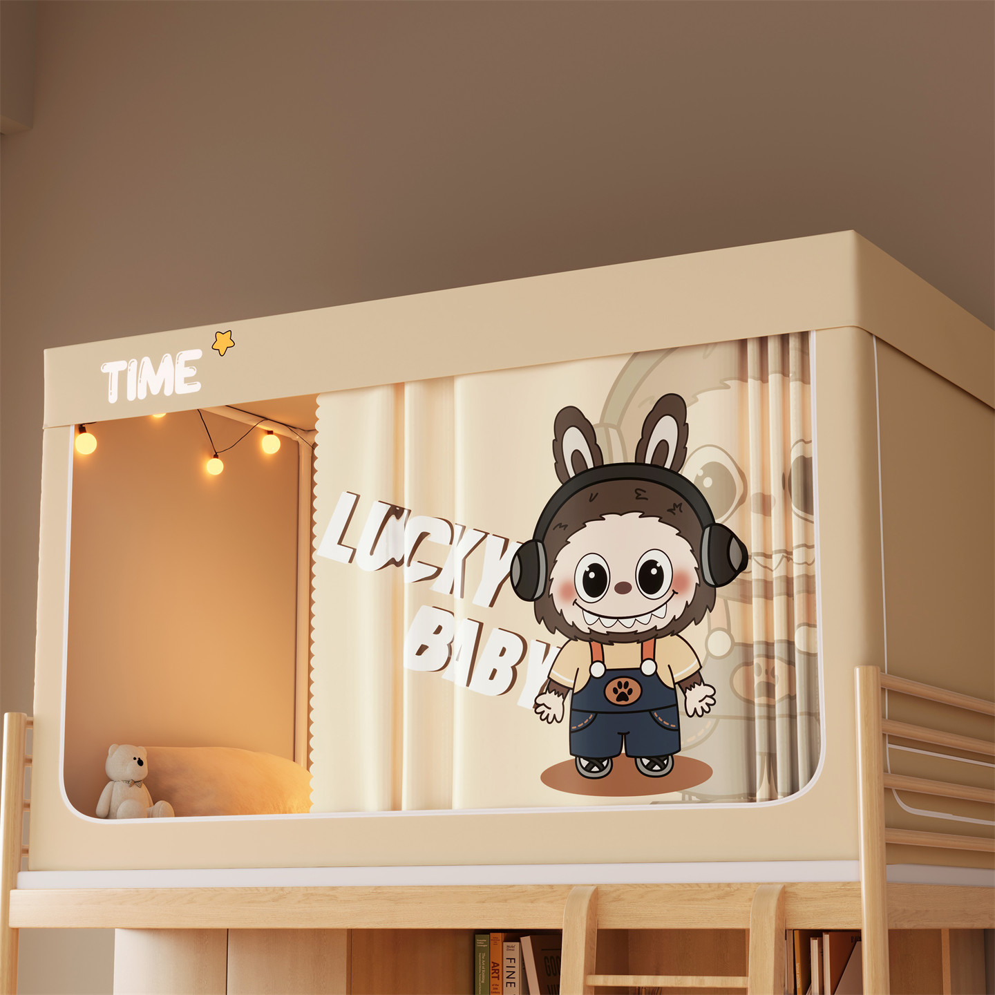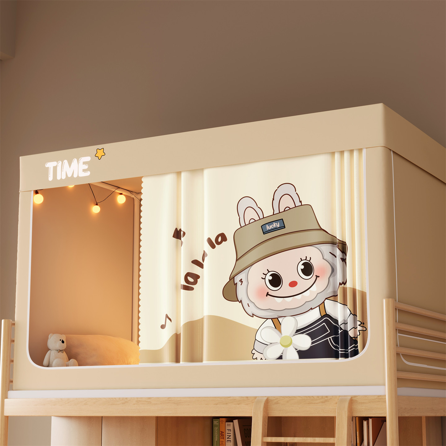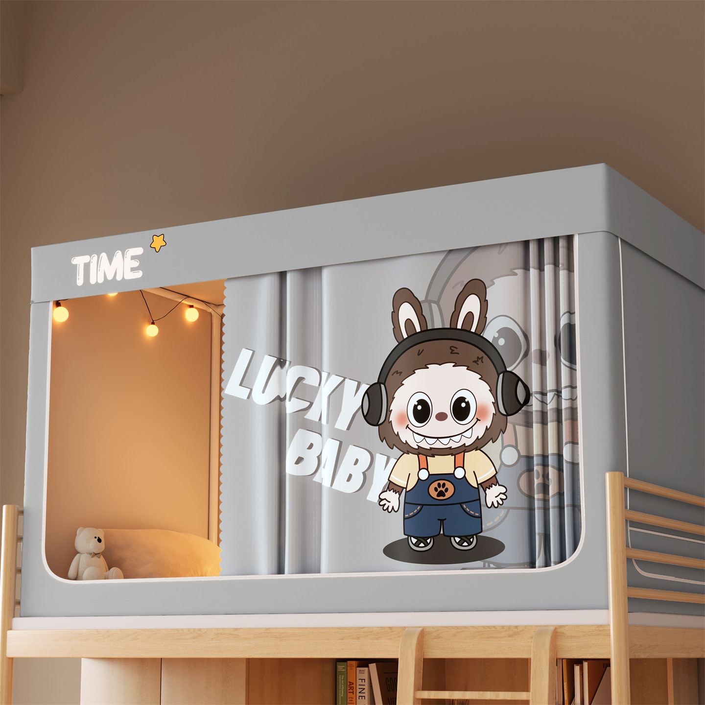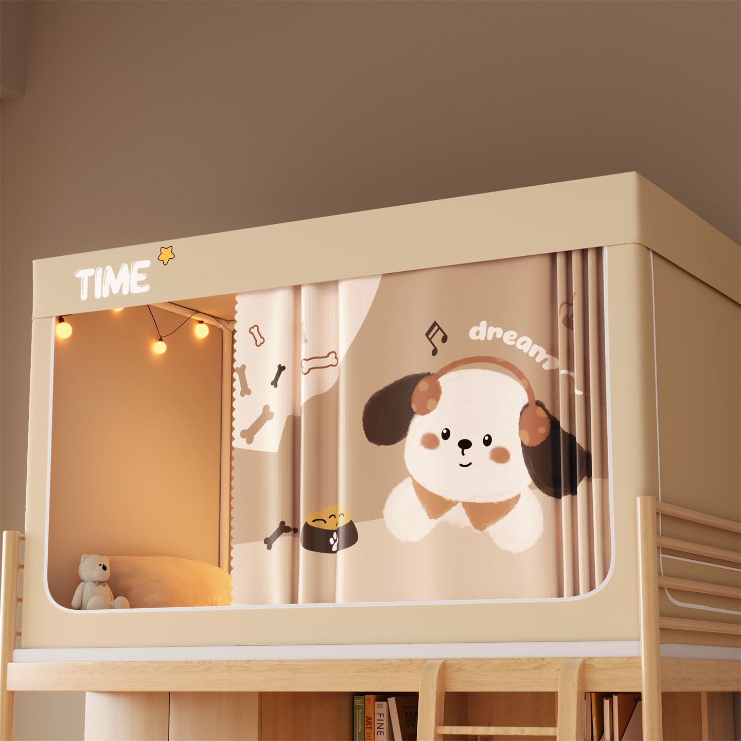 • 하단 침대 90cm 폭 * 190cm 길이 * 90cm 높이 [5면 암막, 자체 연결 지지대] 벽면 커튼