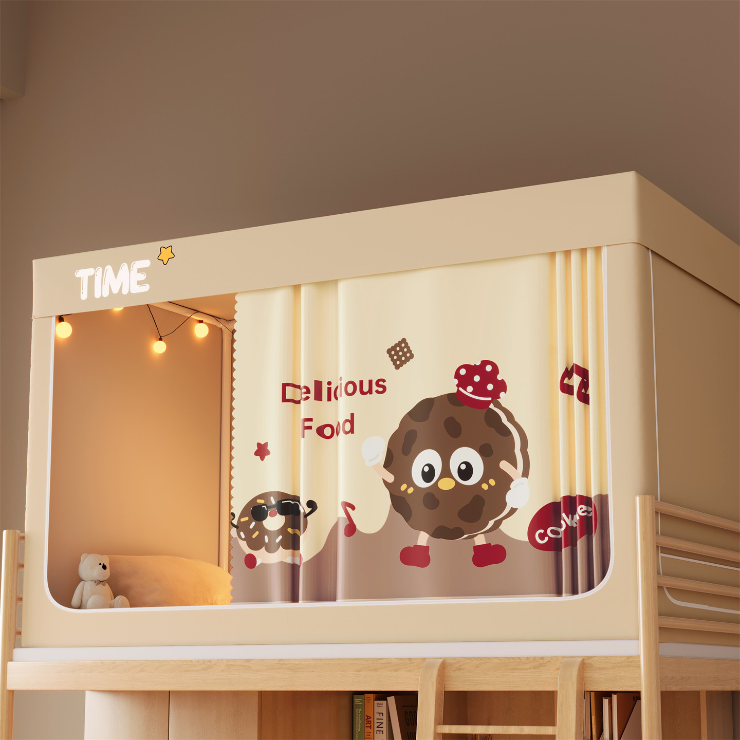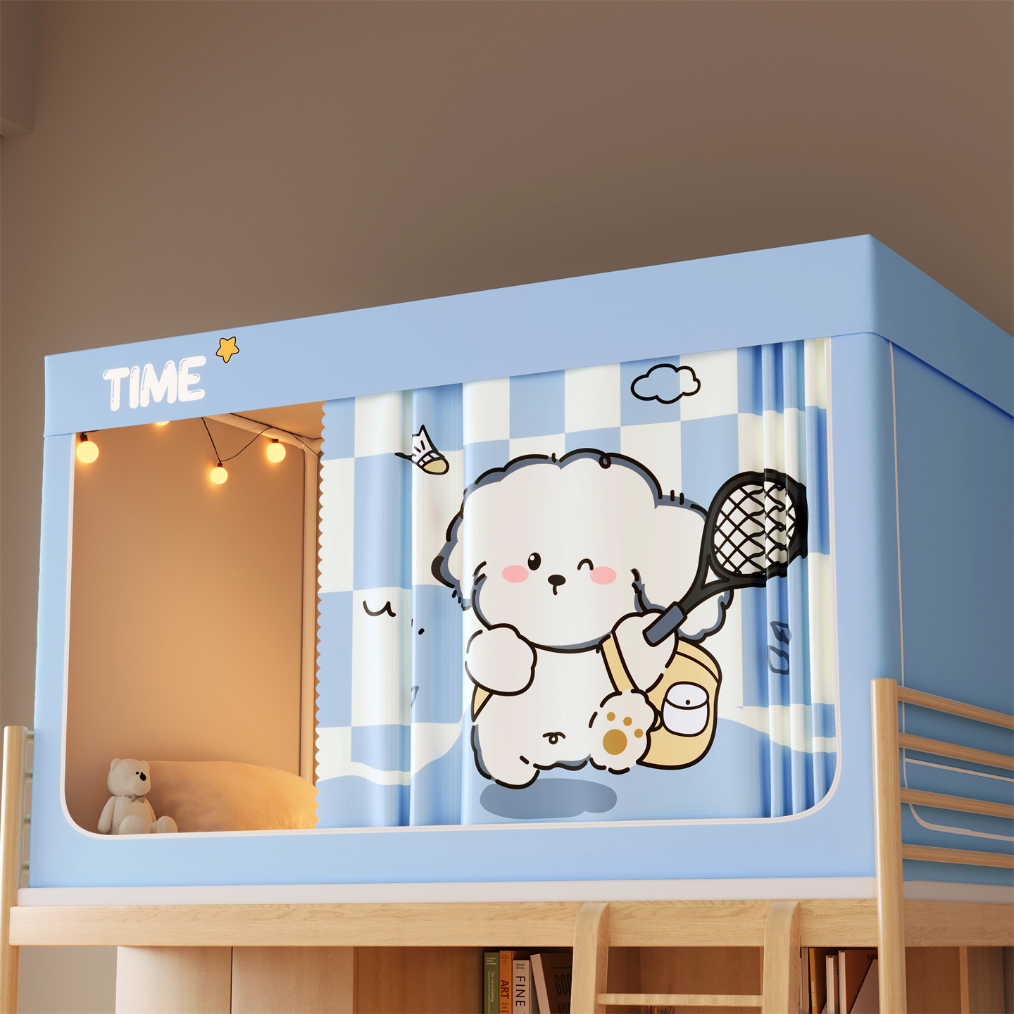 • 하단 침대 폭 80cm * 길이 190cm * 높이 90cm [5면 암막, 자체 연결 지지대] 벽면 커튼