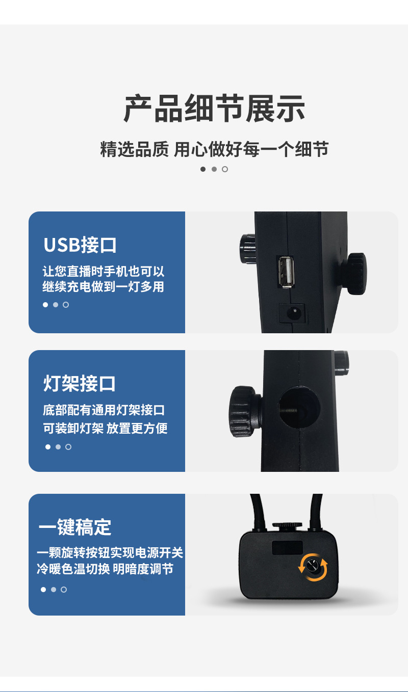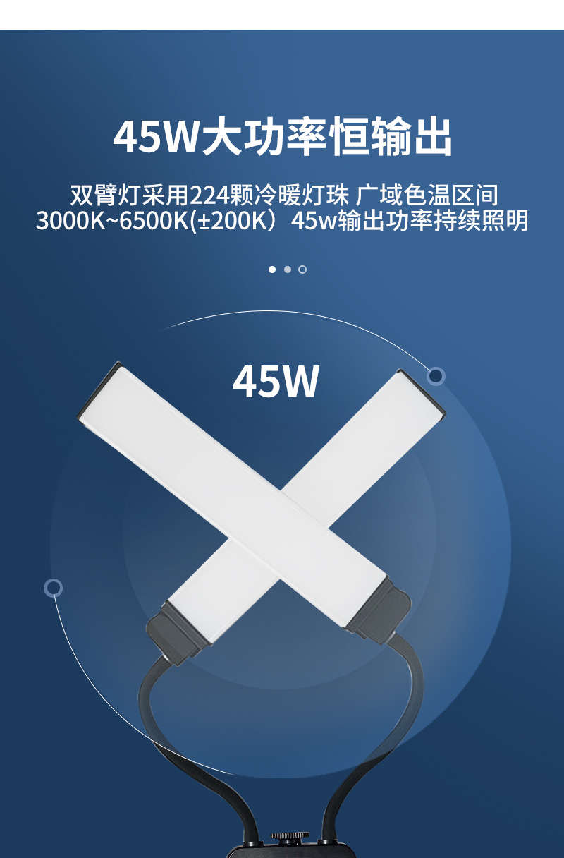 조절 가능한 LED 듀얼 튜브 사진 조명, 휴대폰 라이브 방송 셀카 보조 조명, USB 충전 인터페이스 포함, 1.6m