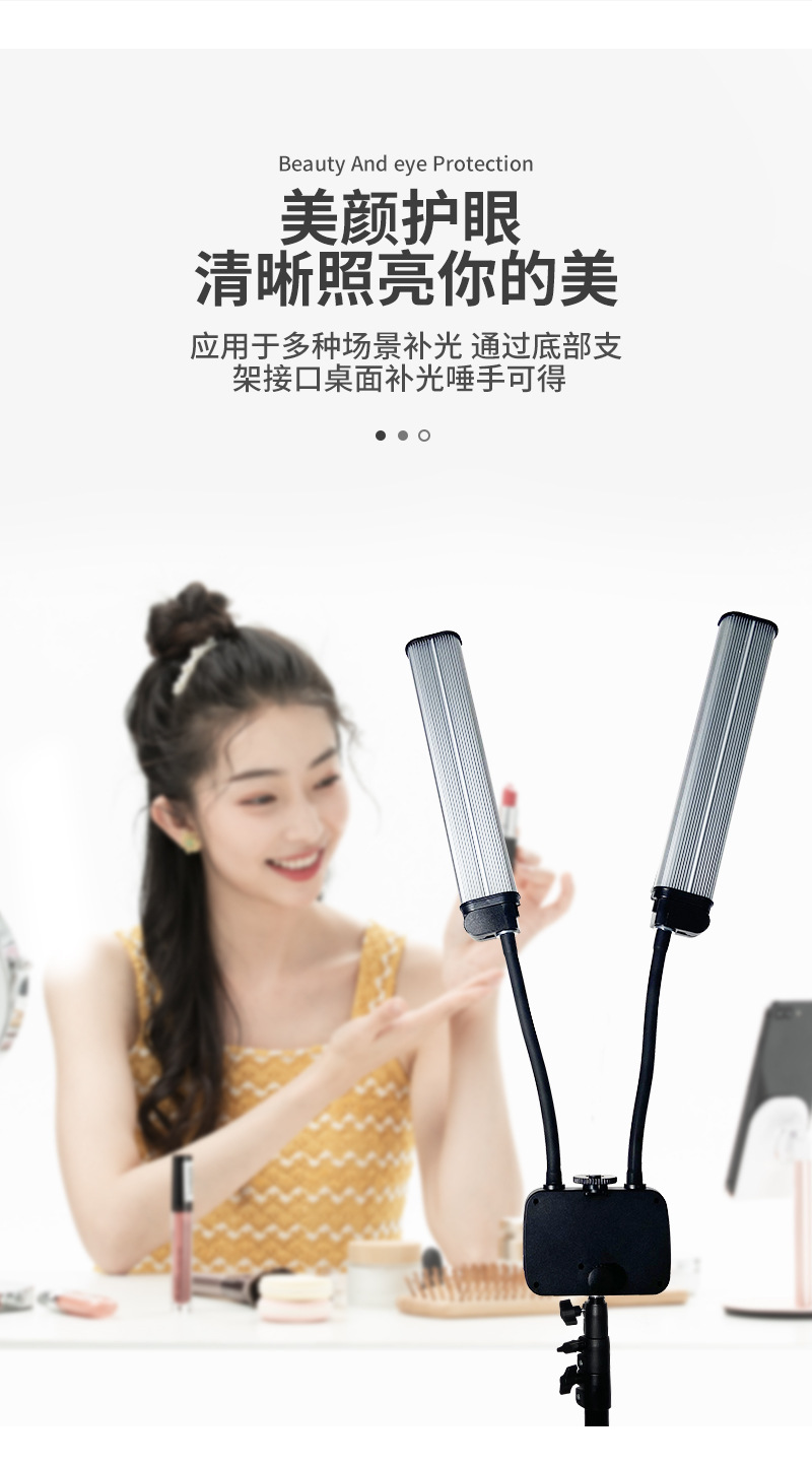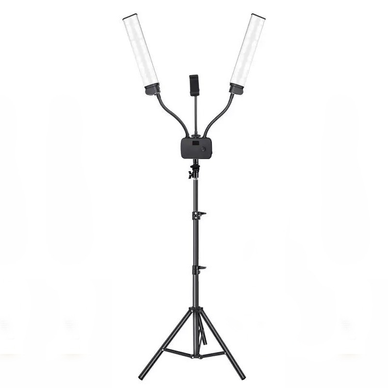 조절 가능한 LED 듀얼 튜브 사진 조명, 휴대폰 라이브 방송 셀카 보조 조명, USB 충전 인터페이스 포함, 1.6m스토어 가기