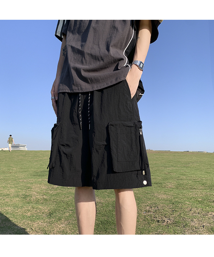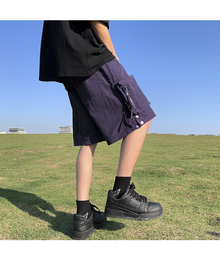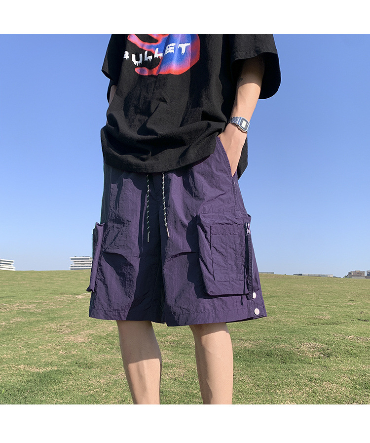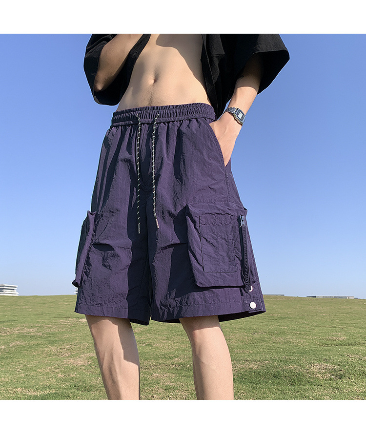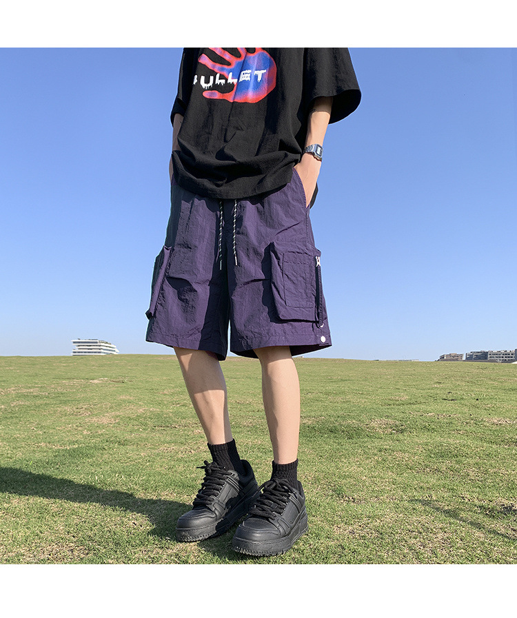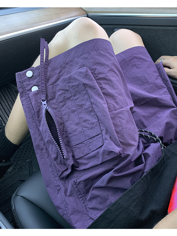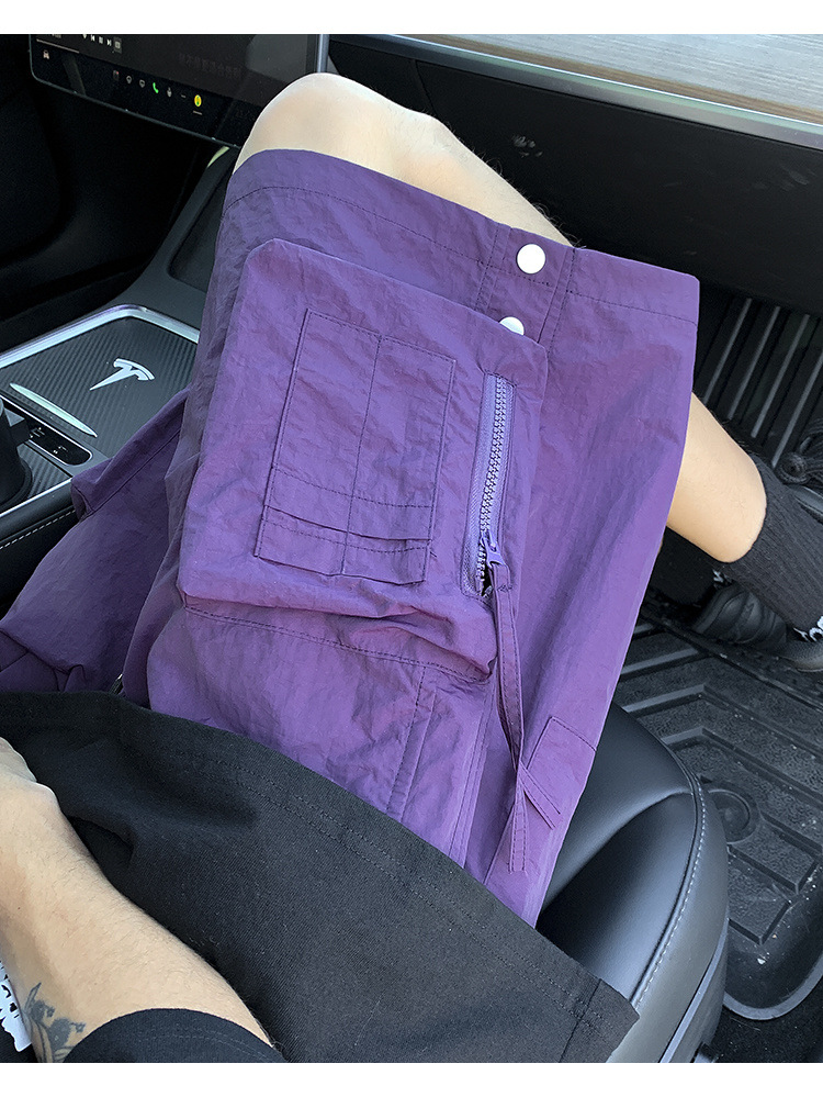 보라색 기능성 툴링 반바지 남성 여름 얇은 빠른 건조 바지 도파민 미국식 충전 바지